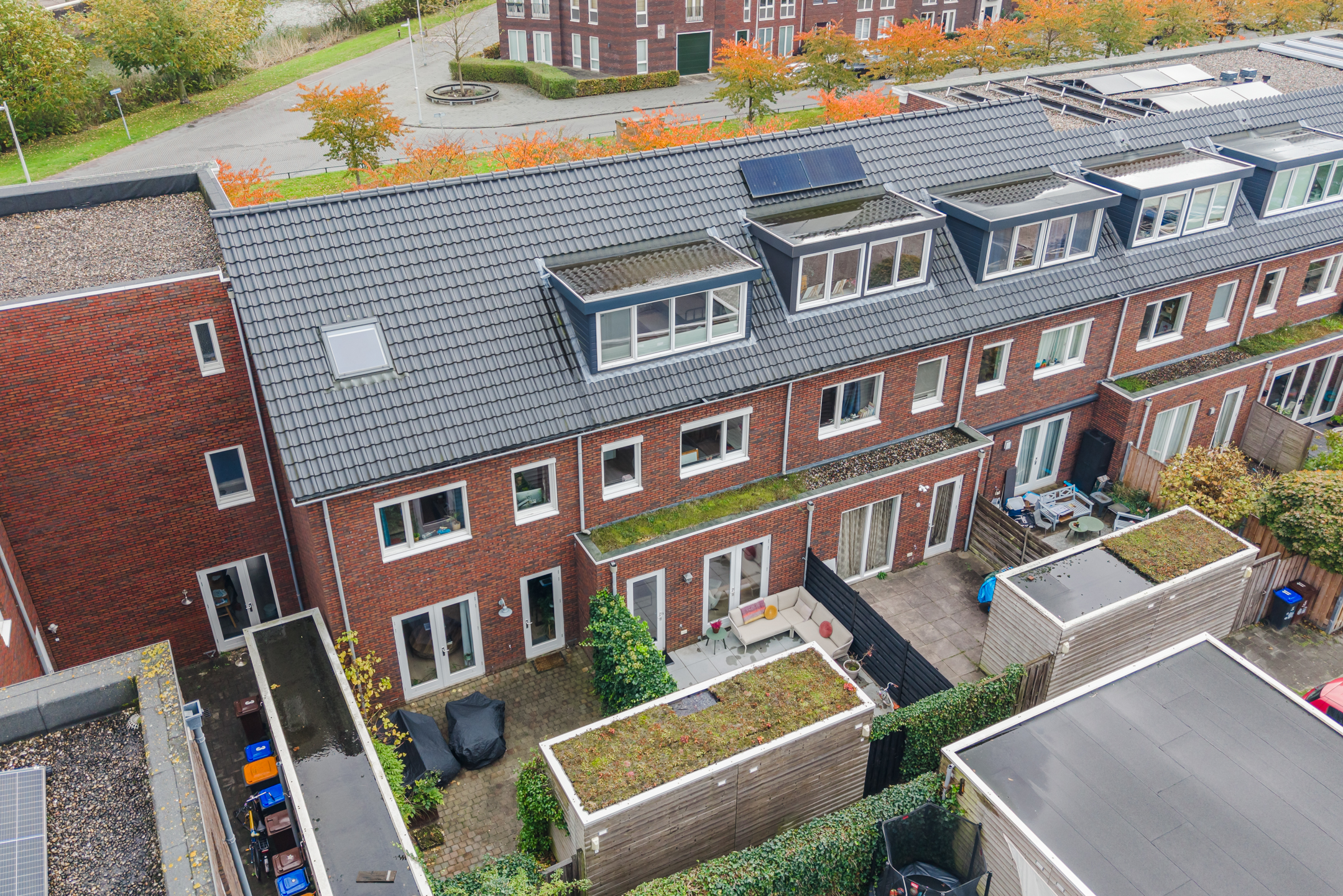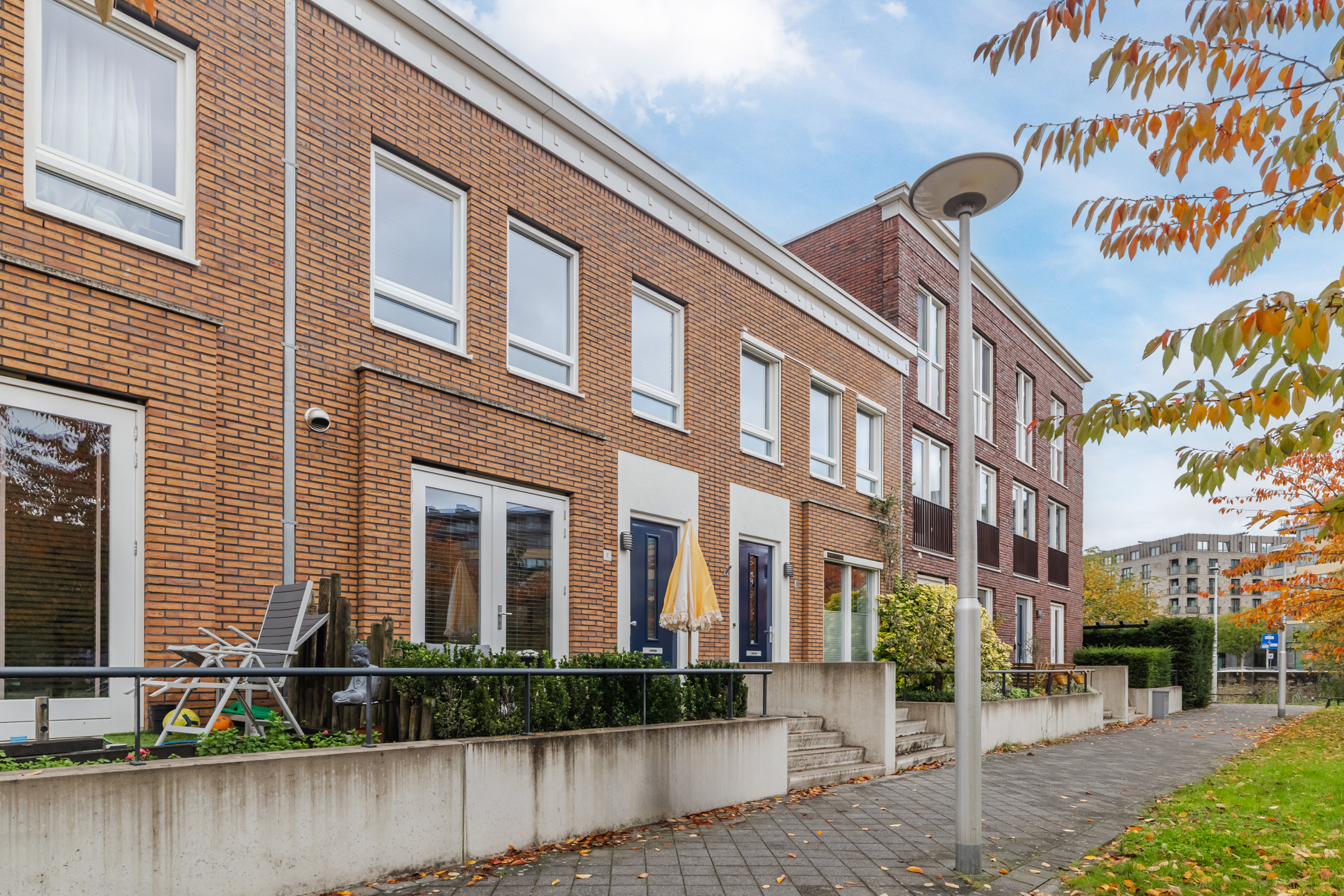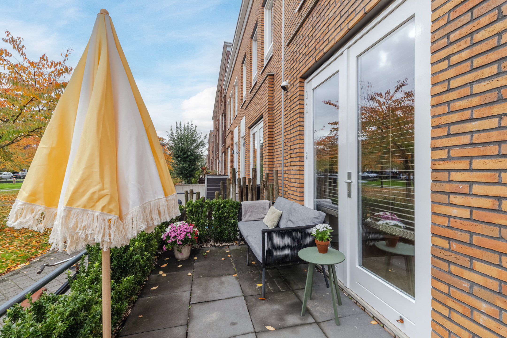 Er is voldoende ruimte om gezellige zitplekken te creëren en dankzij de ligging op het noordwesten en de ligging van de omliggende woningen kun je gedurende de dag en in de avond heerlijk van de zon genieten. De tuin/het bordes aan de voorzijde van de woning leent zich daar ook uitstekend voor. Diverse bewoners hebben dan ook een gezellige zitplek aan de voorzijde gecreëerd.