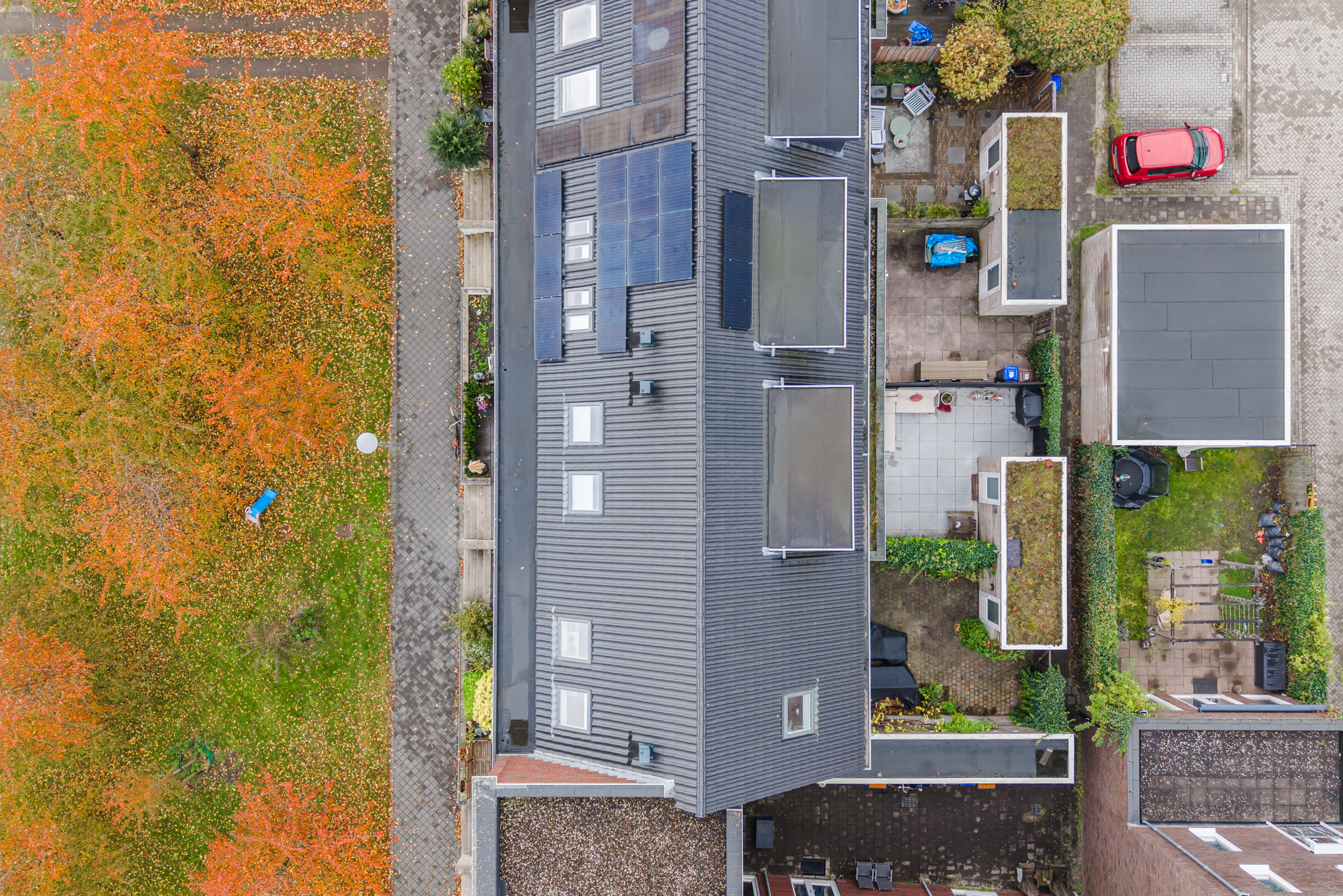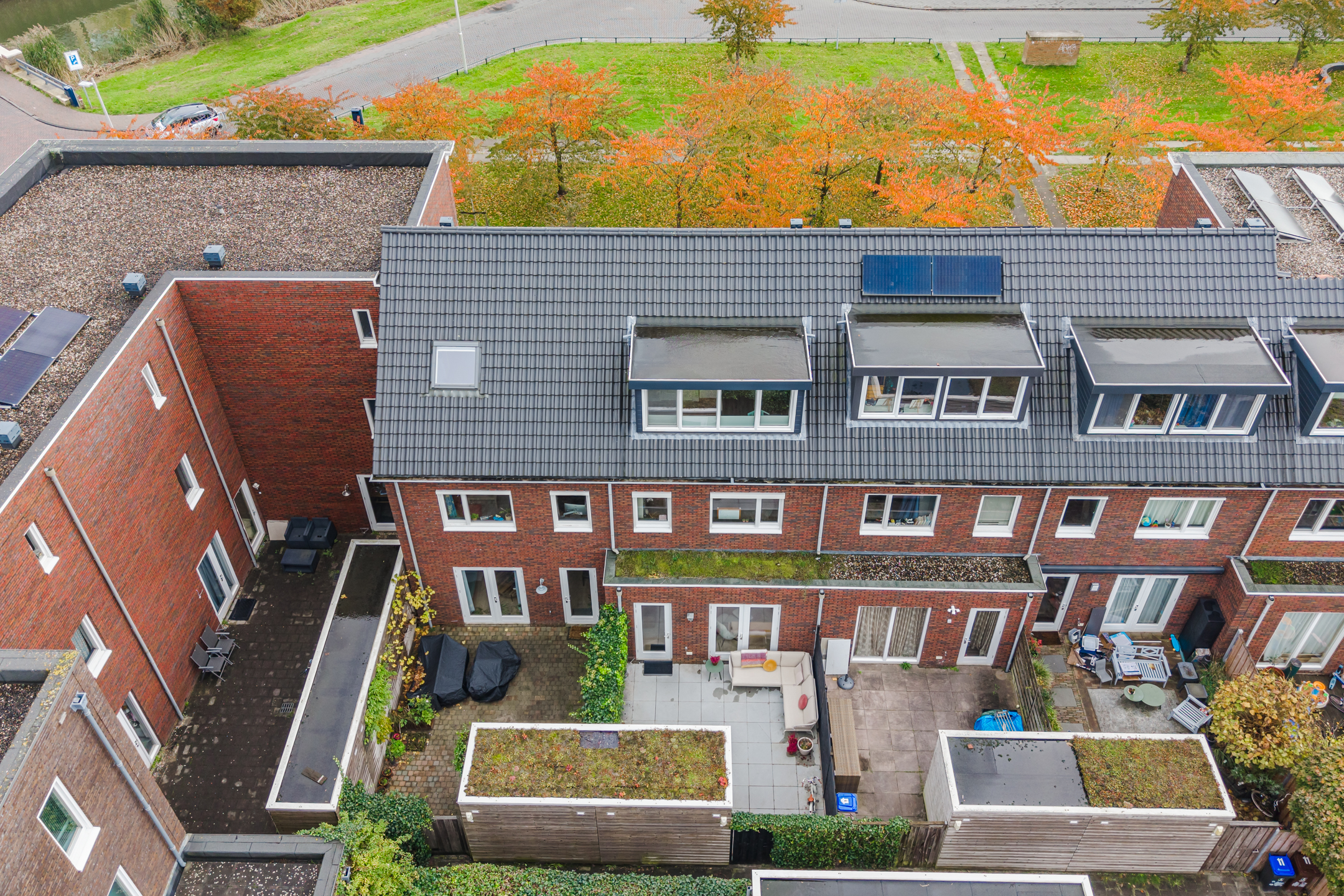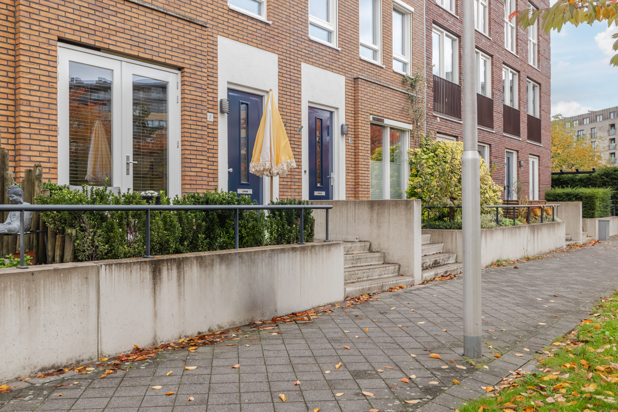 Er is voldoende ruimte om gezellige zitplekken te creëren en dankzij de ligging op het noordwesten en de ligging van de omliggende woningen kun je gedurende de dag en in de avond heerlijk van de zon genieten. De tuin/het bordes aan de voorzijde van de woning leent zich daar ook uitstekend voor. Diverse bewoners hebben dan ook een gezellige zitplek aan de voorzijde gecreëerd.