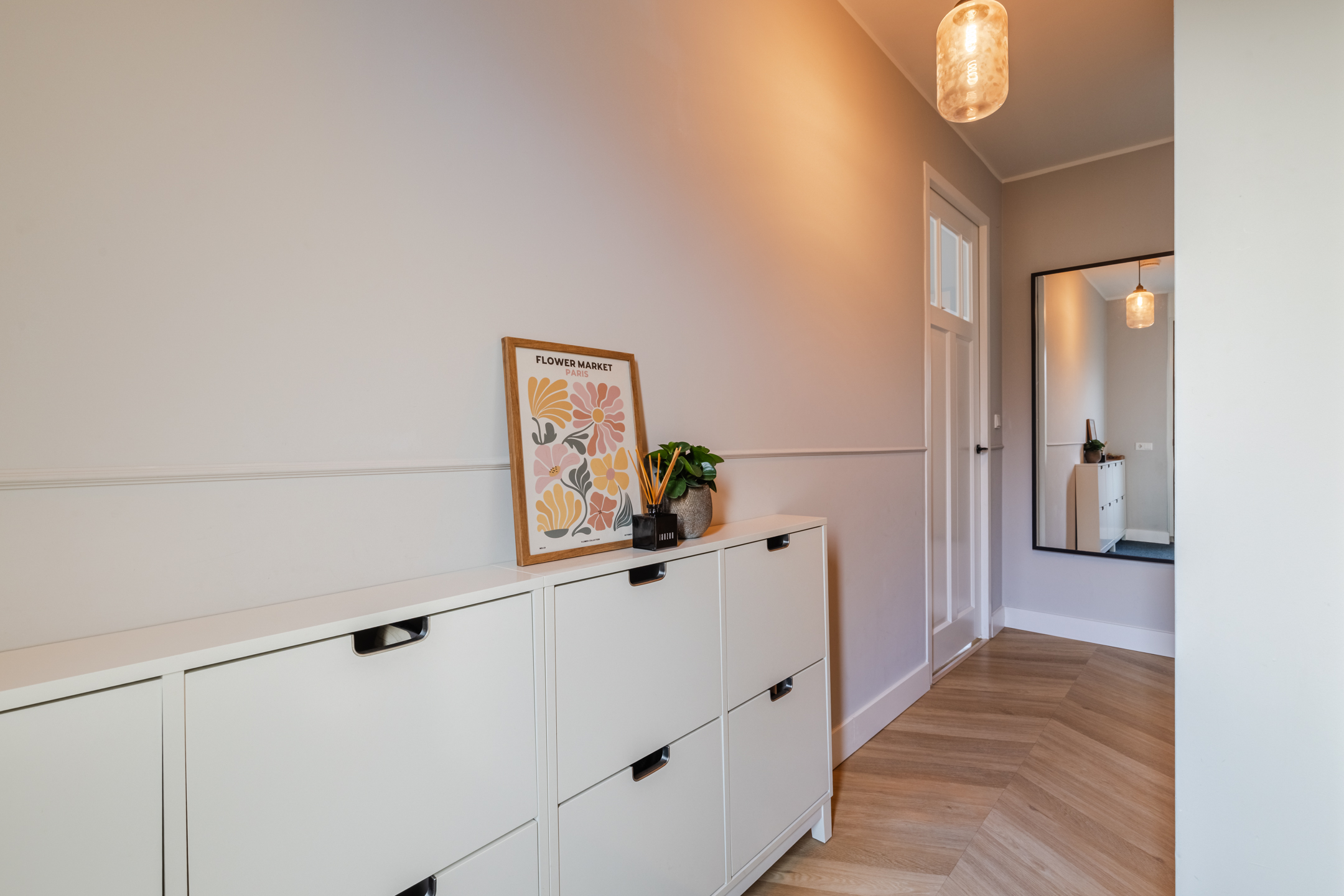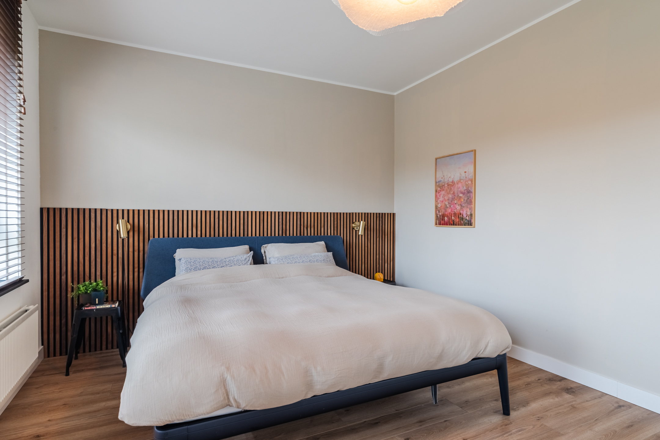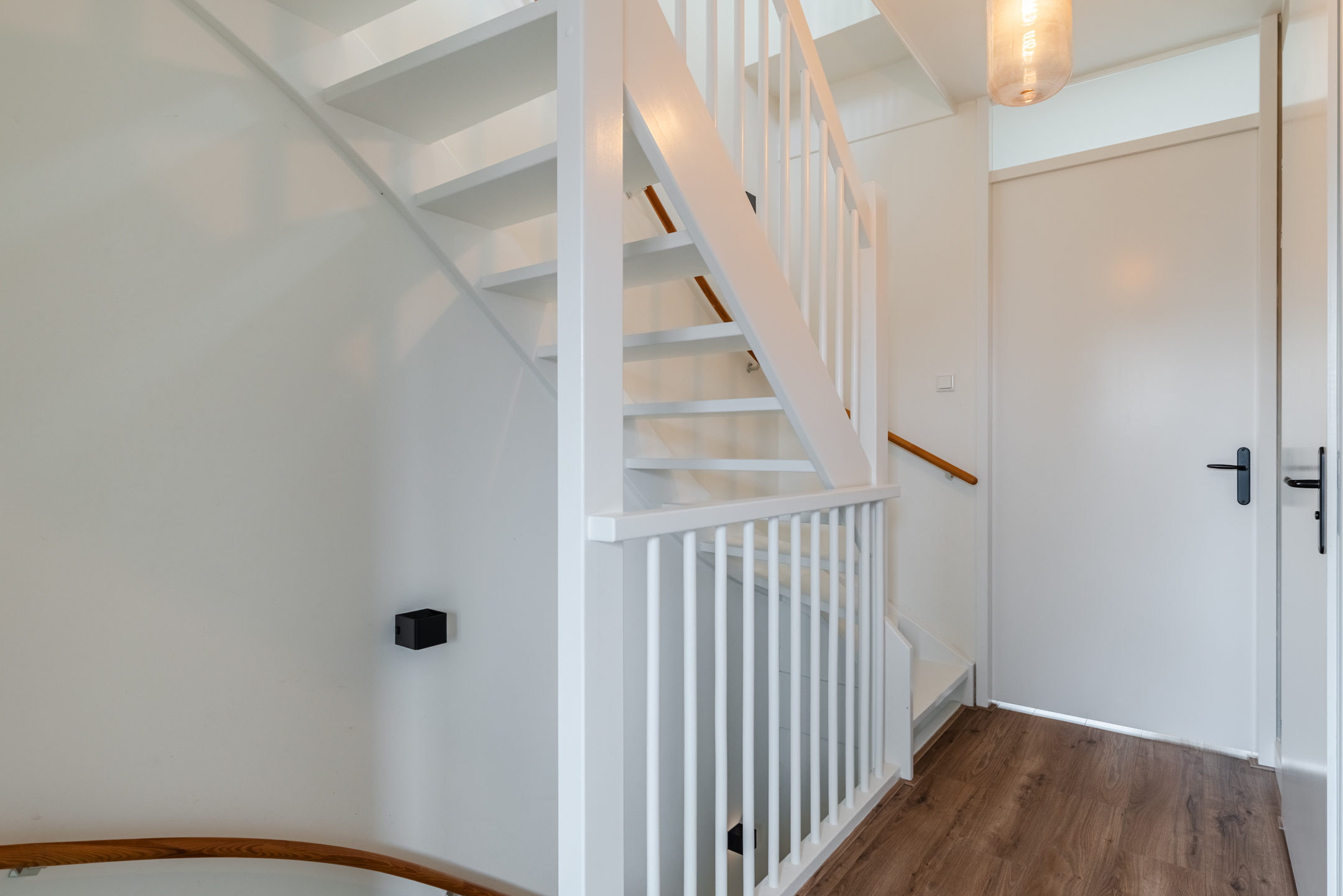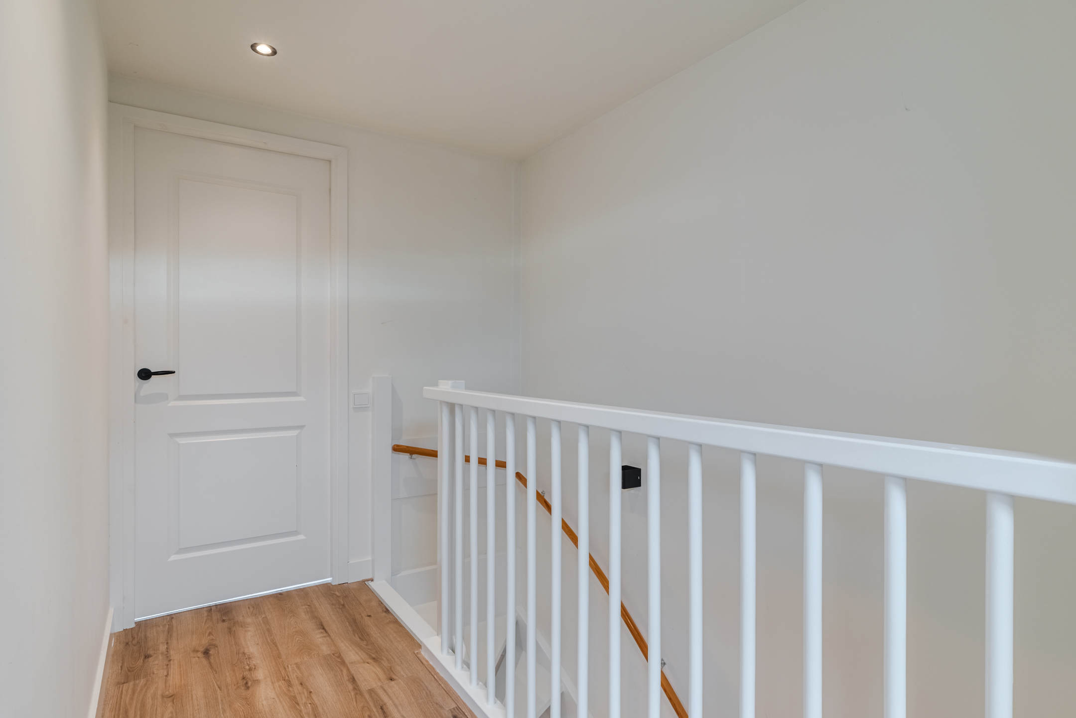 De eerste verdieping is voorzien van een sfeervolle laminaathoutlookvloer en strakke wand-/ en plafondafwerking.