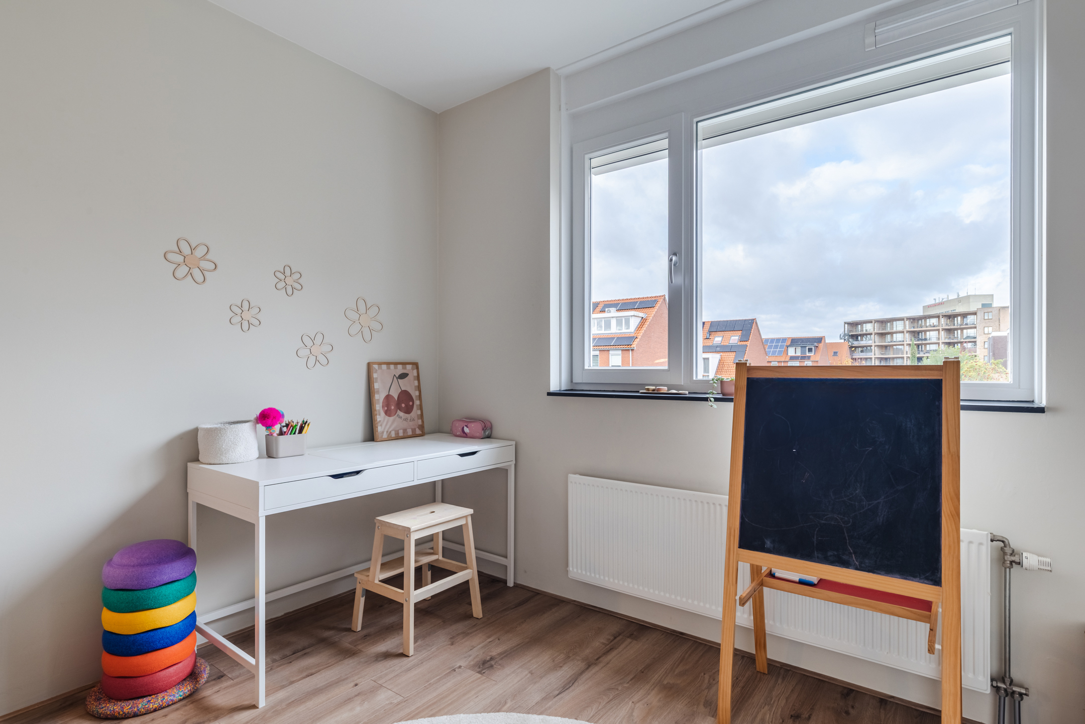 Aan de achterzijde is de vierde multifunctionele, woningbrede (slaap)kamer te bereiken. Deze slaapkamer is van een royaal formaat, voorzien van een grote dakkapel en biedt een leuk uitzicht op de achtertuinen en de omgeving.