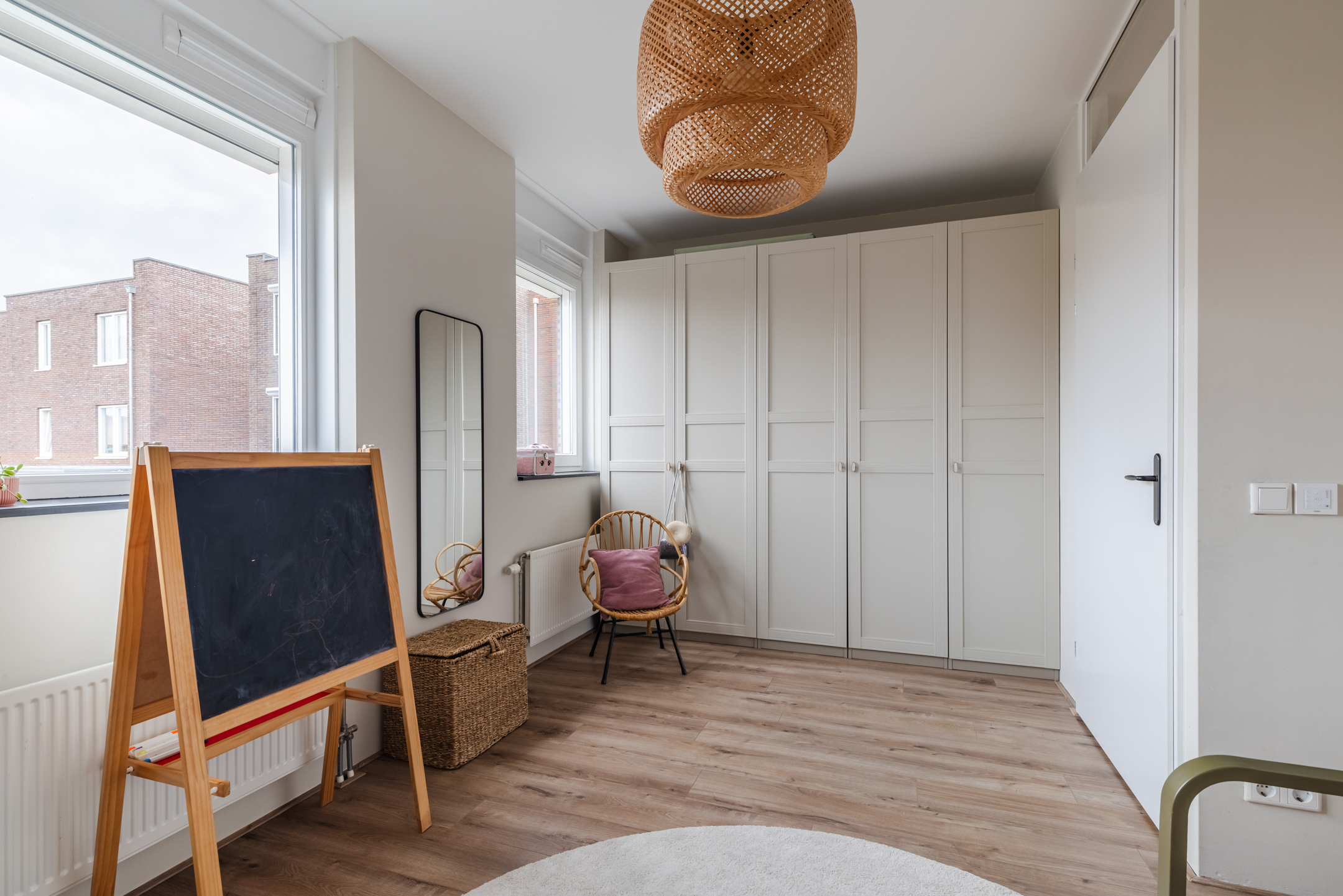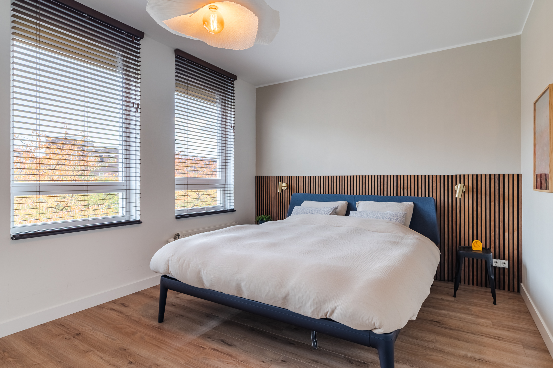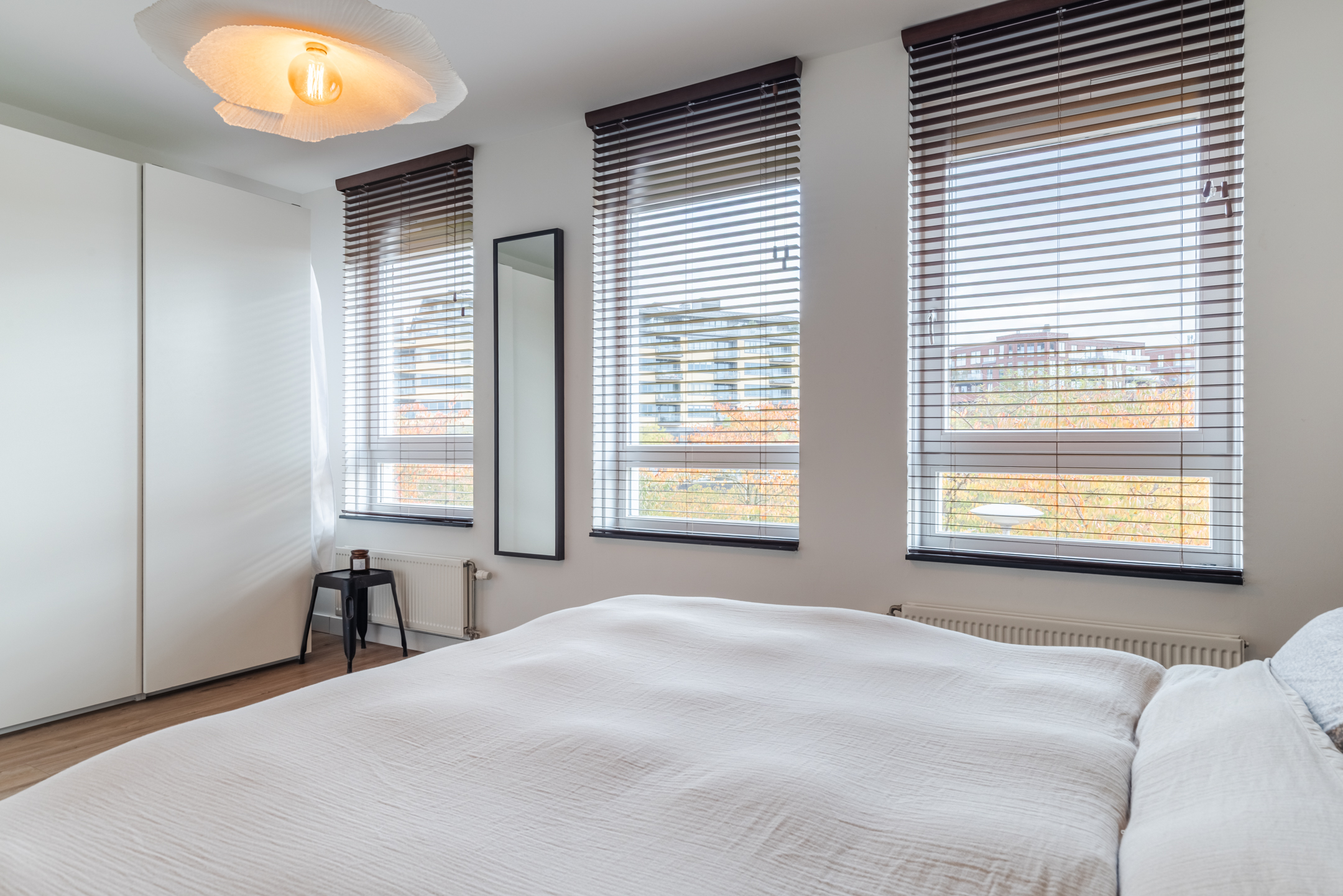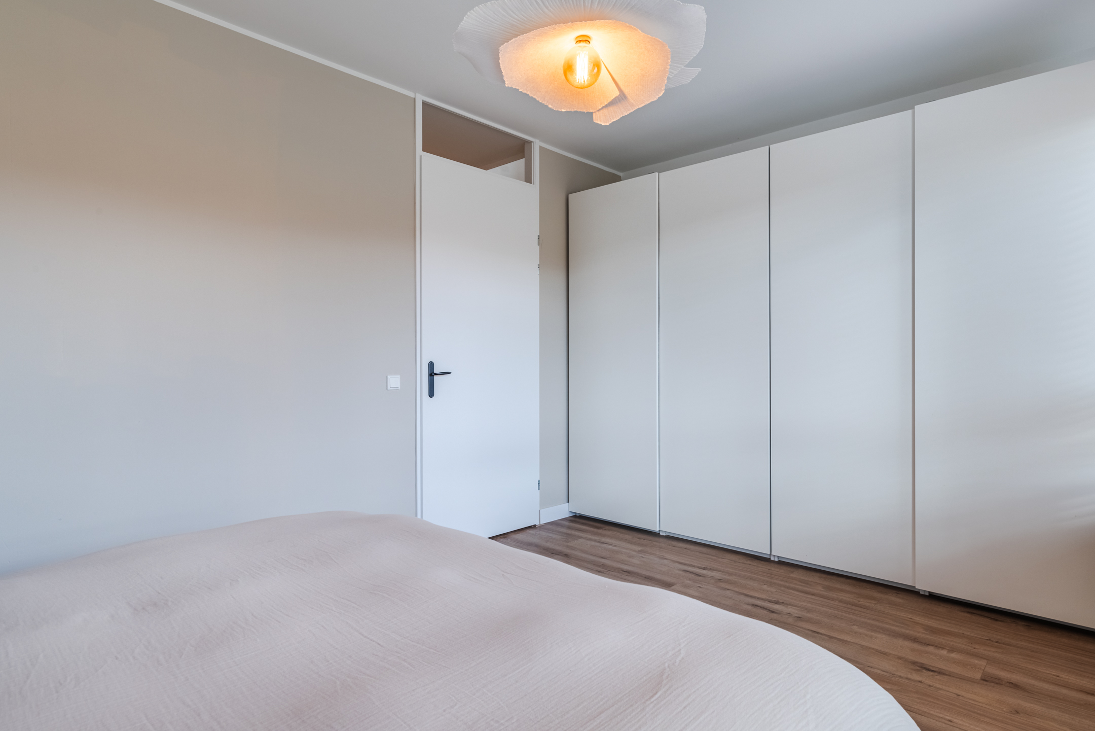 Vanaf de overloop op de eerste verdieping heb je toegang tot één ruime, woningbrede slaapkamer aan de voorzijde van de woning en één woningbrede slaapkamer aan de achterzijde.