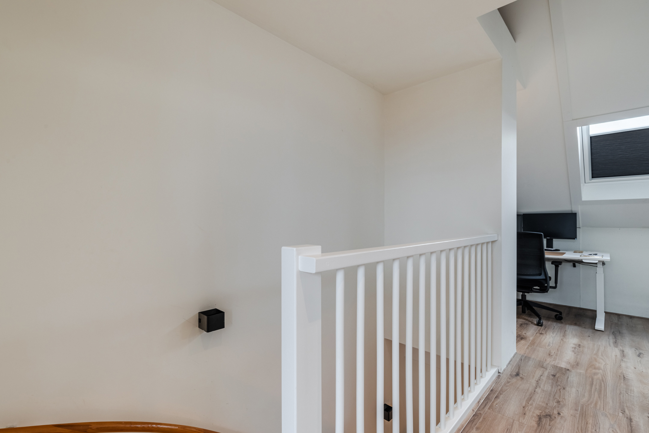 De tweede verdieping is eveneens keurig afgewerkt en voorzien van een sfeervolle laminaat-vloer en strakke wand-/ en plafondafwerking.