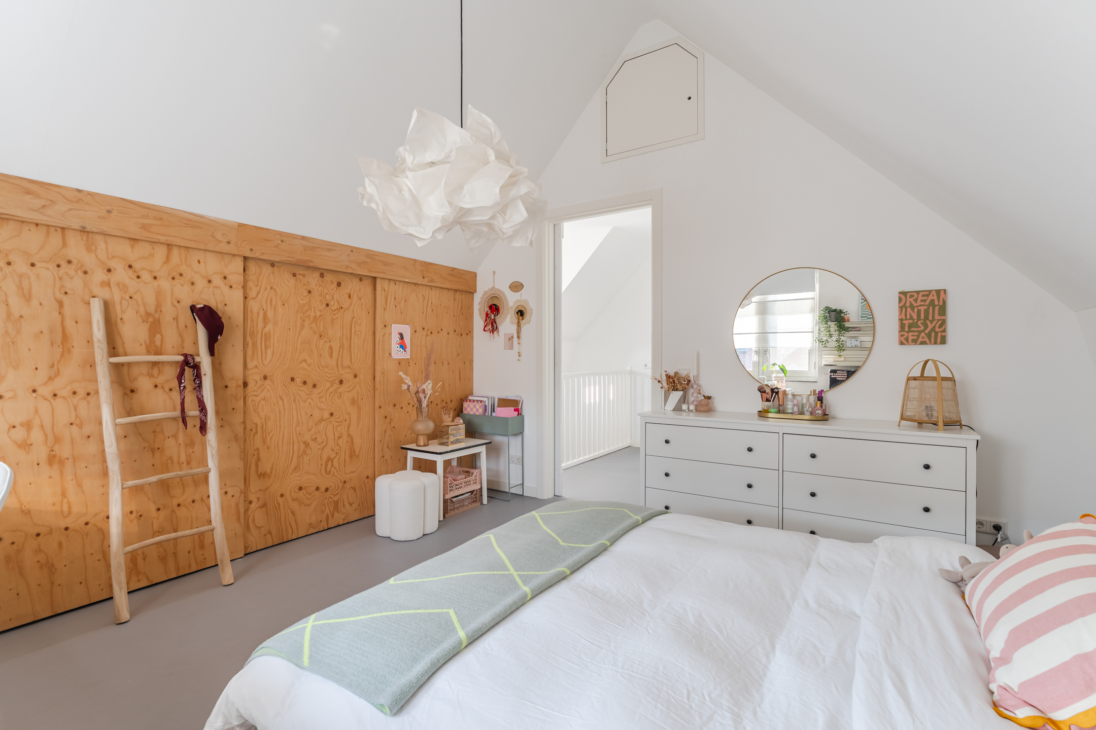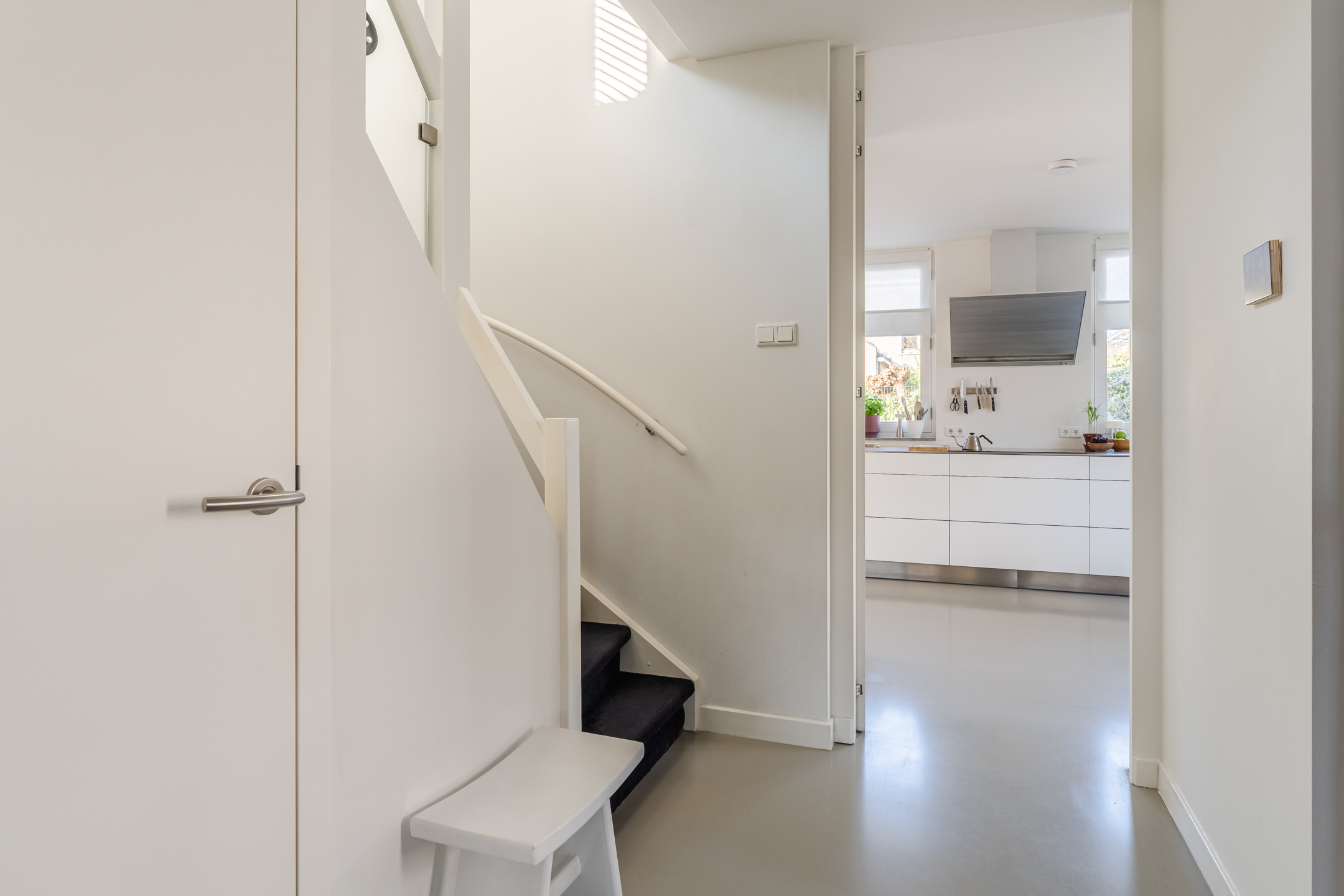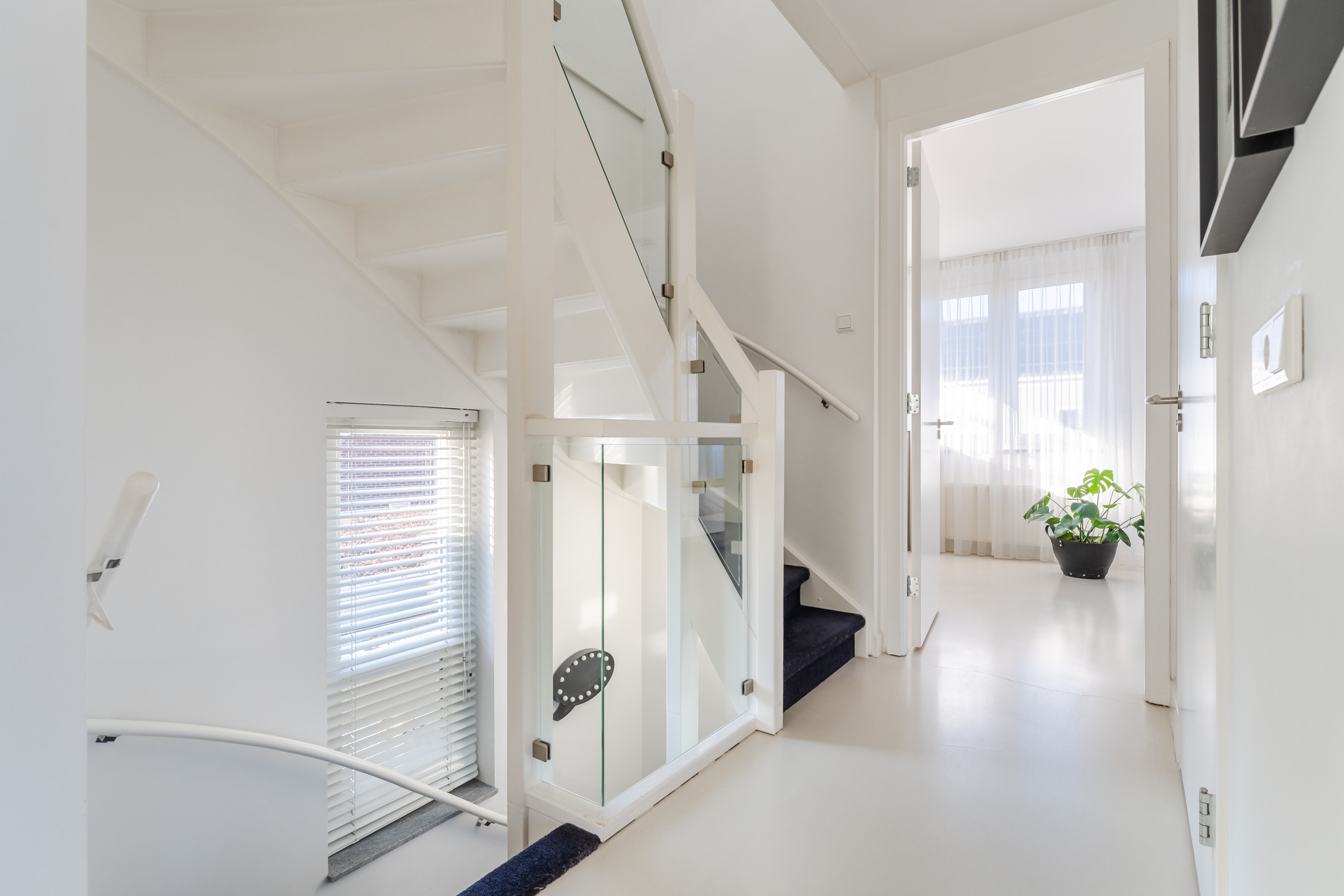 Ook deze verdieping is netjes afgewerkt met strak gestucte wanden.