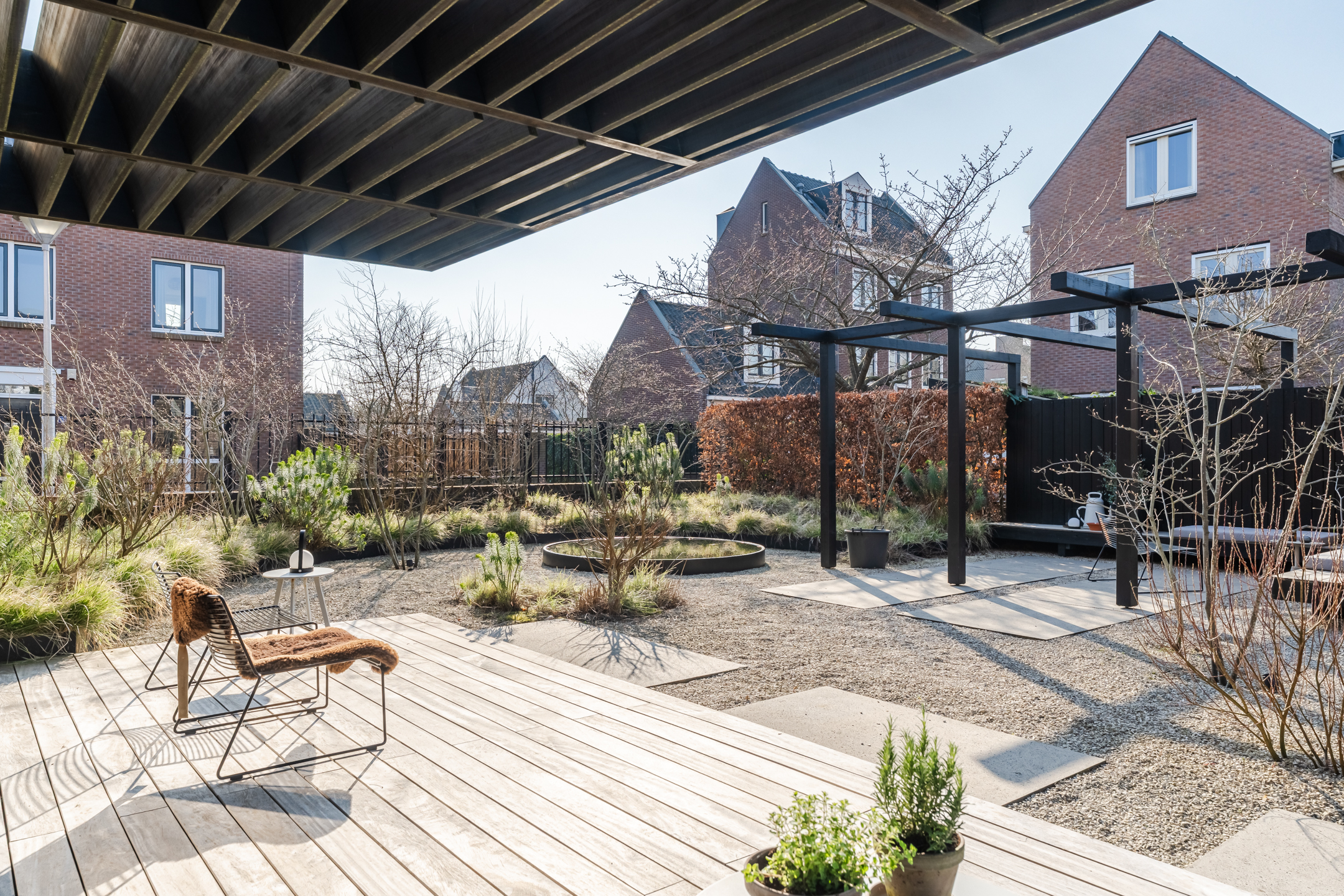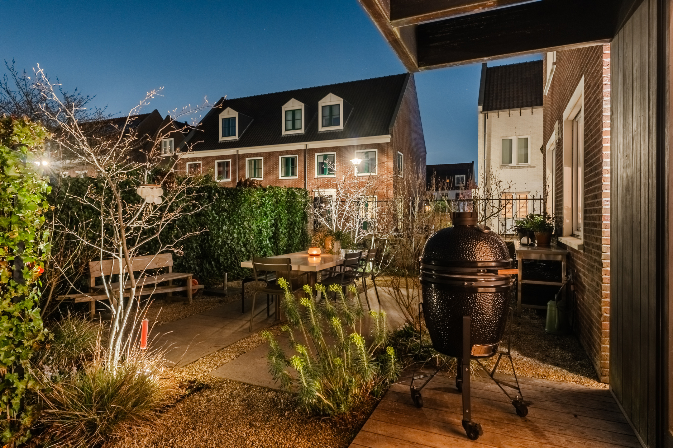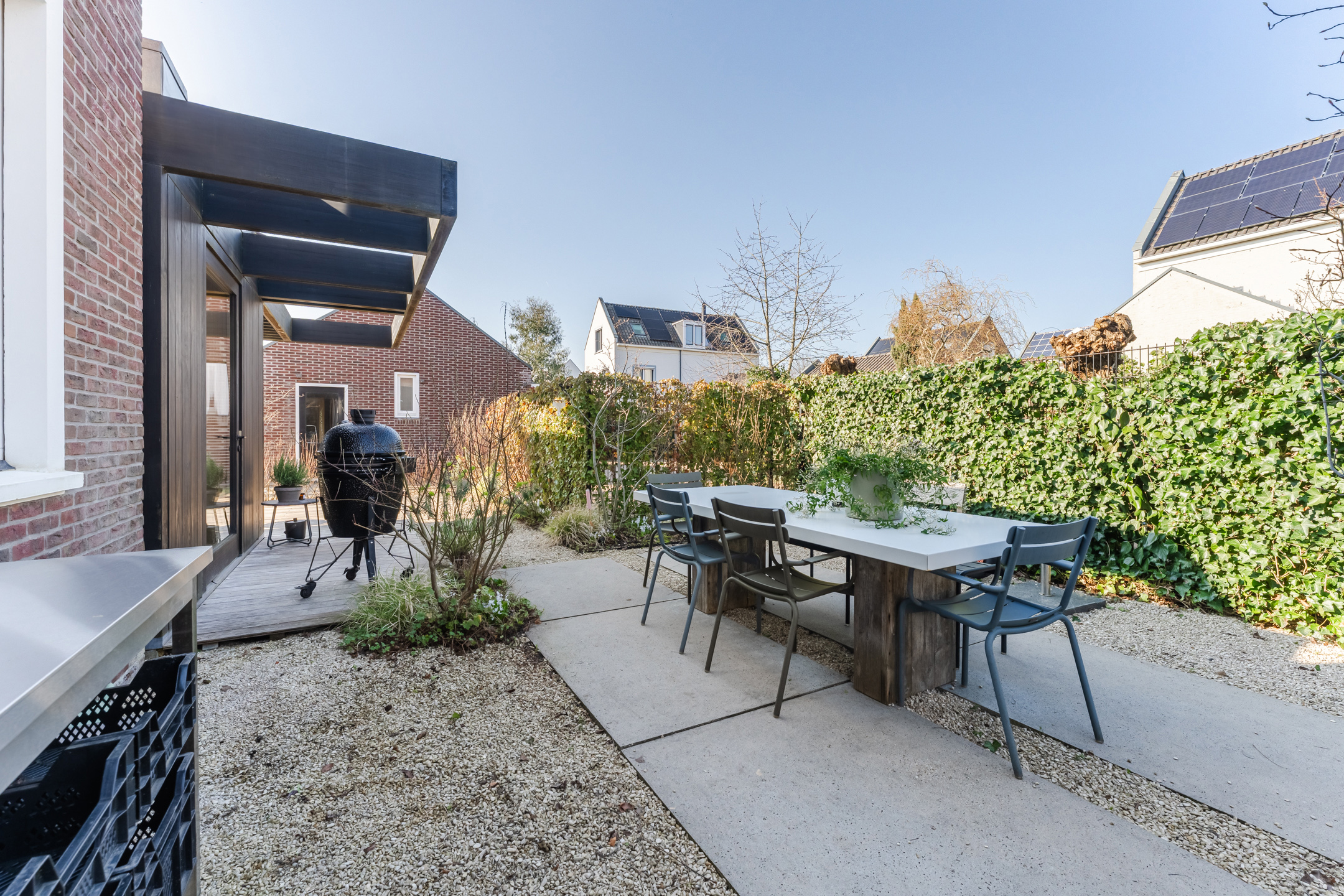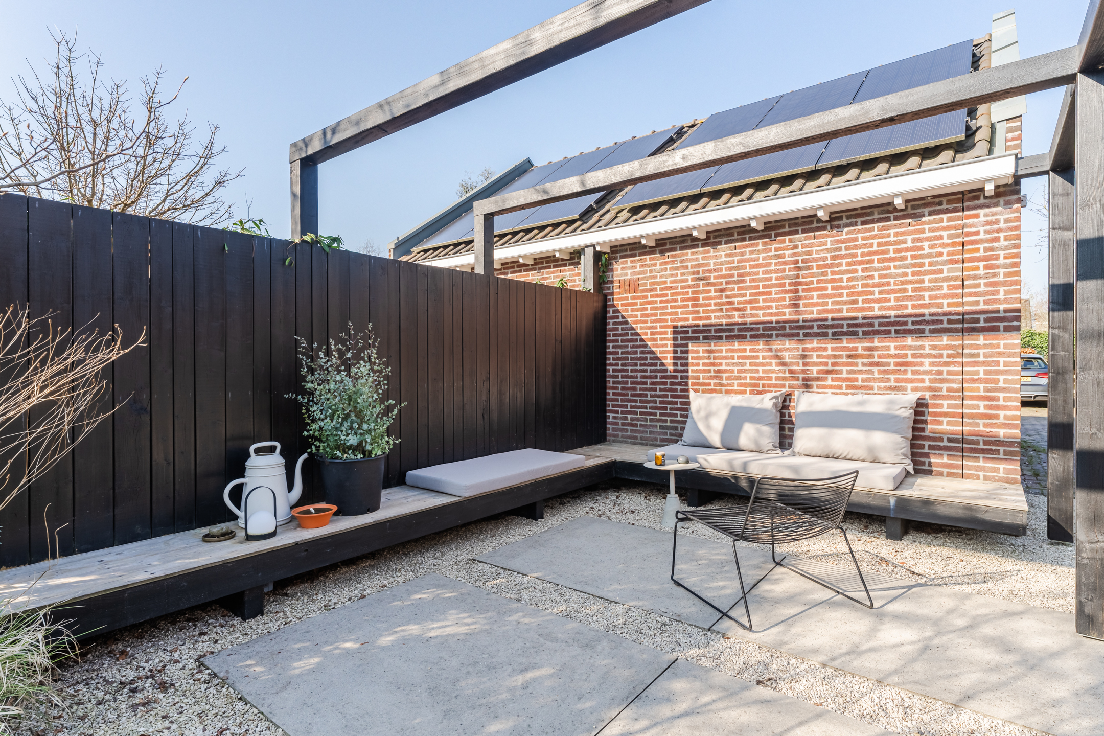 Dankzij de doordachte indeling zijn er meerdere fijne plekken gecreëerd om te genieten van het buitenleven, waaronder een zonnige zithoek met een comfortabele hoekbank. Daarnaast beschikt de woning over een zijtuin die zich uitstekend leent voor een buitenkeuken om op warme zomerdagen samen te komen met vrienden en familie voor een gezellige barbecue.