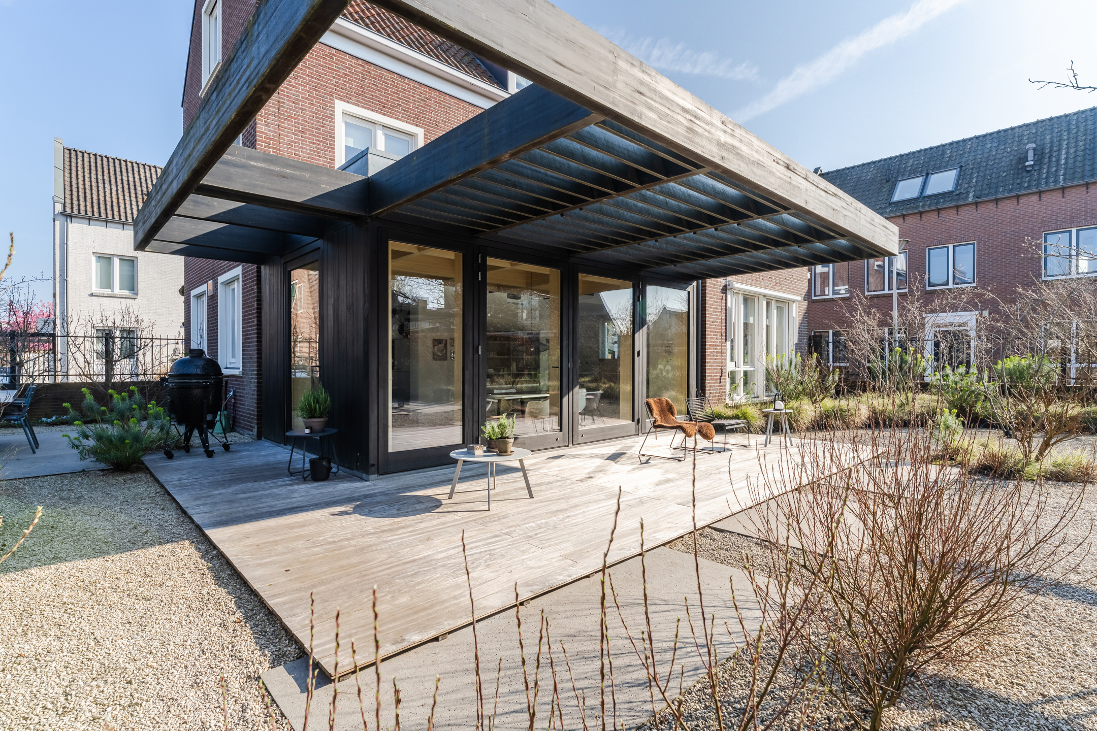 • Architectonisch ontworpen uitbouw (jaartal: 2020) die een prachtige verbinding vormt tussen woonkamer, keuken en tuin;