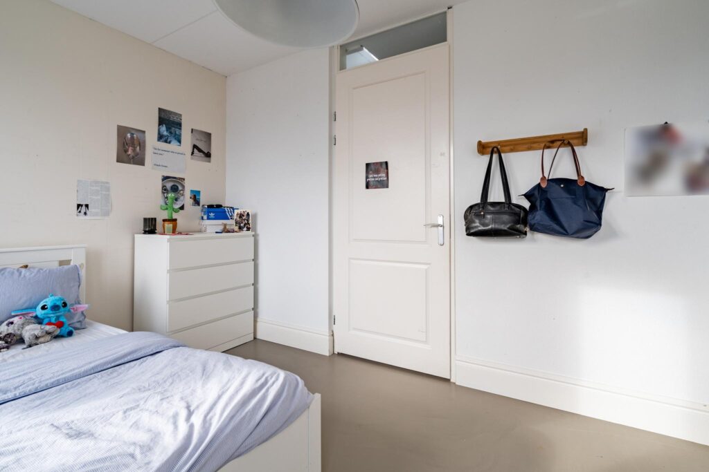 Aan de achterzijde van de woning bevindt zich de “masterbedroom” (ca. 4.45×2.91) voorzien van een heuse walk-in-closet. Super chique natuurlijk! Vanuit de “masterbedroom” bereik je het dakterras (ca. 4.66×3.42) gelegen op het oosten. Op dit dakterras pak je in de ochtend lekker de zon voor het eerste kopje koffie. De eerste verdieping is voorzien van een neutrale vloerafwerking (laminaat) en lichte wanden.