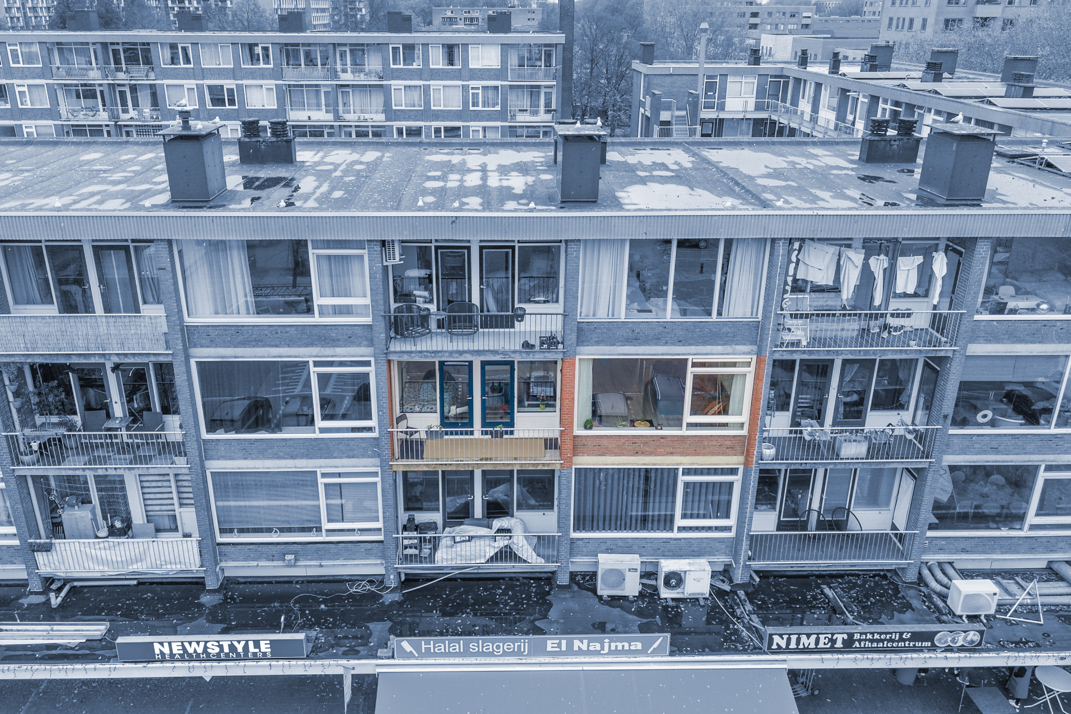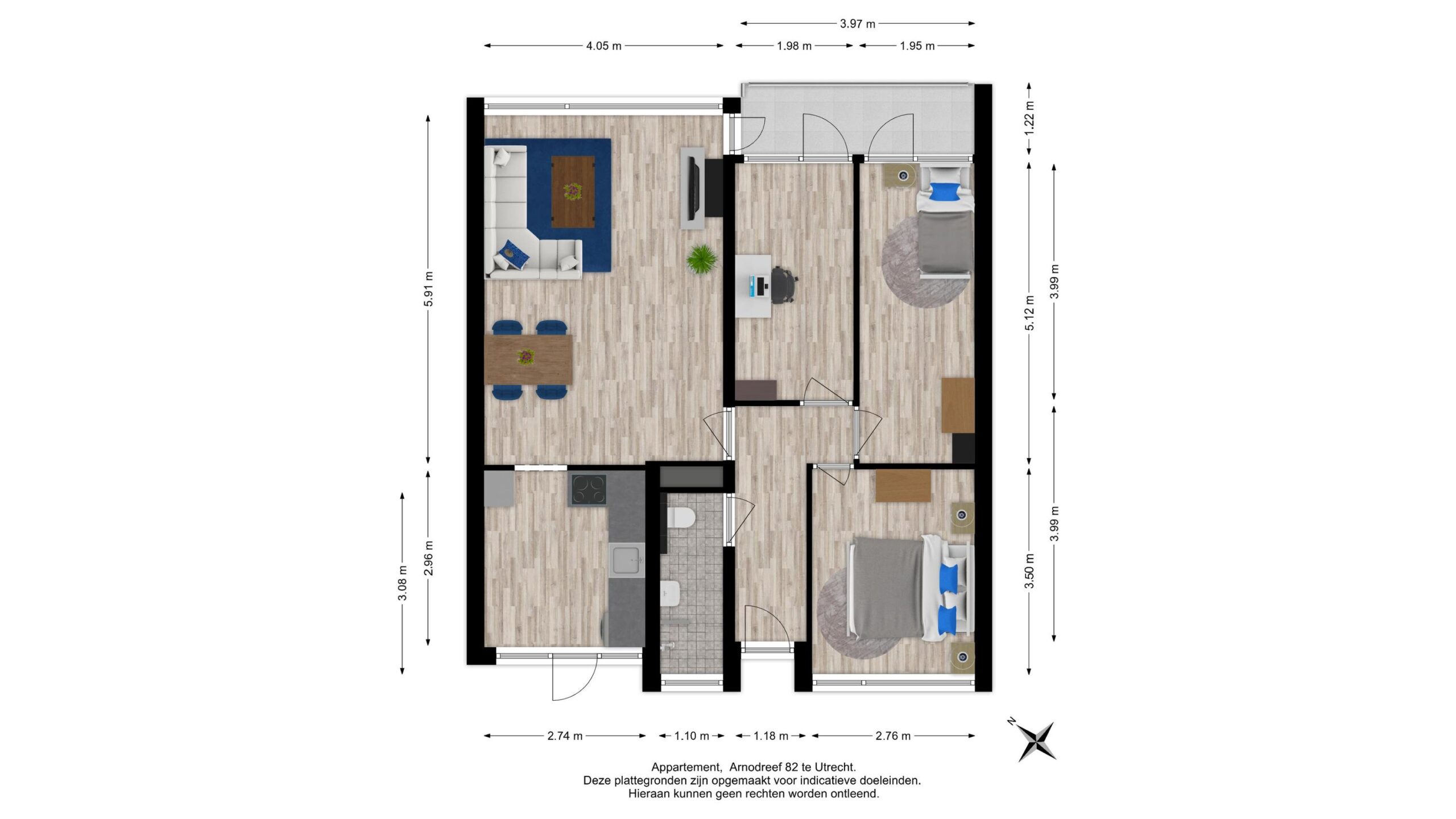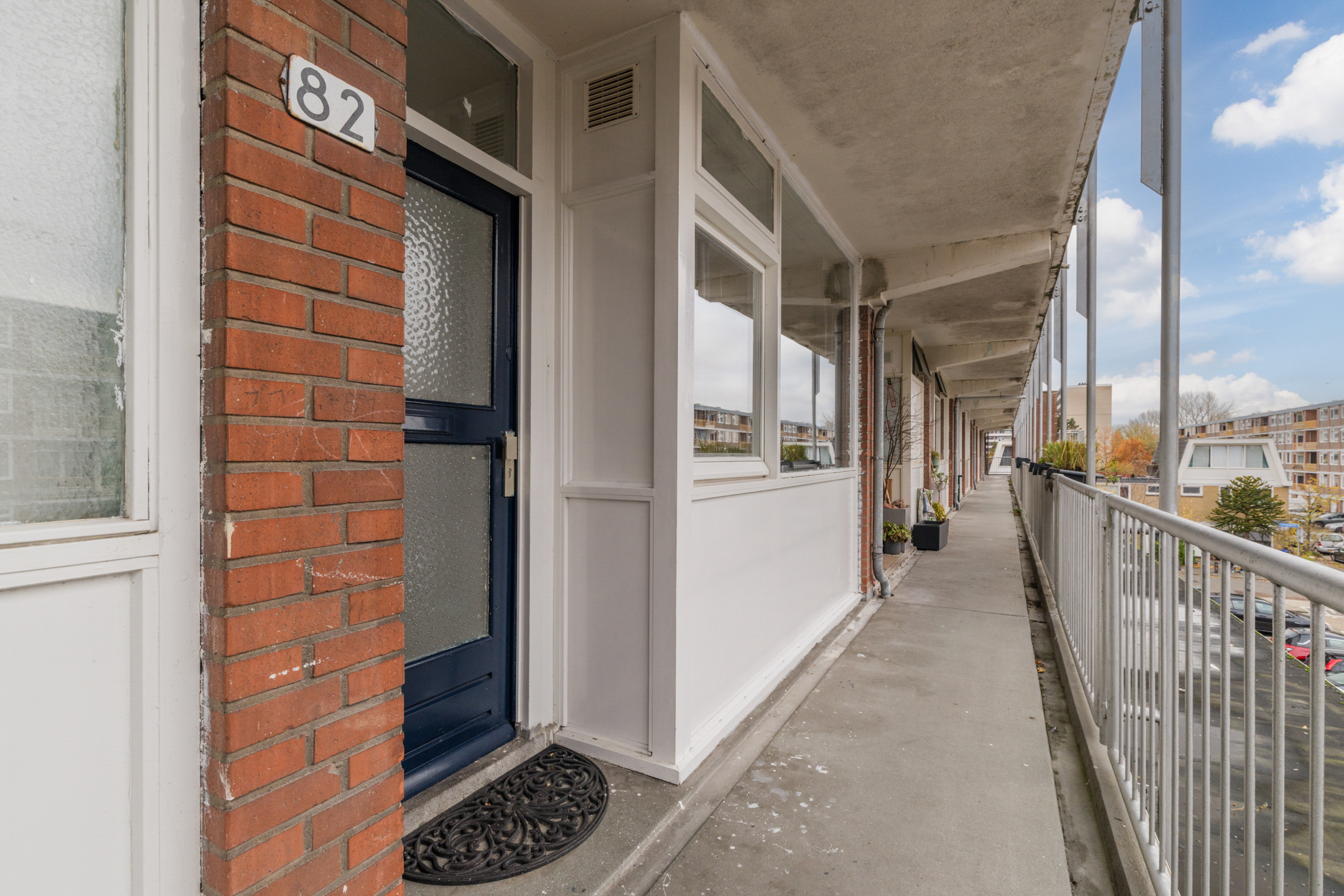 Via de galerij betreed je het appartement. Ruime hal met garderobe en meterkast, toegang tot de woonkamer met halfopen keuken, de badkamer en de drie multifunctionele slaapkamers.