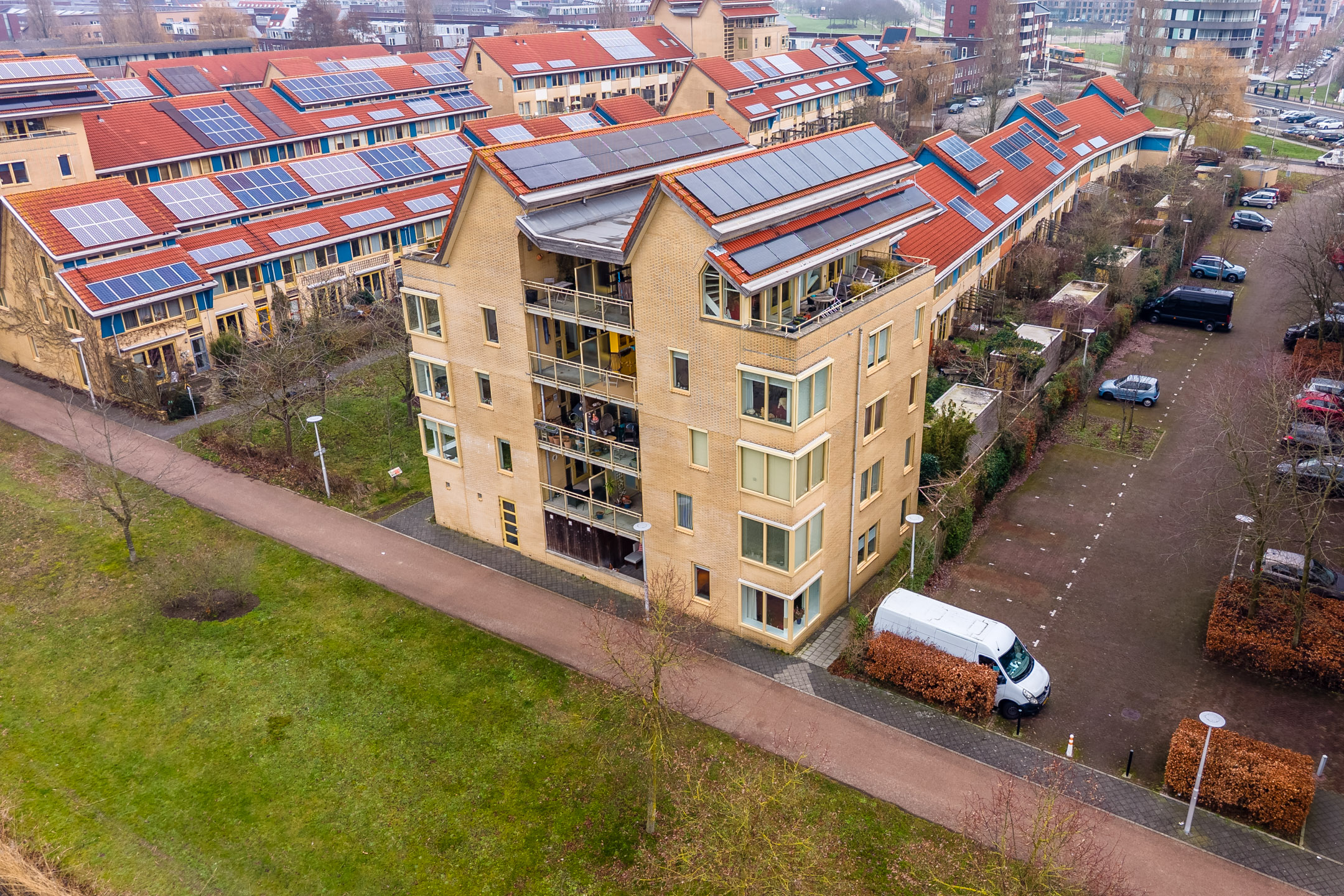 Kenmerkend voor dit appartement is de prettig indeelbare woonkamer met vrij uitzicht (westligging), de moderne halfopen keuken met leuke speelse blauw groene tegels, het heerlijke zonnige terras/loggia op het westen (avondzon!), twee volwaardige en multifunctionele slaapkamers, een ruime inpandige badkamer welke is vernieuwd in 2024 en een aparte inpandige berging annex wasruimte.