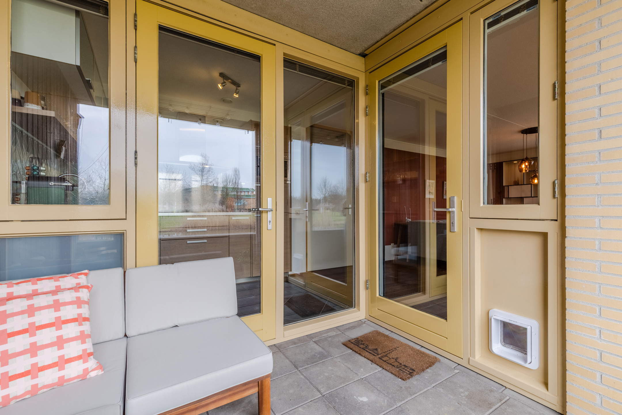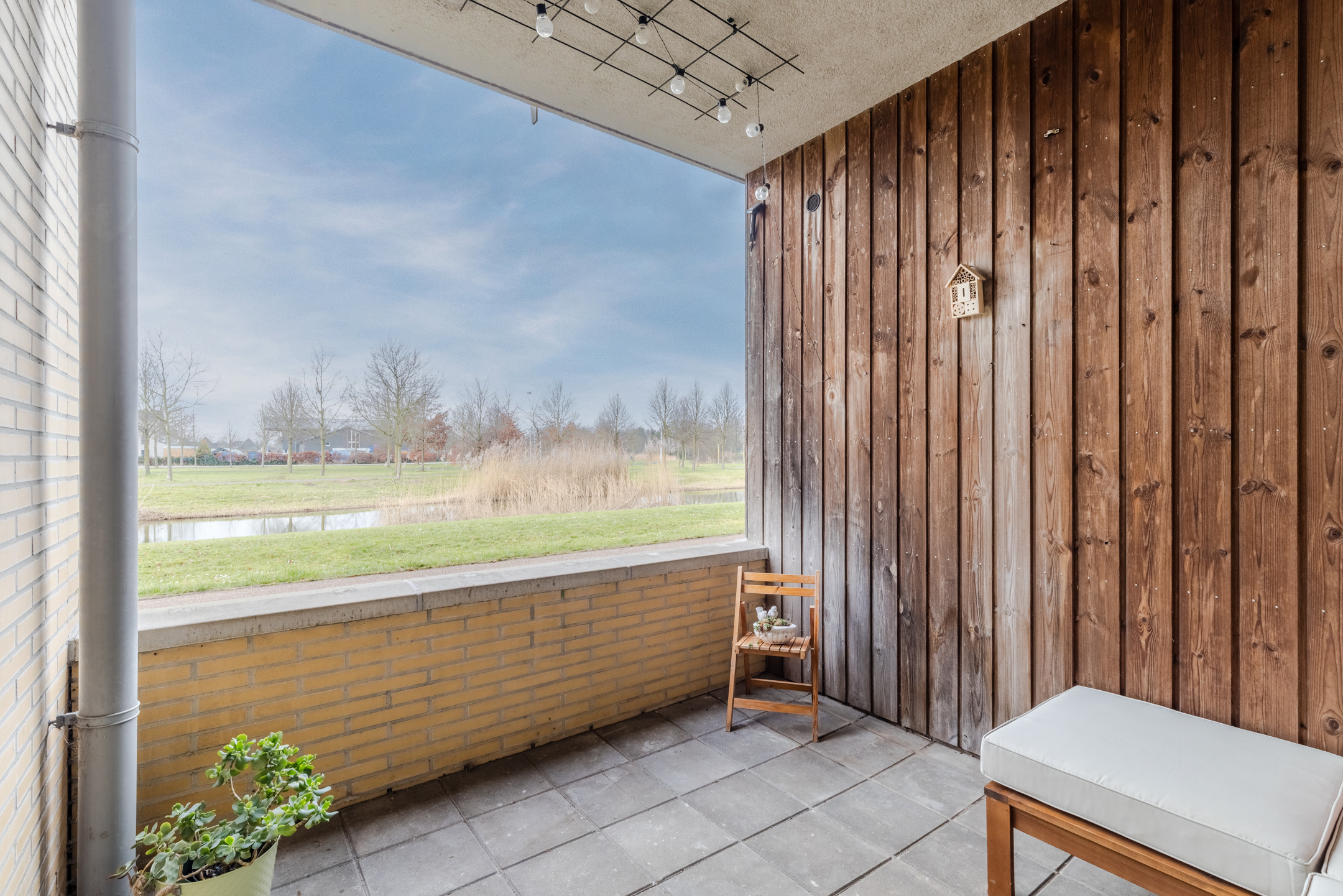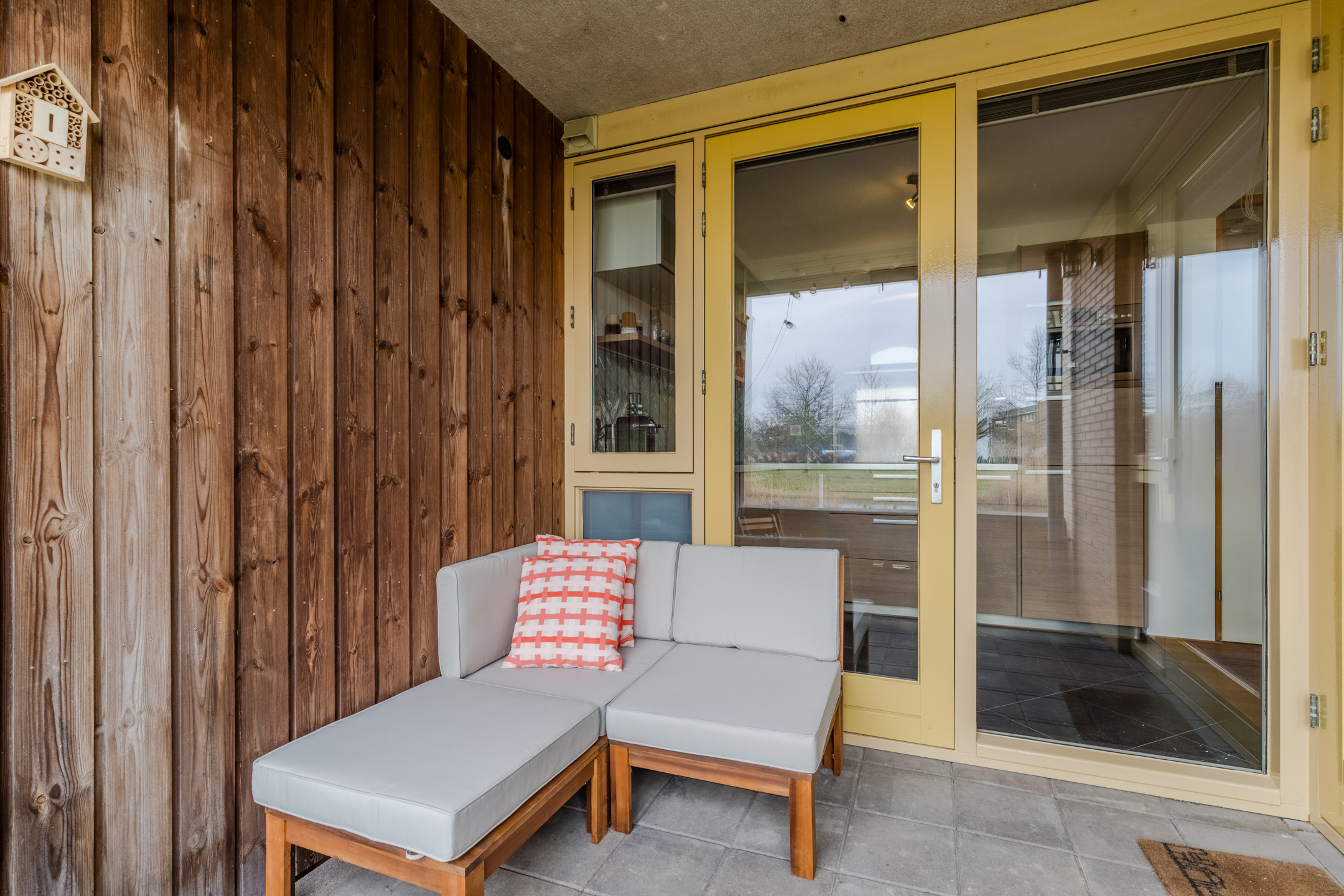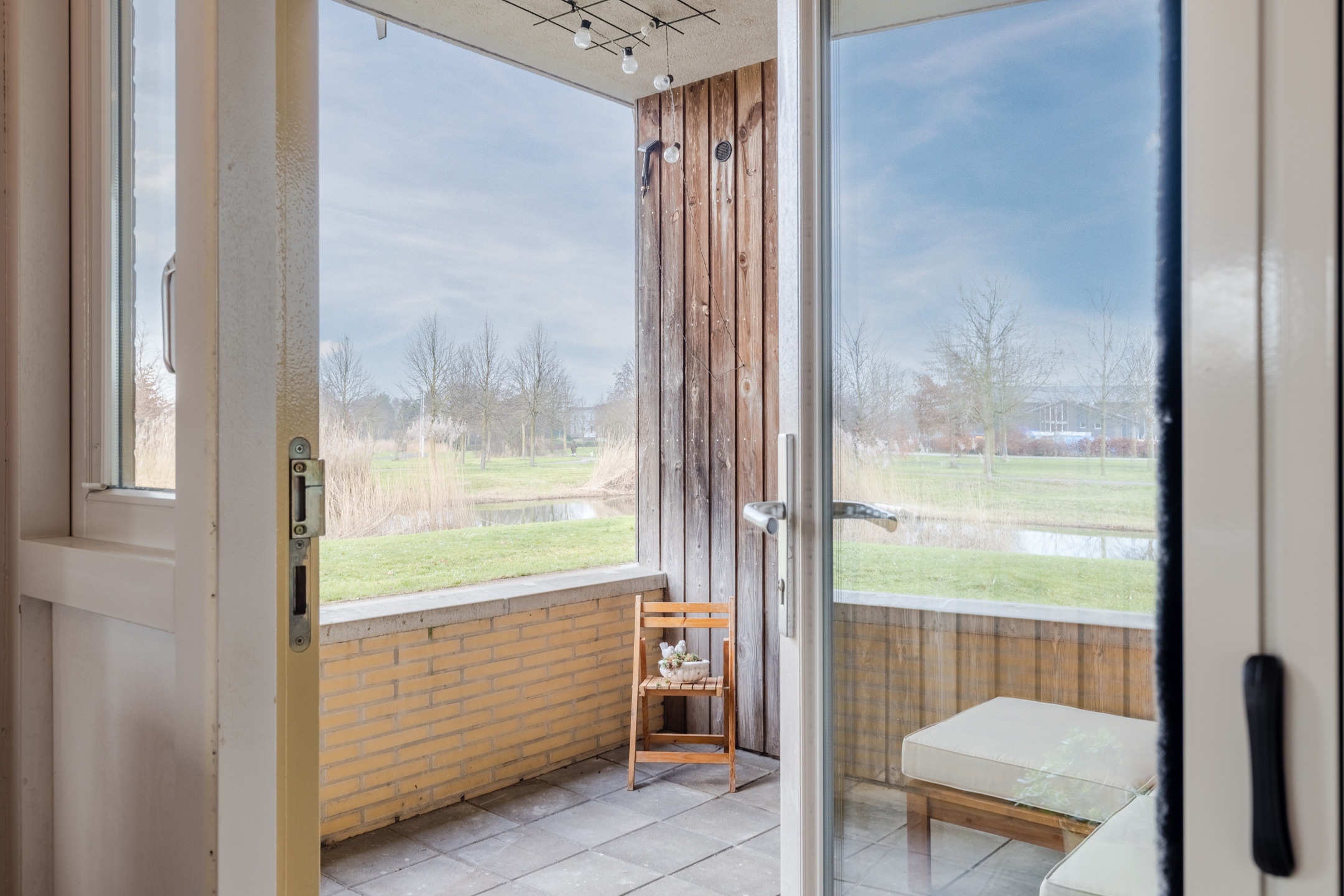 Het terras/loggia is gelegen op het westen. Hier geniet je in alle rust van de middag- en avondzon met uitzicht op het omliggende groen en water.