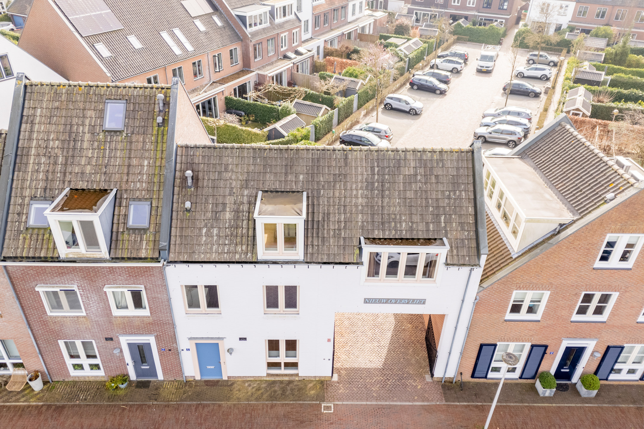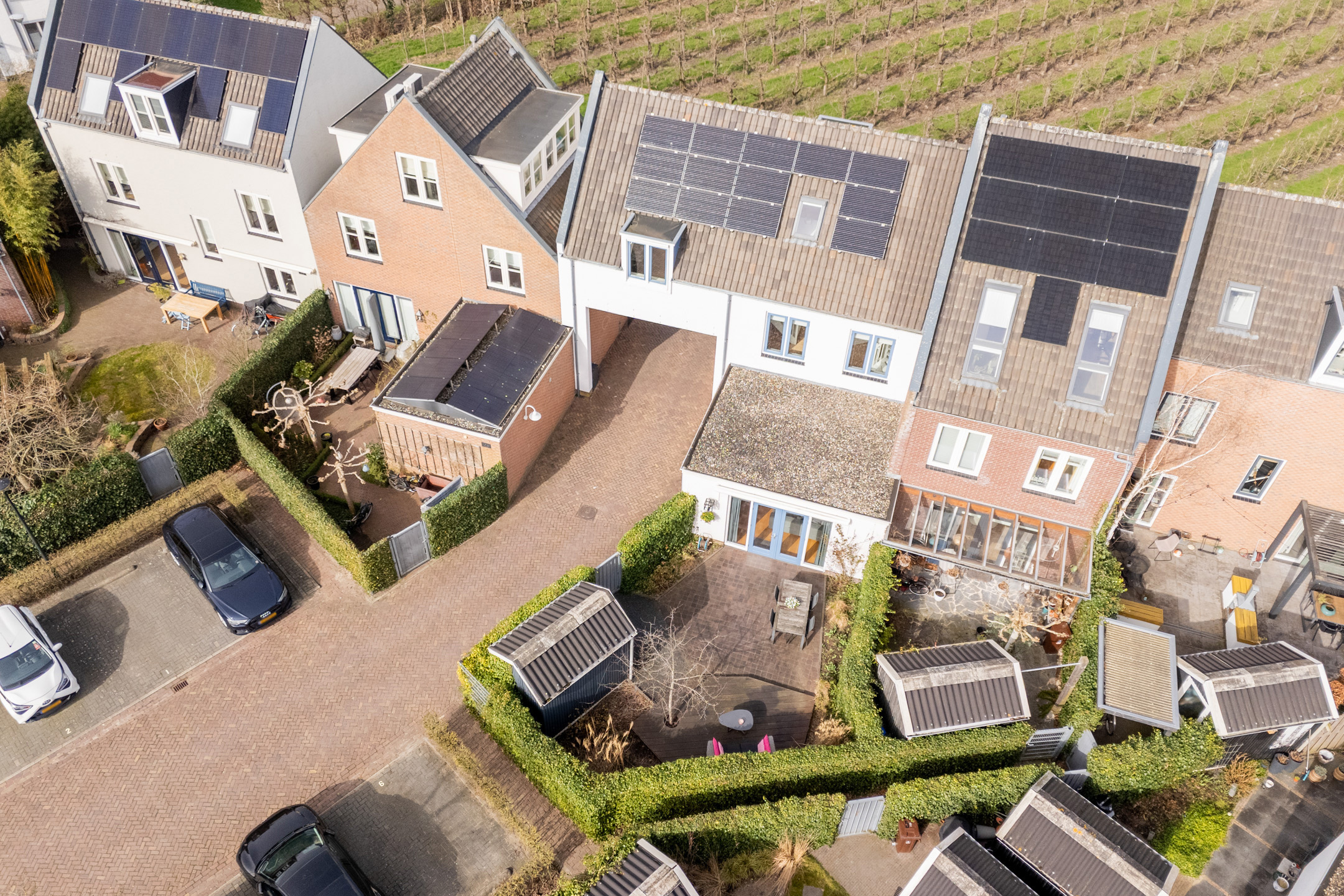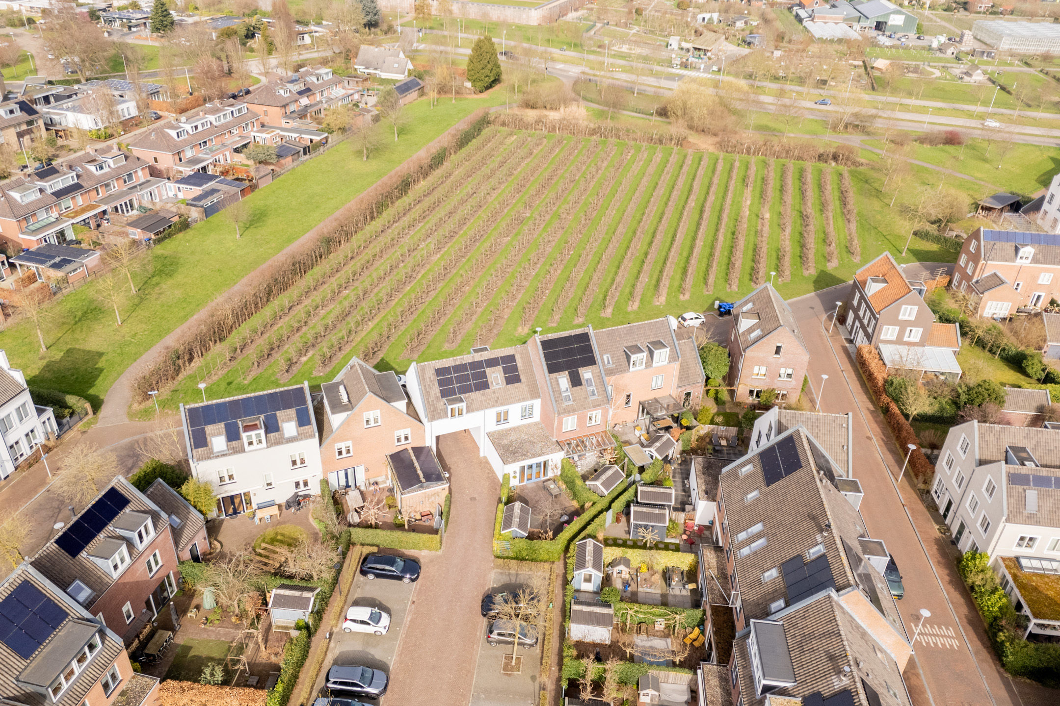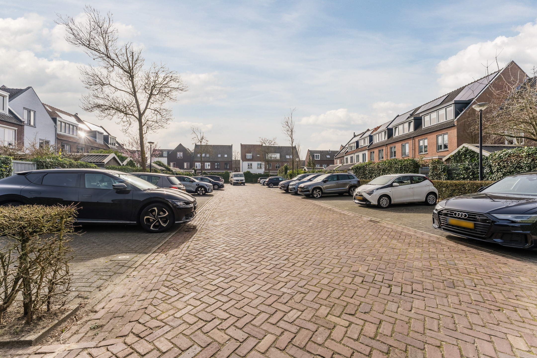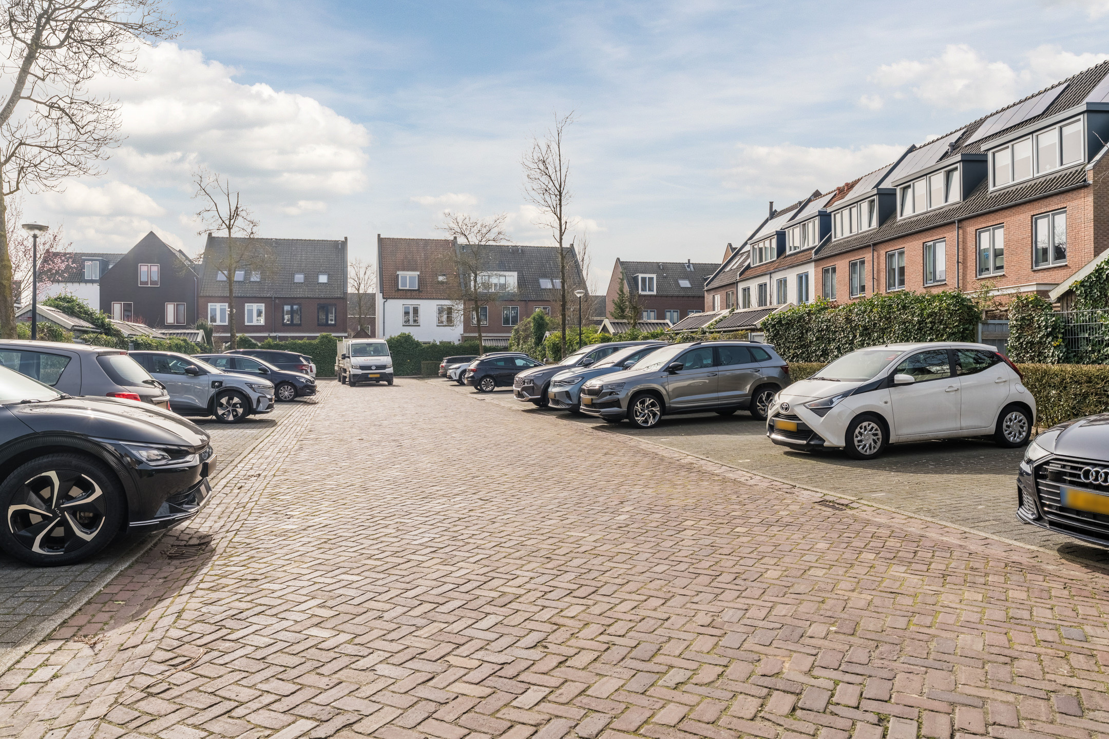 Op het mandelig binnenterrein heeft iedere aangrenzende bewoner een eigen parkeerplaats. Een eigen laadpaal behoort tot de mogelijkheden in afstemming met het bestuur van het binnenterrein.