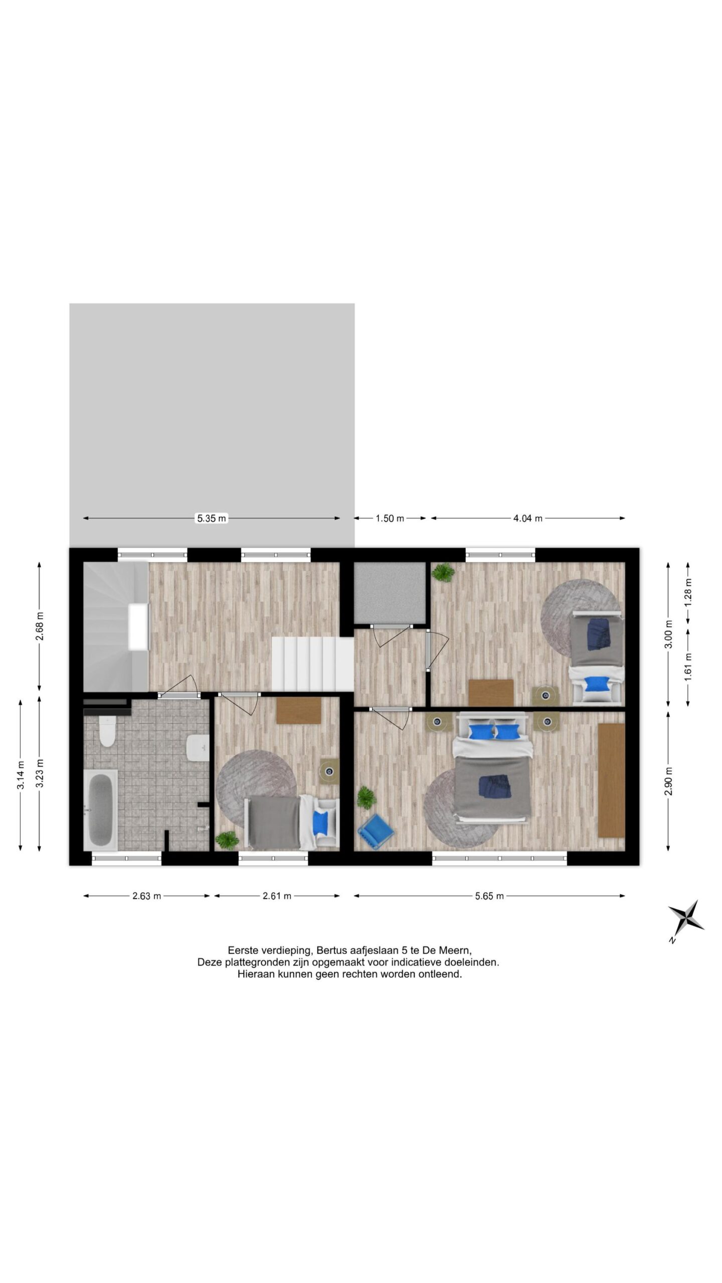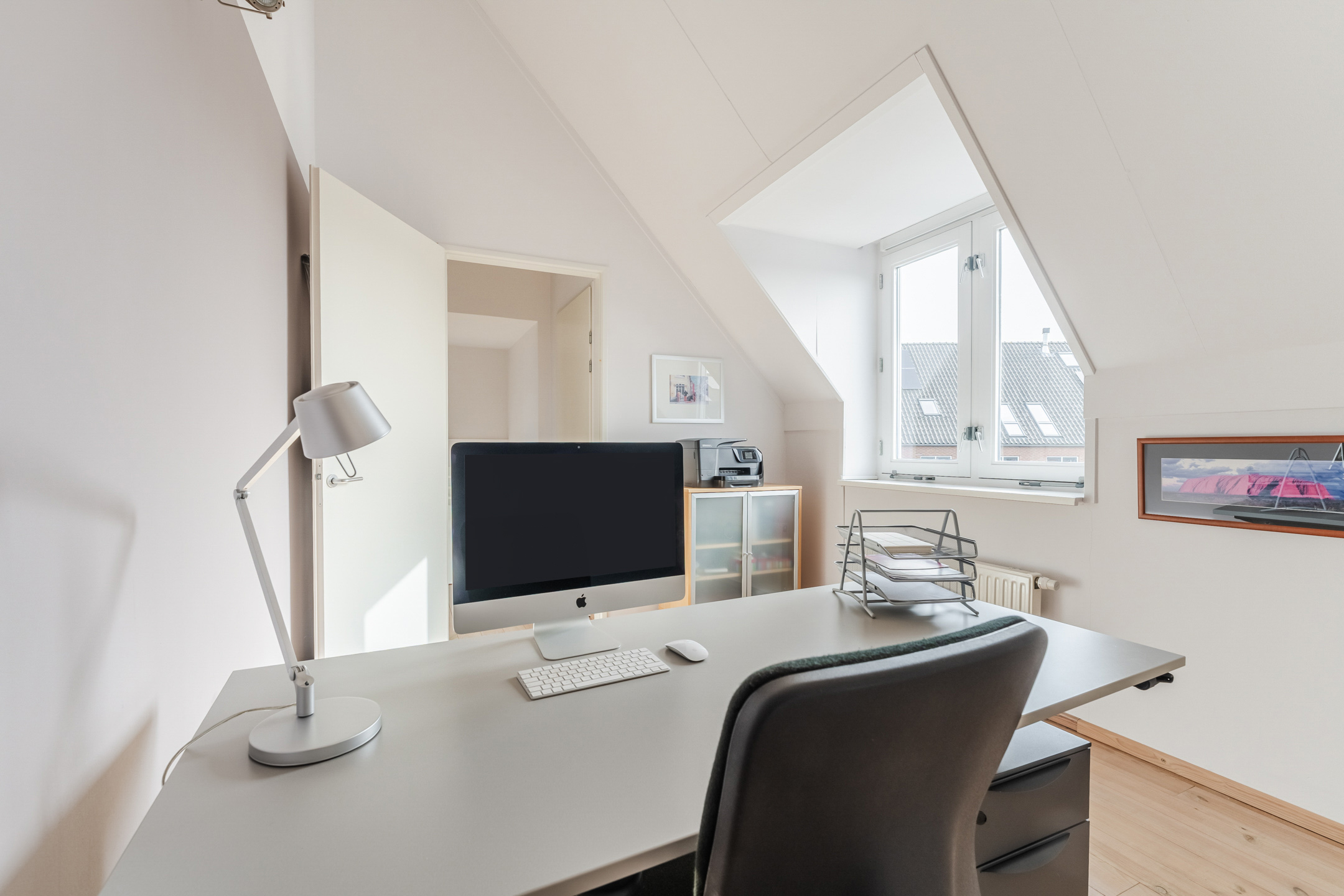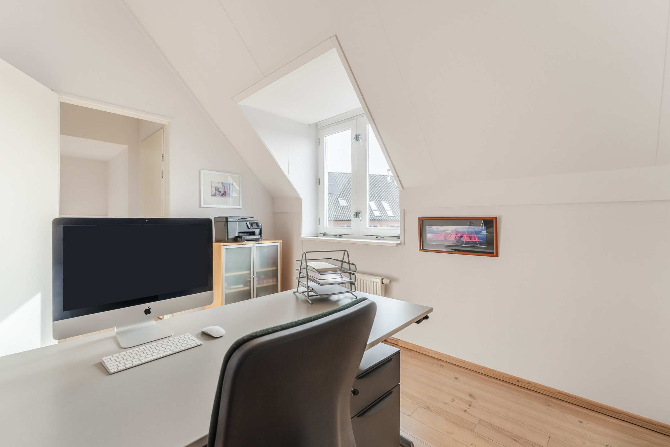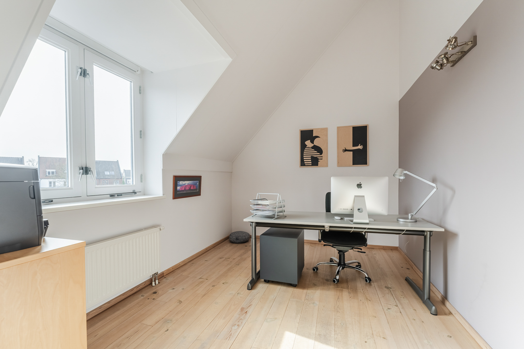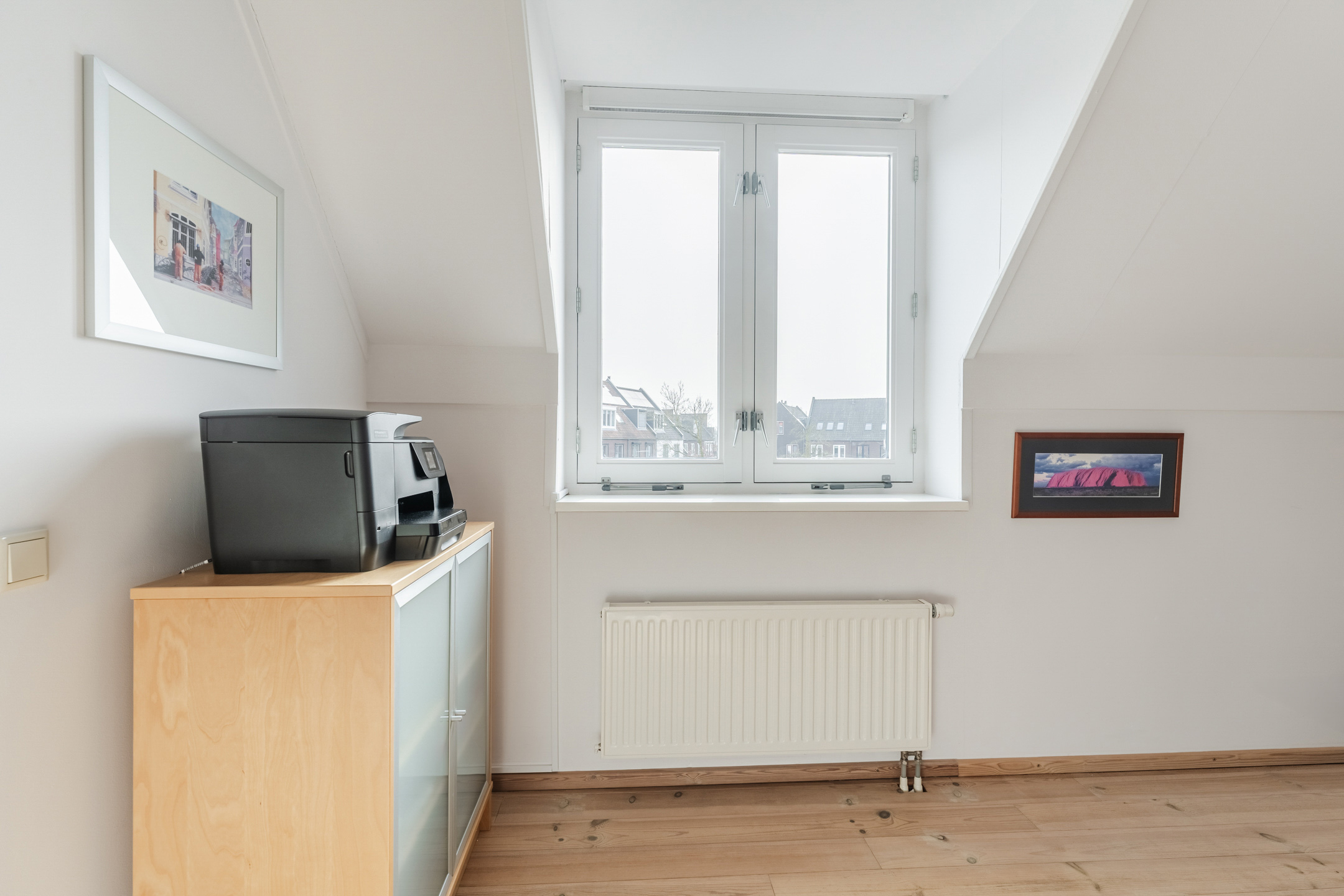 Aan de achterzijde van de woning ligt de tweede multifunctionele (slaap)kamer (ca. 3.00 x 4.04 m). Dankzij de hoge nokhoogte en de plaatsing van dakkapellen voelen beide slaapkamers extra ruim aan. De overloop bevat ook een praktische bergkast. Ideaal voor het opbergen van zaken.