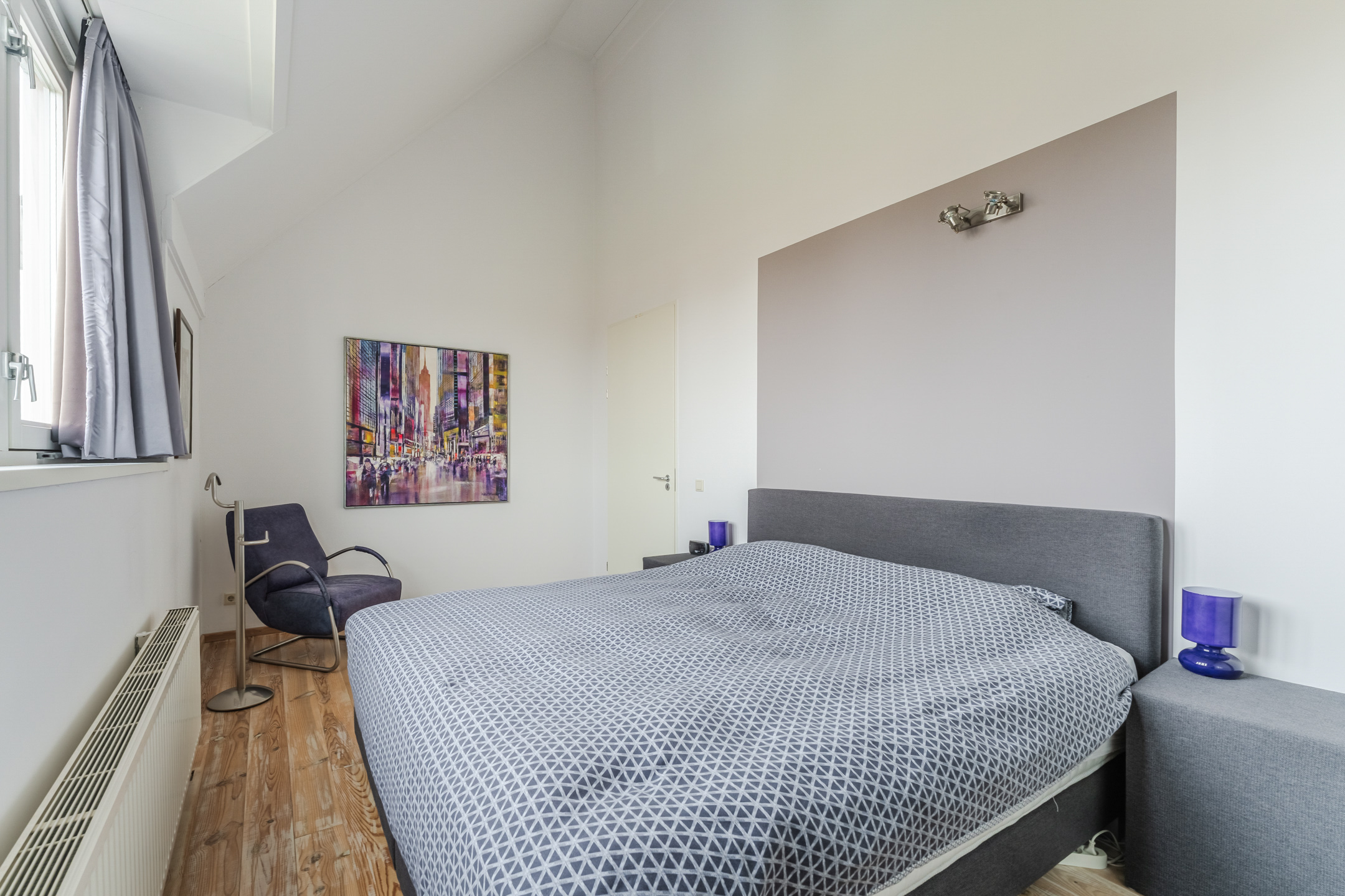 De grote slaapkamer aan de voorzijde van de woning (ca. 2.90 x 5.65) beschikt over een grote raampartij, waardoor deze ruimte heerlijk licht en ruimtelijk aanvoelt.