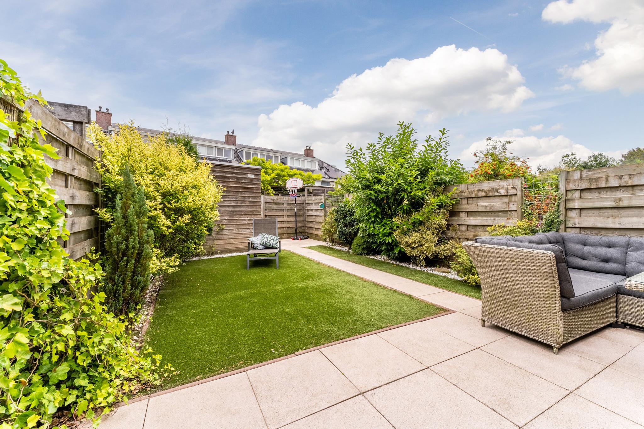 Deze tuin is werkelijk een oase van rust en schoonheid, met een keurige bestrating, charmante bloemborders, een mooie vrijstaande houten berging voorzien van elektra, en een handige achterom. Een perfecte plek om te genieten van de buitenlucht en lange zomerse dagen.