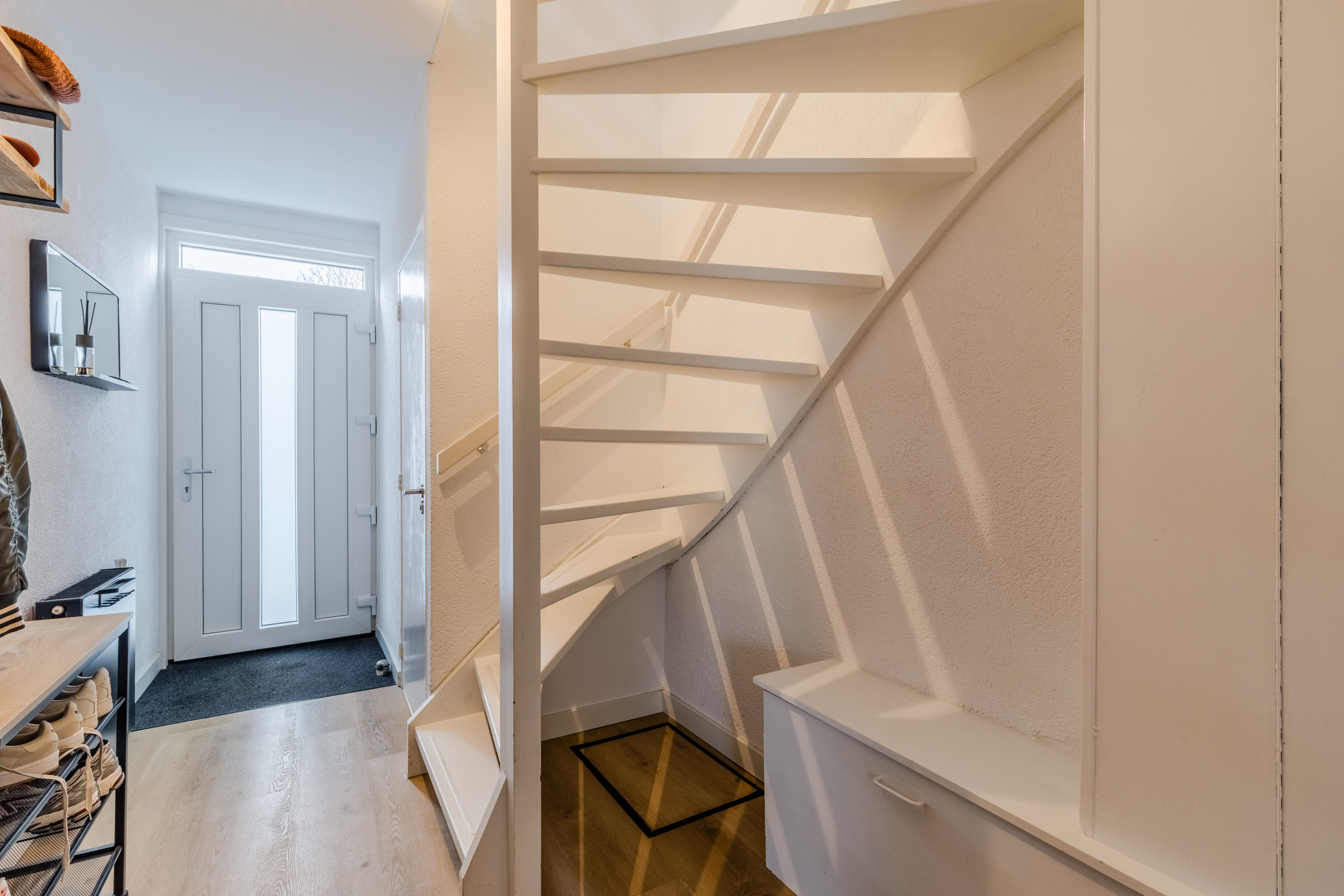 Via de hal aan de voorzijde van de woning bereik je, middels een vaste trap, de eerste verdieping.