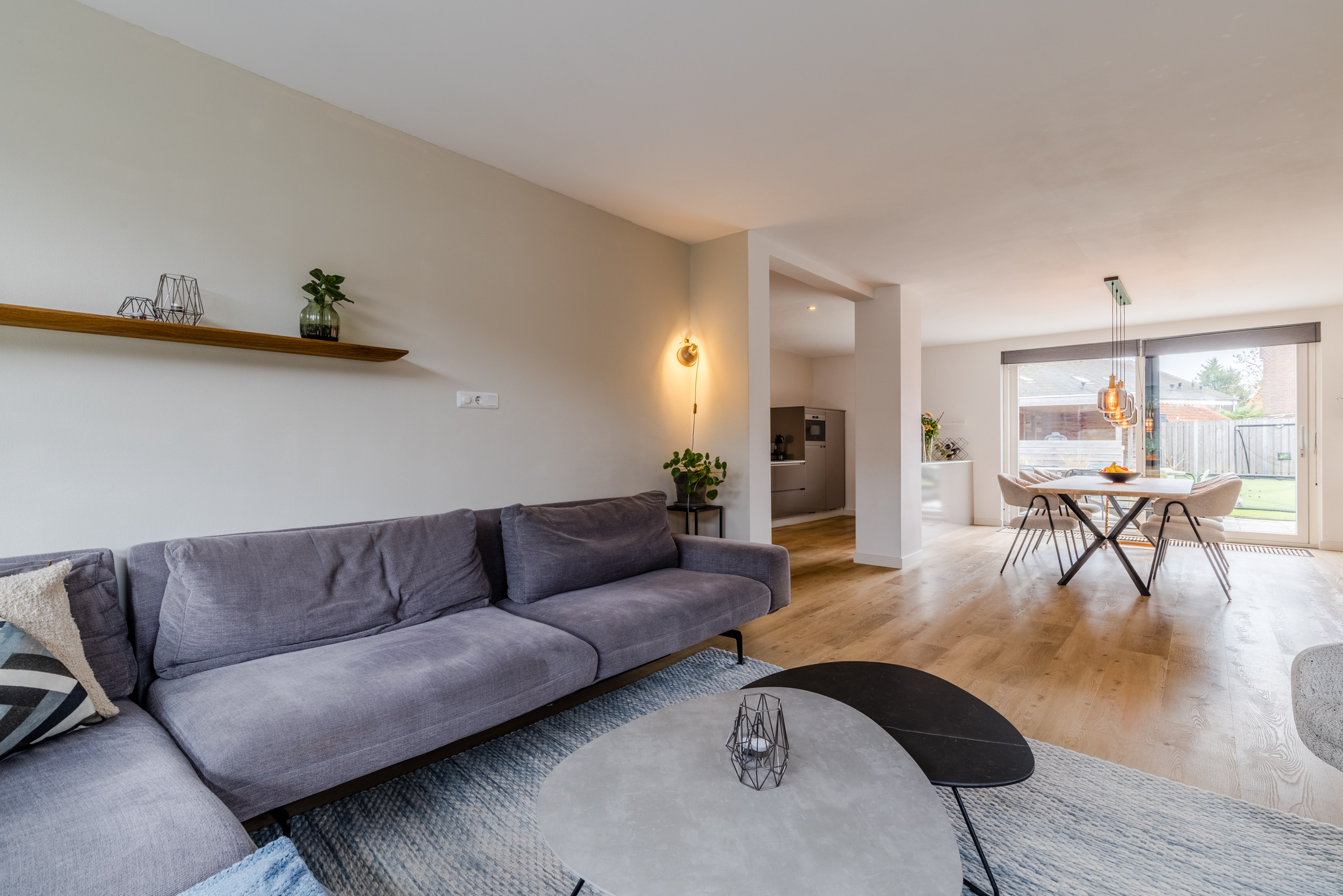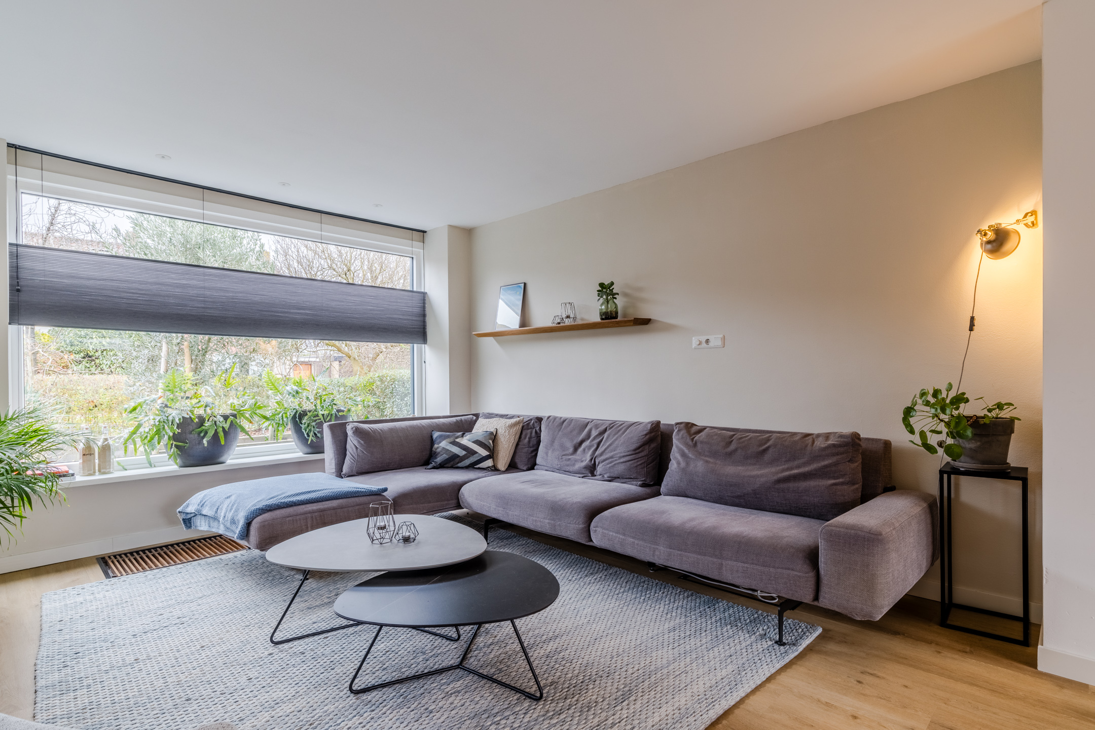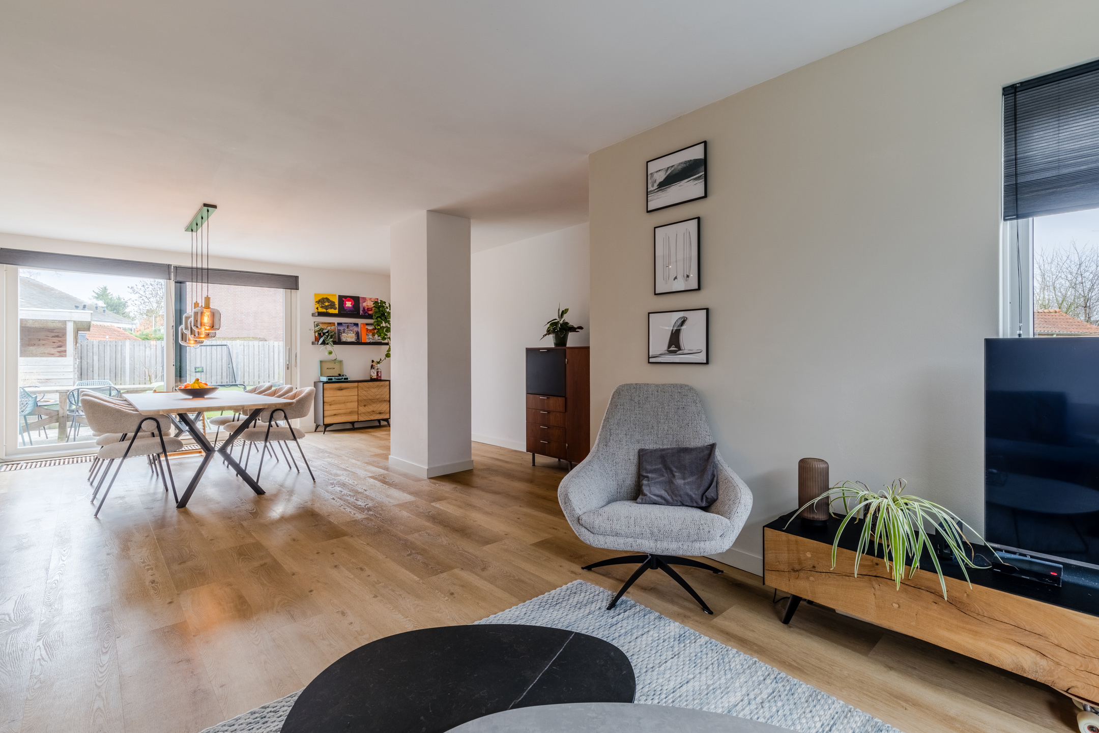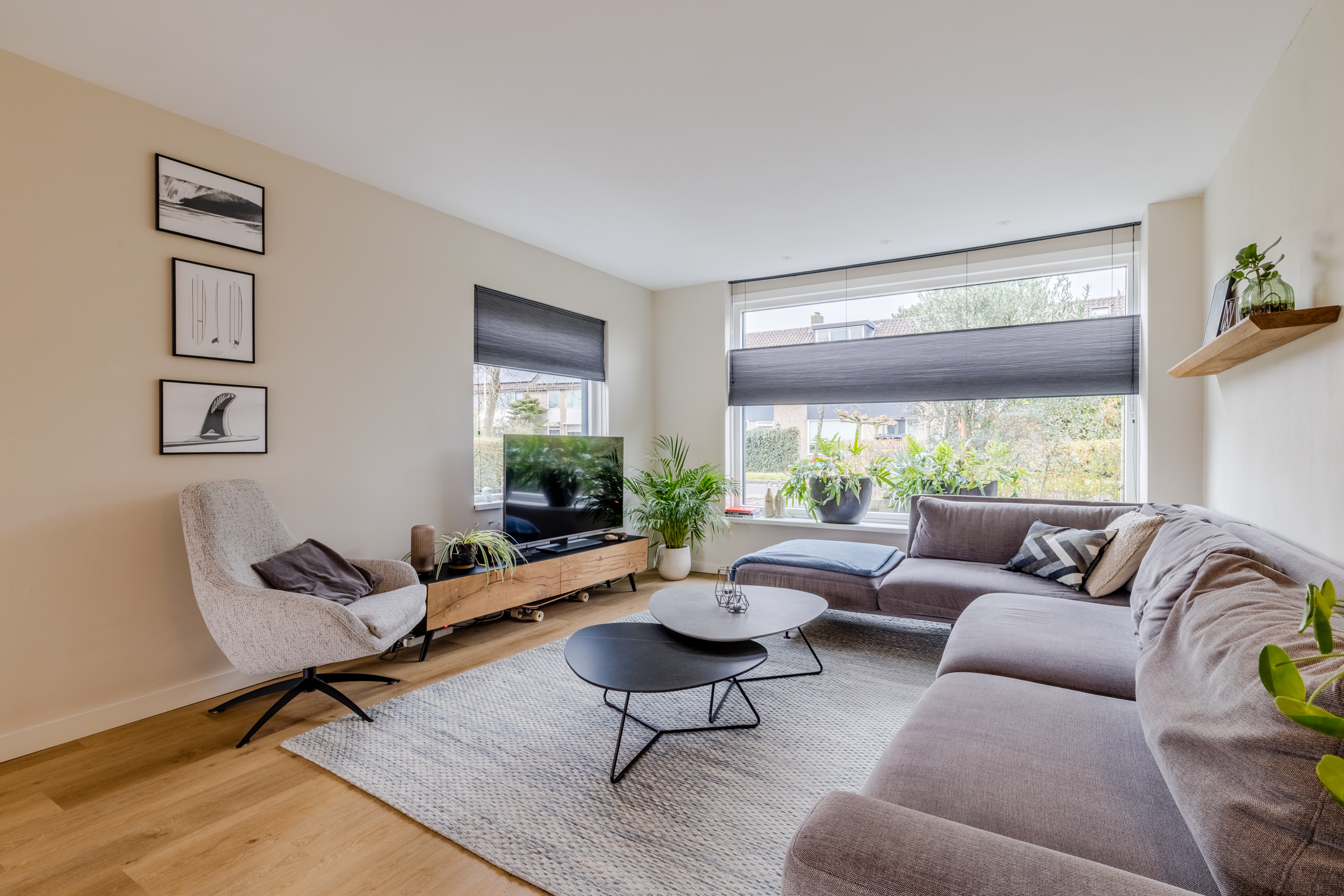 Wanneer je de ruimte betreedt word je overvallen door het gevoel van ruimte (groot, strak, licht!) dankzij de grote uitbouw, het strakke afwerkingsniveau alsmede de grote raampartijen in de voor- en achtergevel. Aan de voorzijde van de woning bevindt zich een heerlijke zitplek met uitzicht op de voortuin en de omgeving.