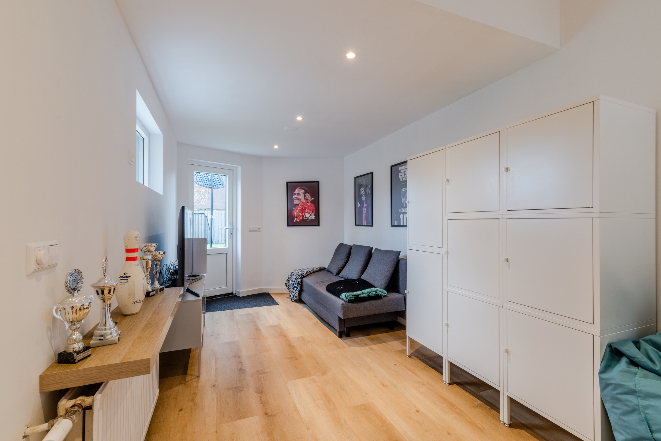 Grenzend aan de eetkamer, bevinden zich nog twee mooie ruimtes (ca. 8 & 17 m2) die uitstekend dienst kunnen doen als speelkamer voor de kinderen en/of werk-/ studeer-/ waskamer. In de ruimte aan de voorzijde van de woning bevindt zich, keurig in een kast weggewerkt, de opstelplaats voor de wasmachine en droger.