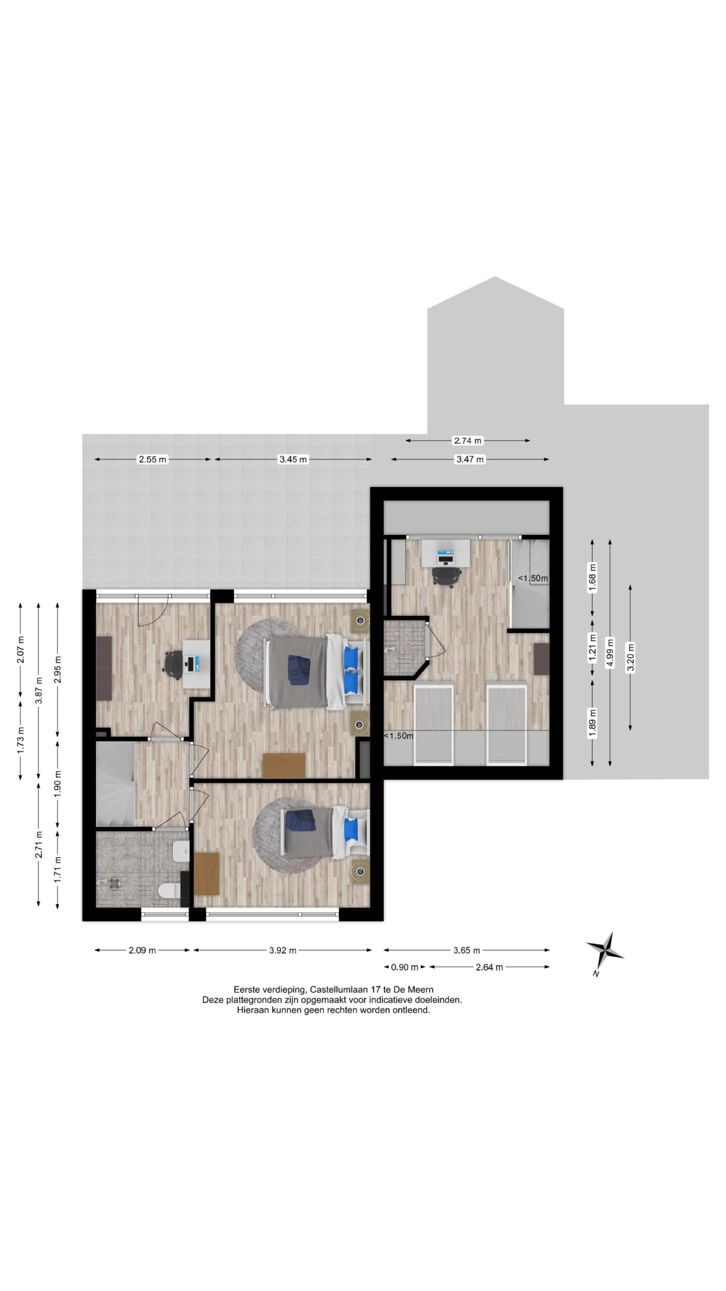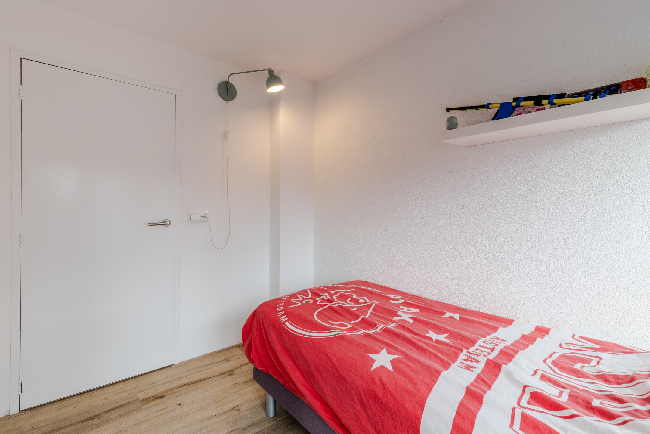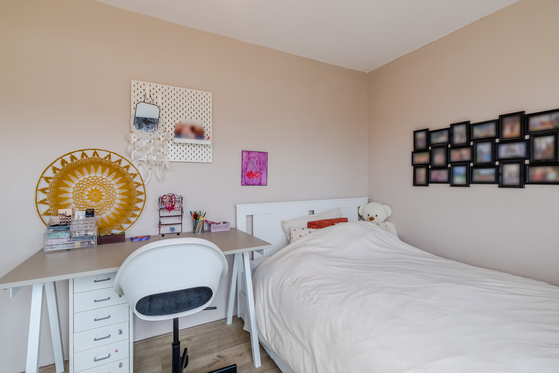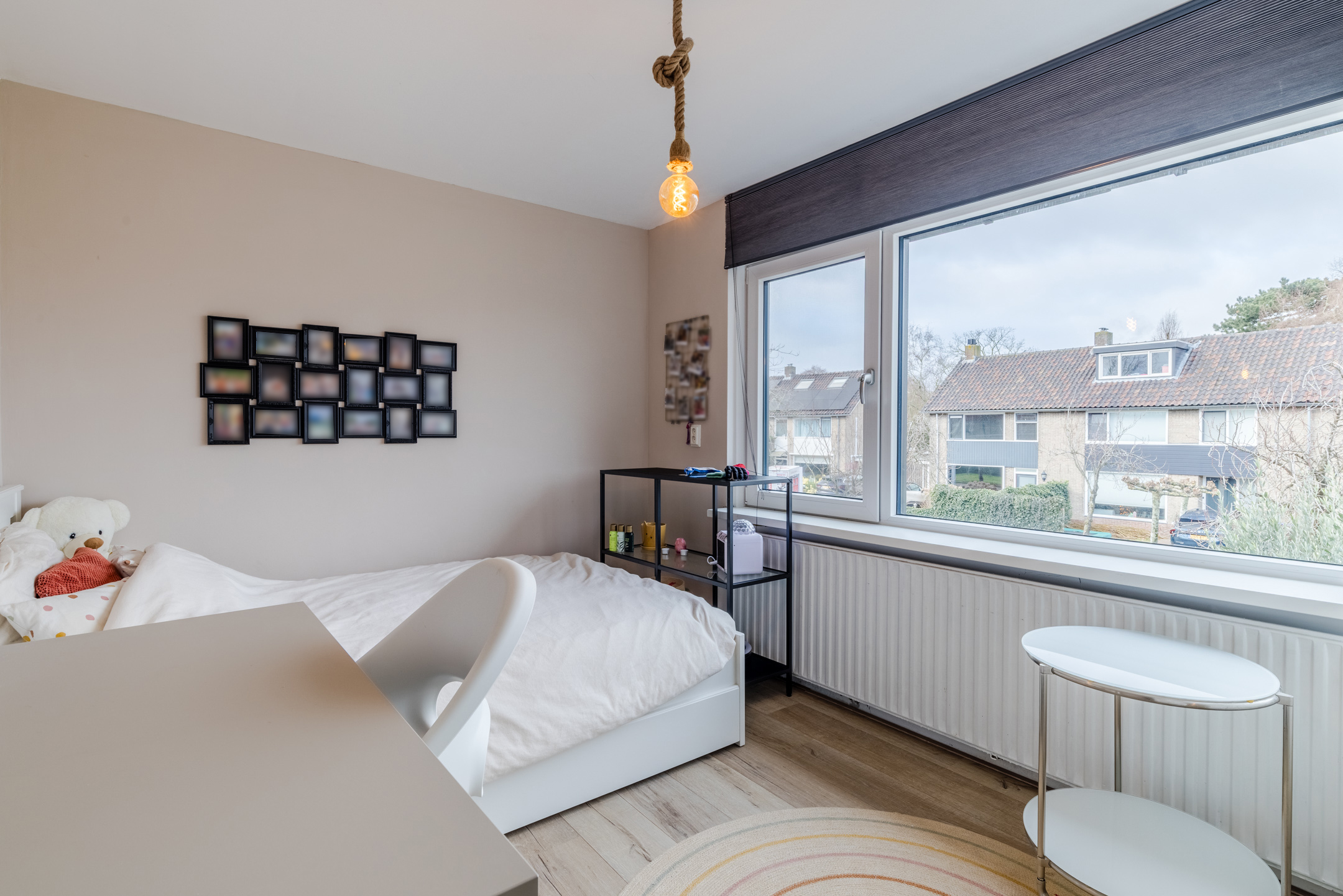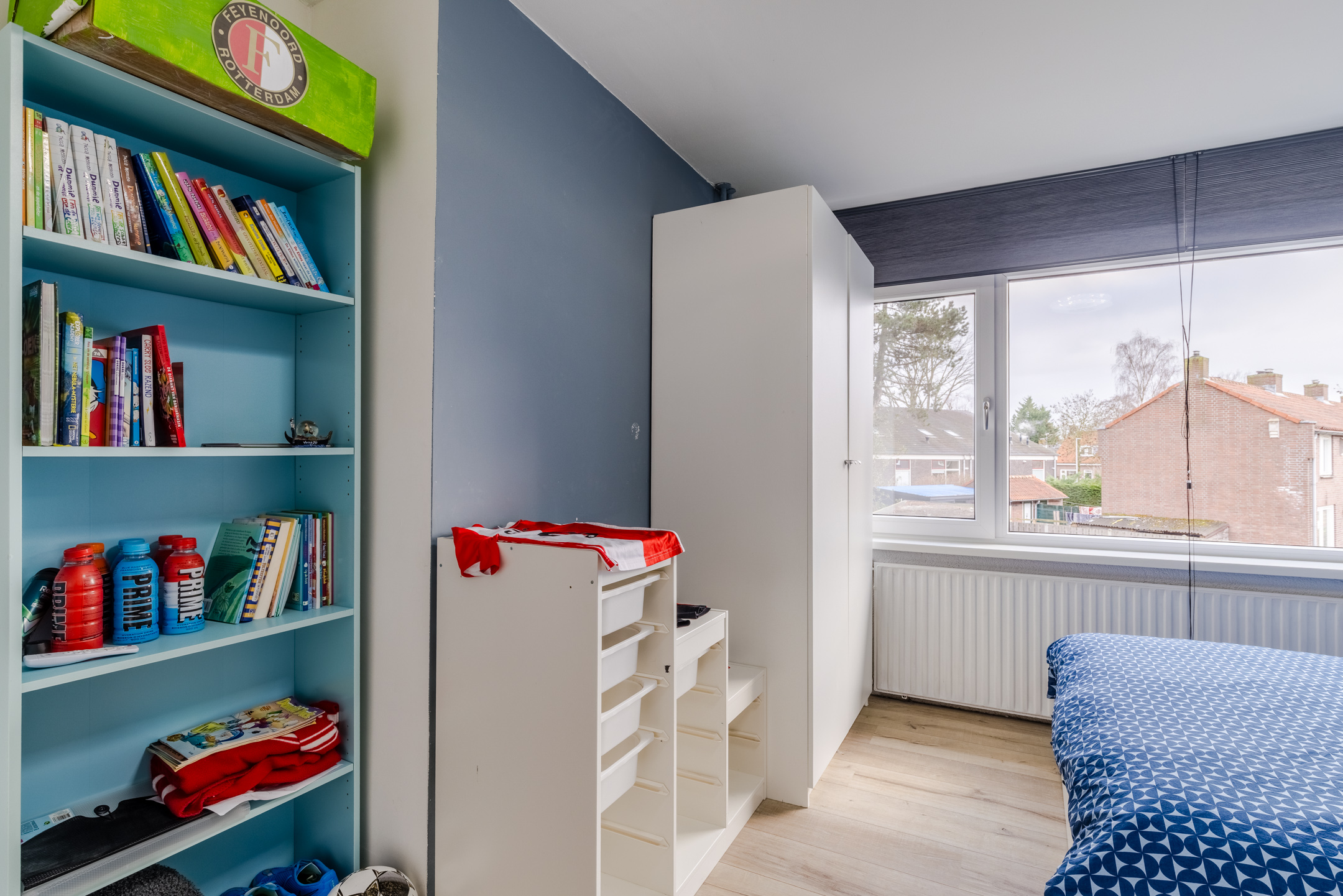 Aan de achterzijde tref je eveneens twee volwaardige en multifunctionele (slaap)kamers (ca. 8 & 13 m2). De kleinere slaapkamer is voorzien van een deur die toegang biedt tot het dak van de uitbouw. De grote slaapkamer beschikt over een mooie, grote raampartij met een draai-/ kiepraam. Beide slaapkamers beschikken over horren en kijken uit op de gezellige achtertuin.