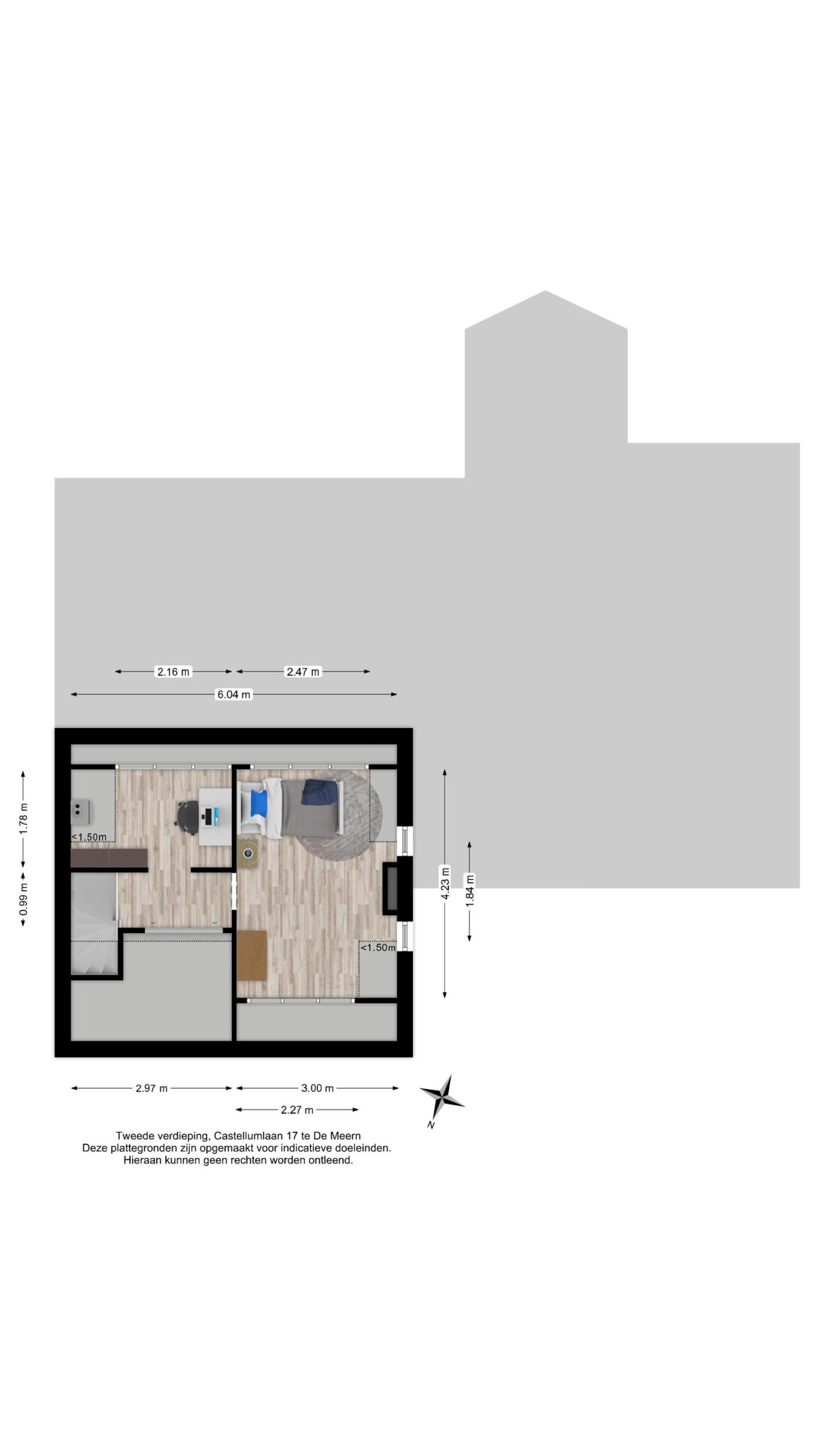 De gehele verdieping is keurig afgewerkt, beschikt over een neutrale laminaatvloer en strakke wand-/ en plafondafwerking.