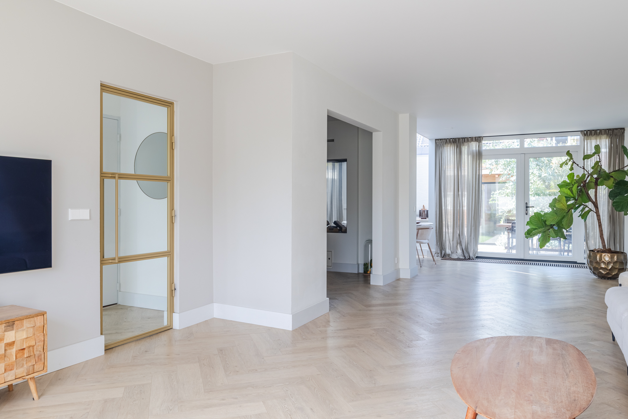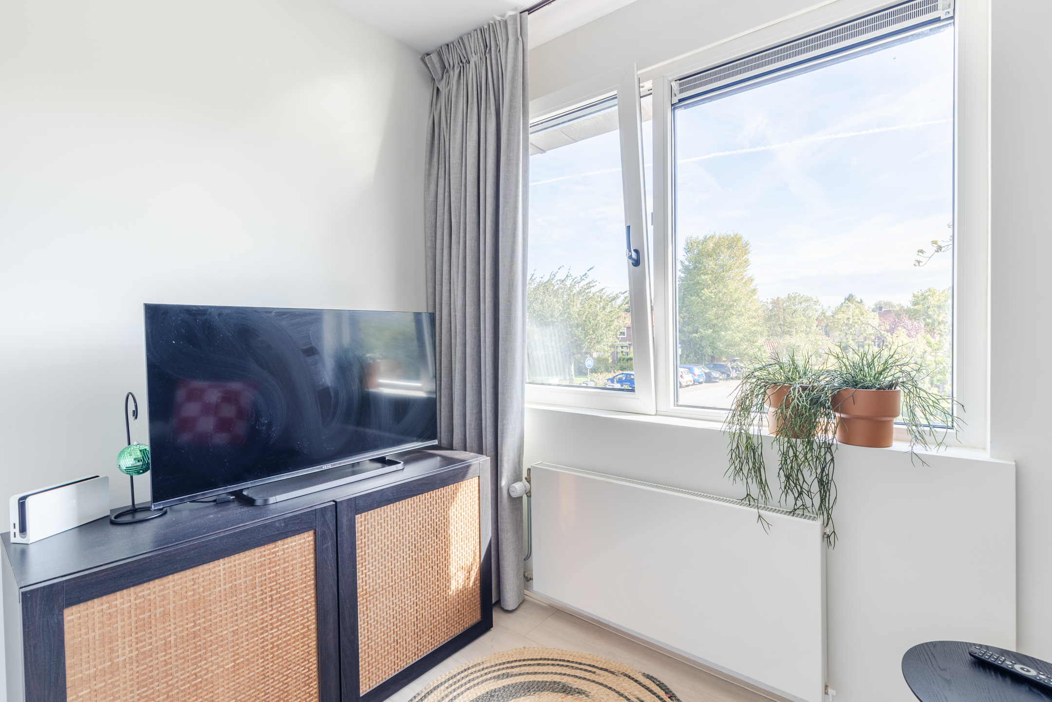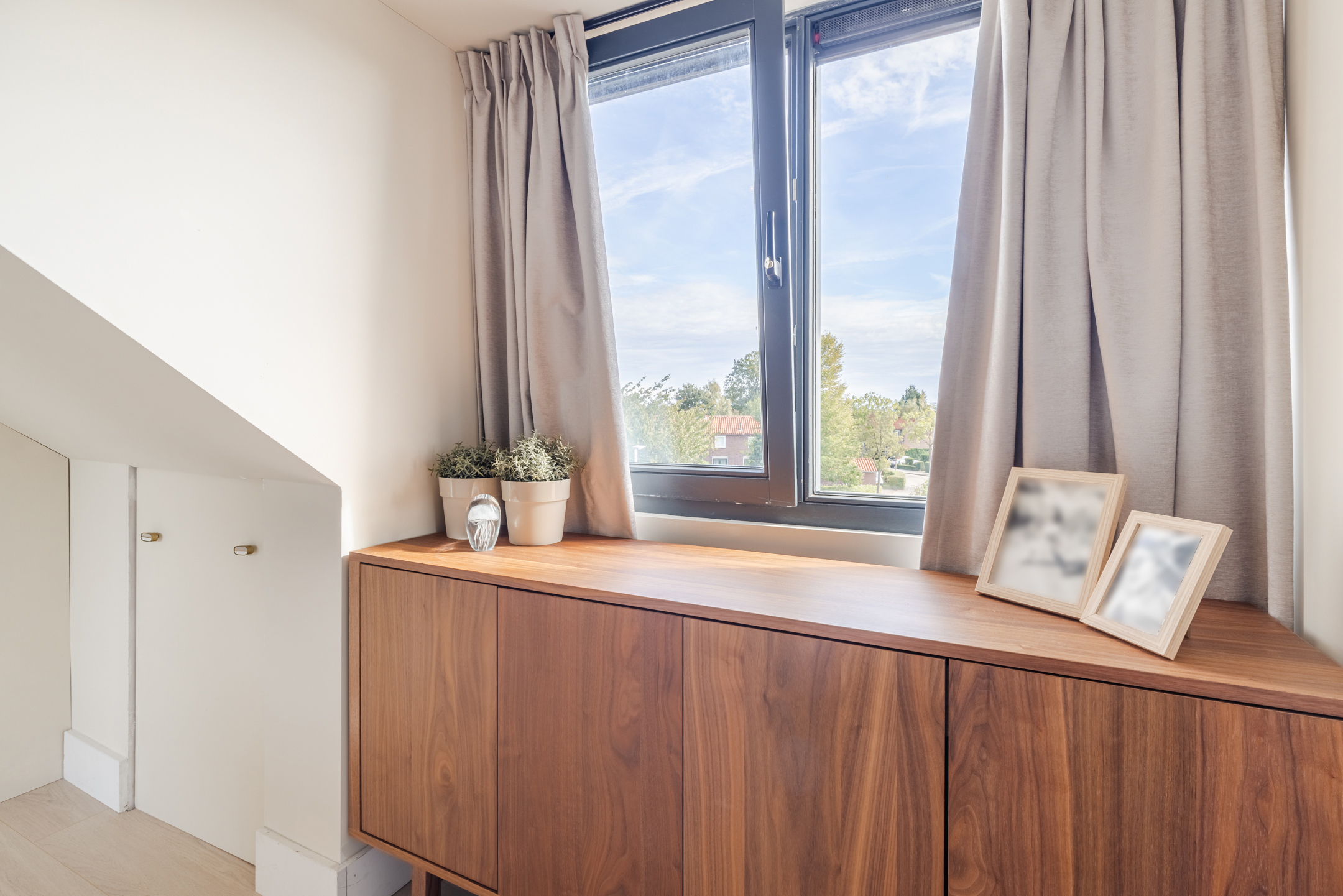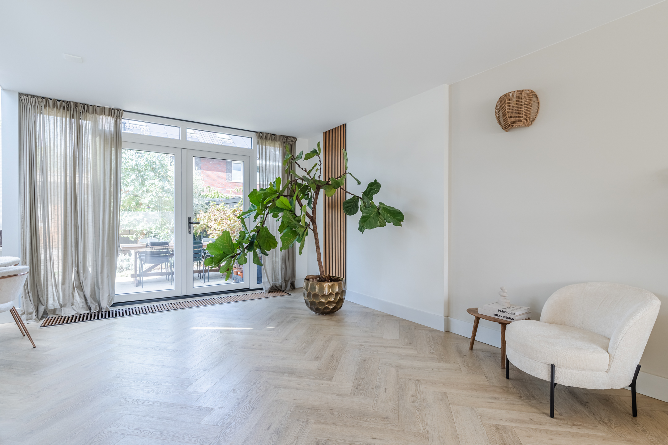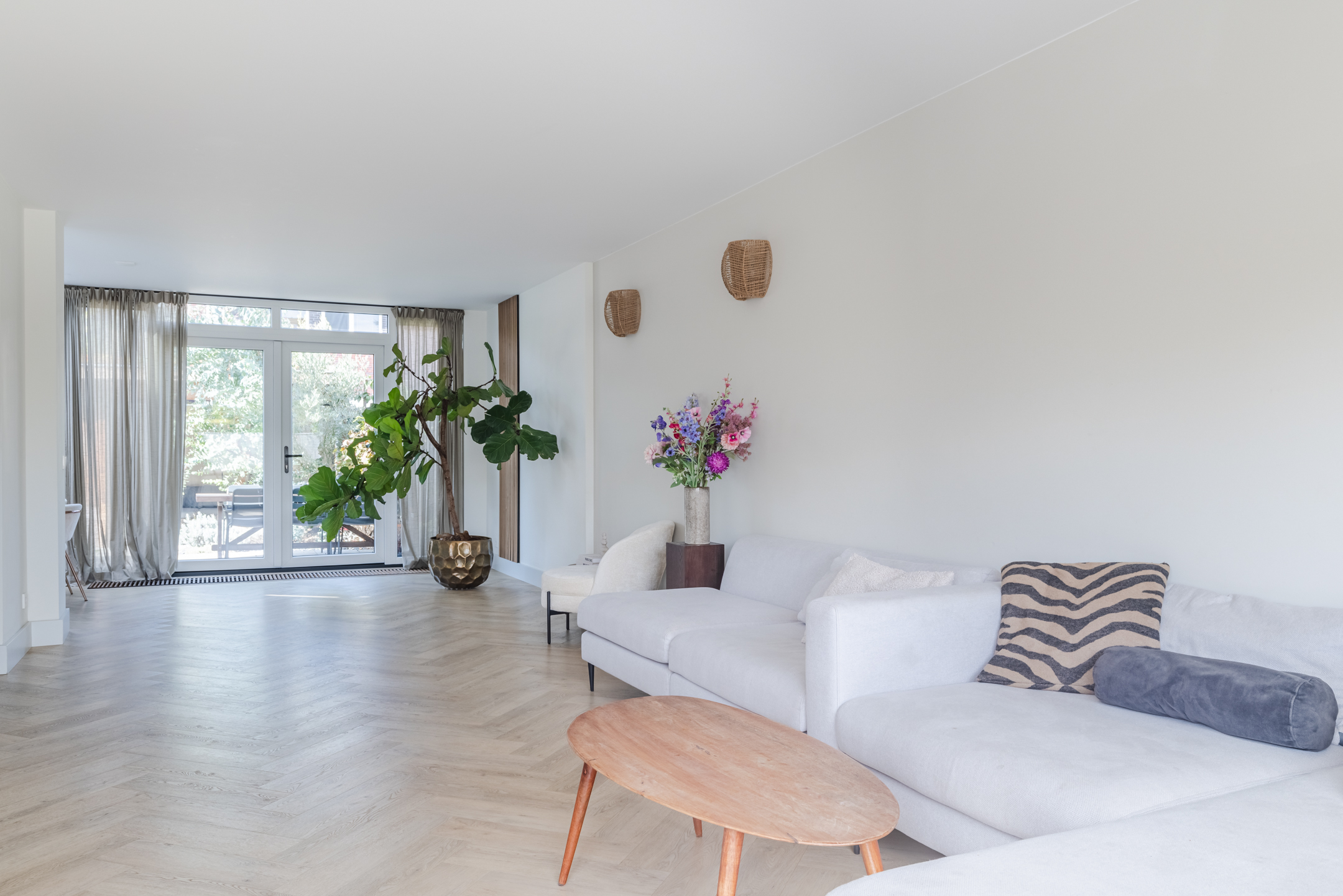 Mede dankzij de erker aan de voorzijde en de grote raampartijen geniet je in de woonkamer van een prettige lichtinval.