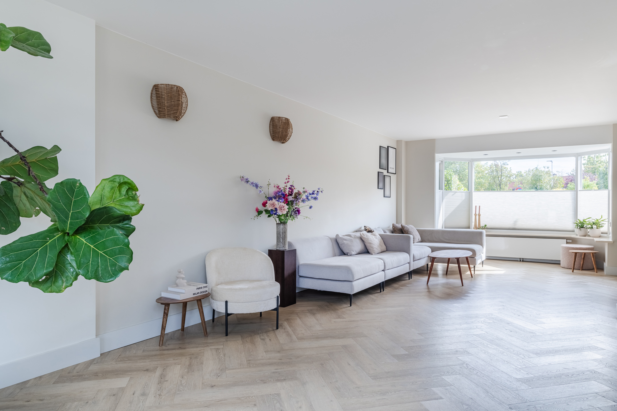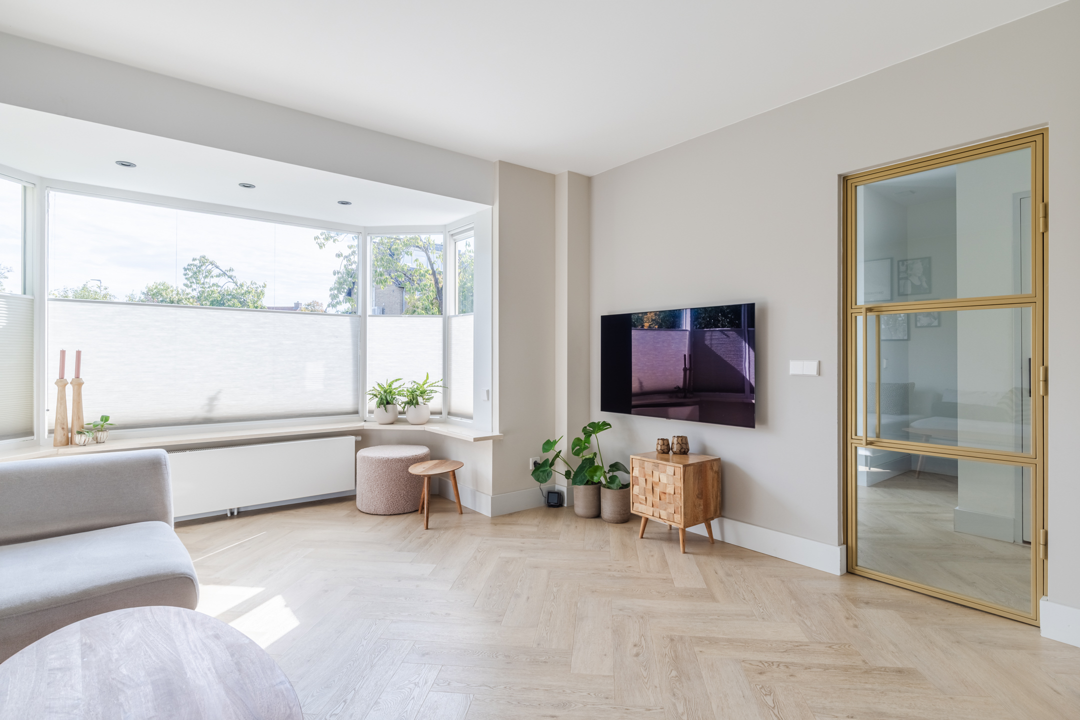 •Lichte en ruimtelijke woonkamer met erker;