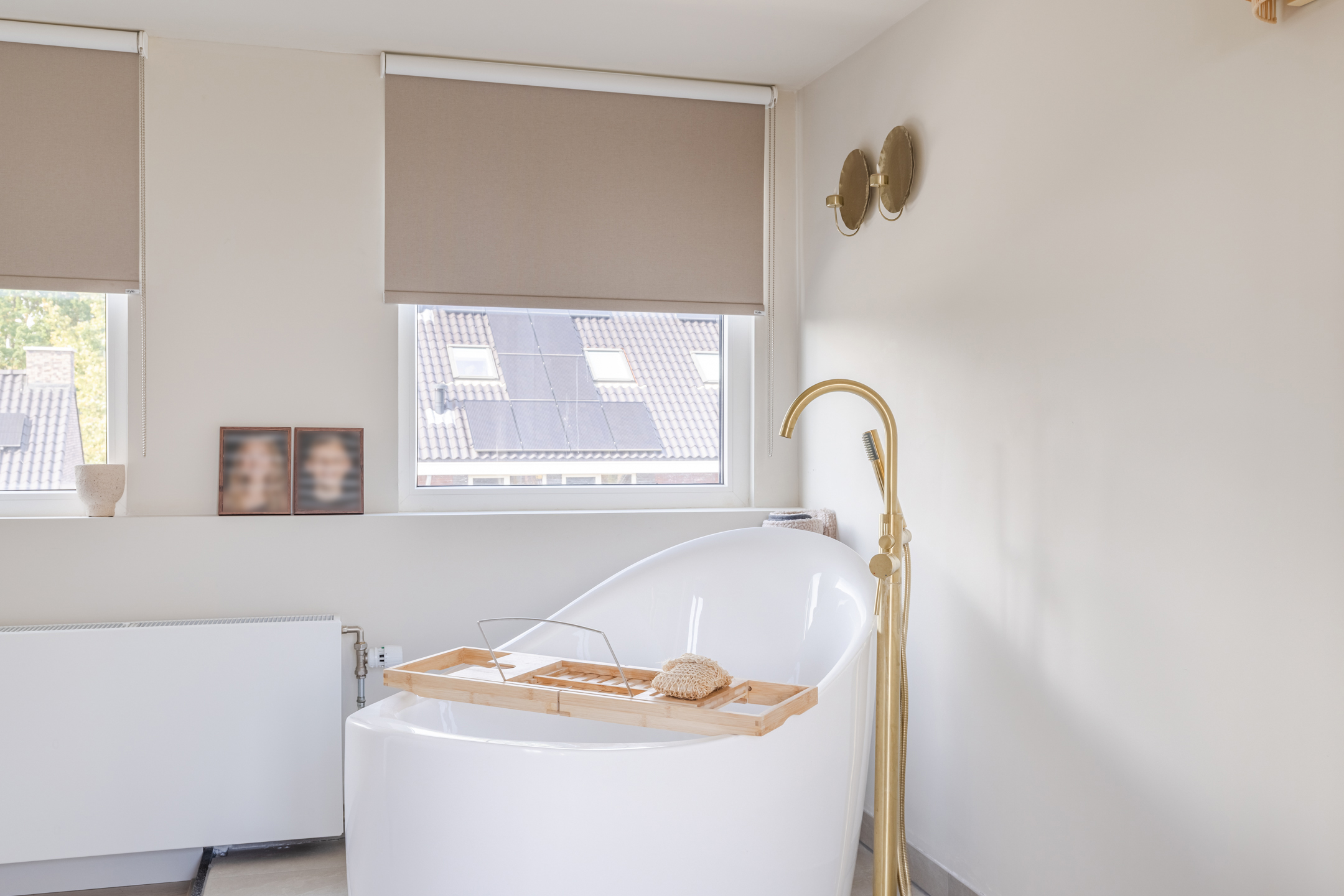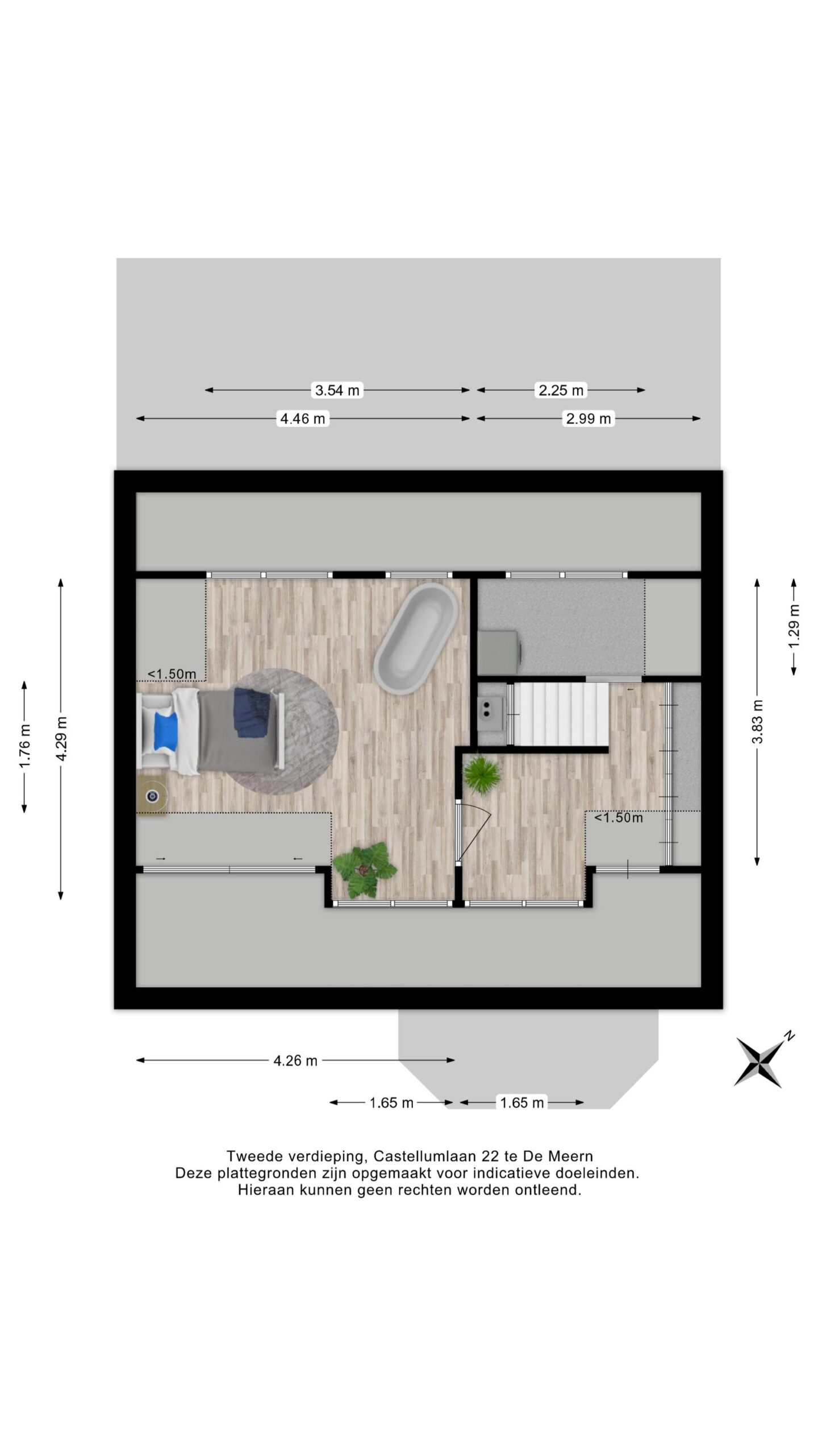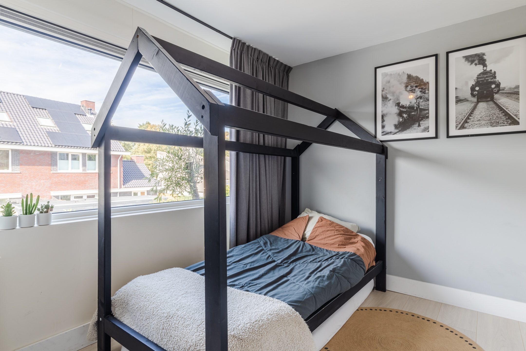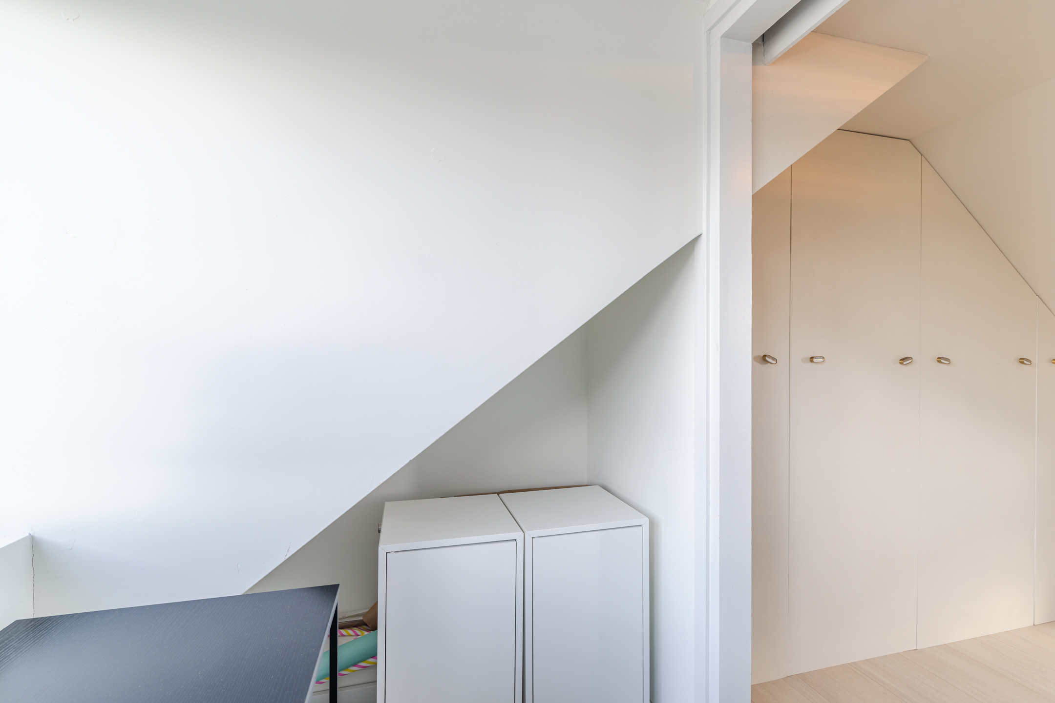 De slaapkamer is ruim en licht dankzij de dakkapellen aan beide zijden en beschikt over een vrijstaand bad, wat zorgt voor een bijzondere en luxe sfeer. De praktische kastenwand op de overloop en de knieschotten zorgen voor extra bergruimte.