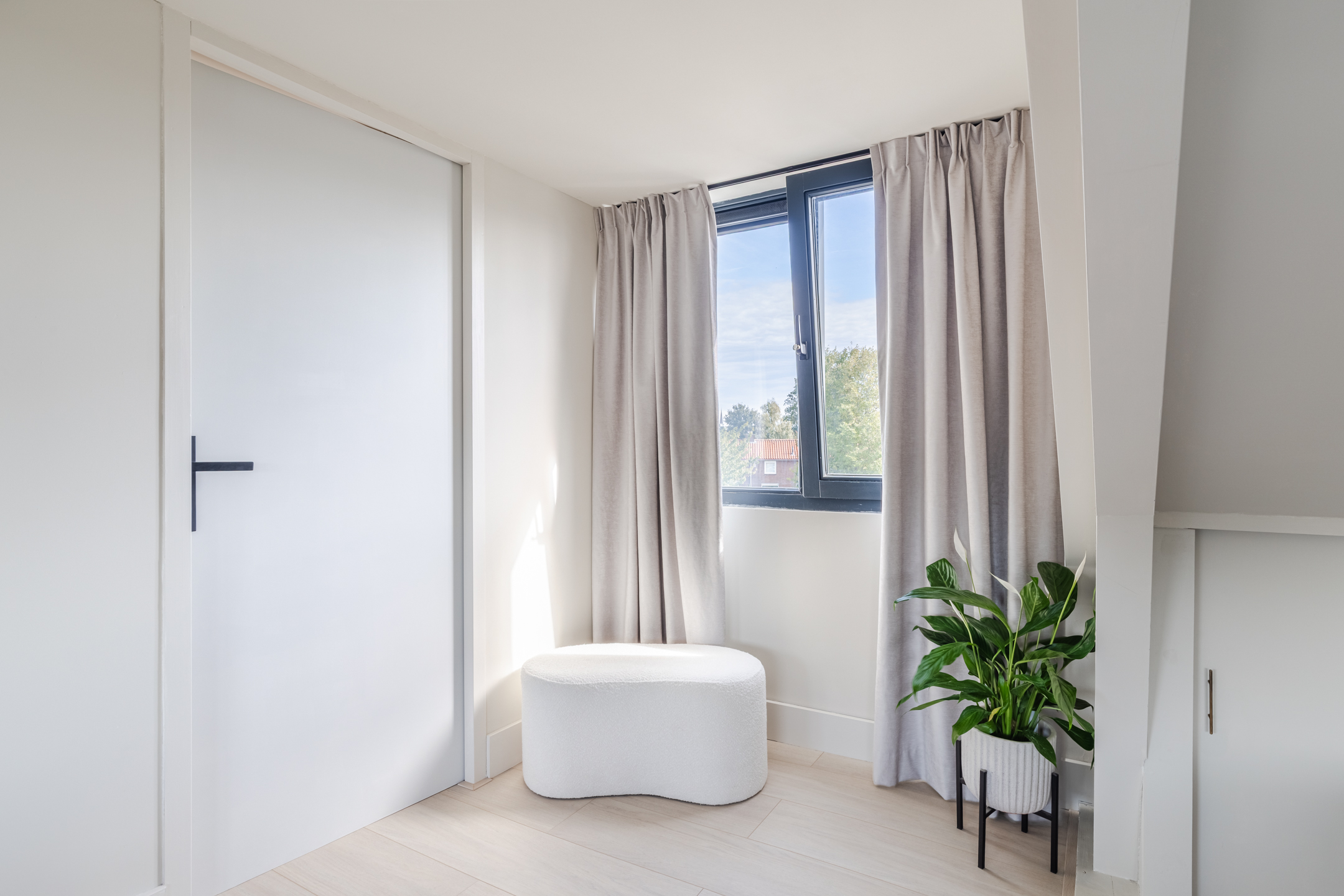 De gehele tweede verdieping is voorzien van een laminaatvloer en een lichte wand- en plafondafwerking.