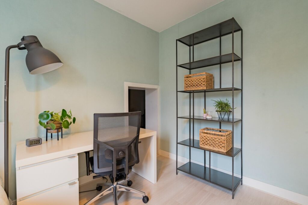 In het midden van de verdieping is een technische ruimte aanwezig waar onder andere de wasmachine-opstelling en het ventilatiesysteem te vinden is. Naast deze ruimte is een 2e badkamer gerealiseerd.