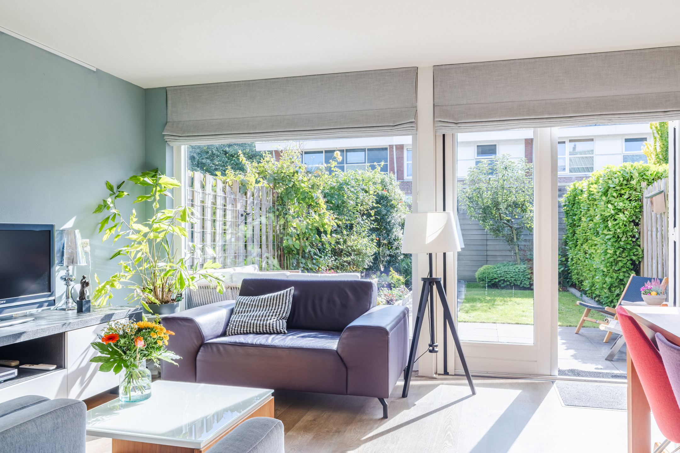 De zonnige, doorzon woonkamer (ca 4.75×5.11m) baadt in het licht, dankzij de gunstige zonligging op het zuiden. De grote, openslaande deuren geven toegang tot de tuin, waardoor binnen en buiten vloeiend in elkaar overgaan op zomerse dagen. De tuingerichte zithoek is sfeervol en er blijft nog voldoende ruimte over voor het plaatsen van een eettafel om lekker te tafelen met vrienden en familie.