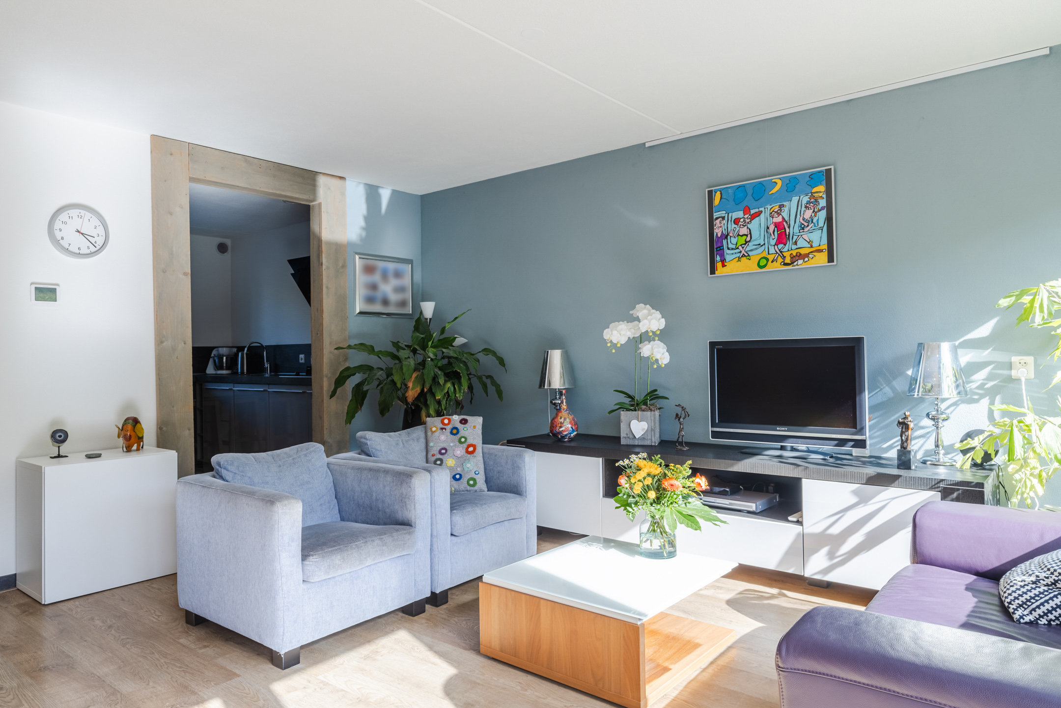 De woonkamer is uitgevoerd in een nette laminaatvloer en beschikt over vloerverwarming.