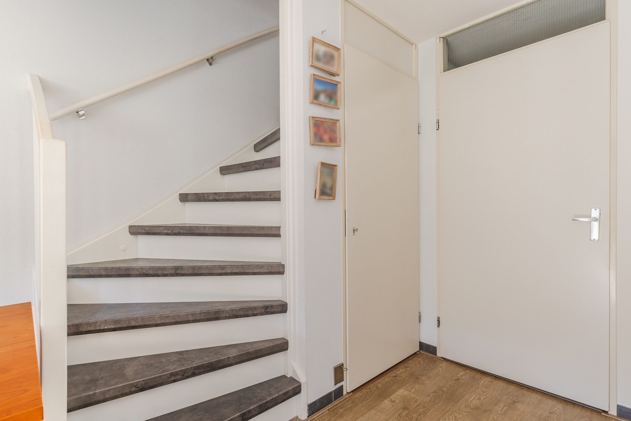 In de woonkamer bevindt zich de trap naar de eerste verdieping, welke bovenaan afgesloten kan worden door een deur. Hierdoor verlies je geen warmte en hebben slapende kinderen geen last van de geluiden beneden.