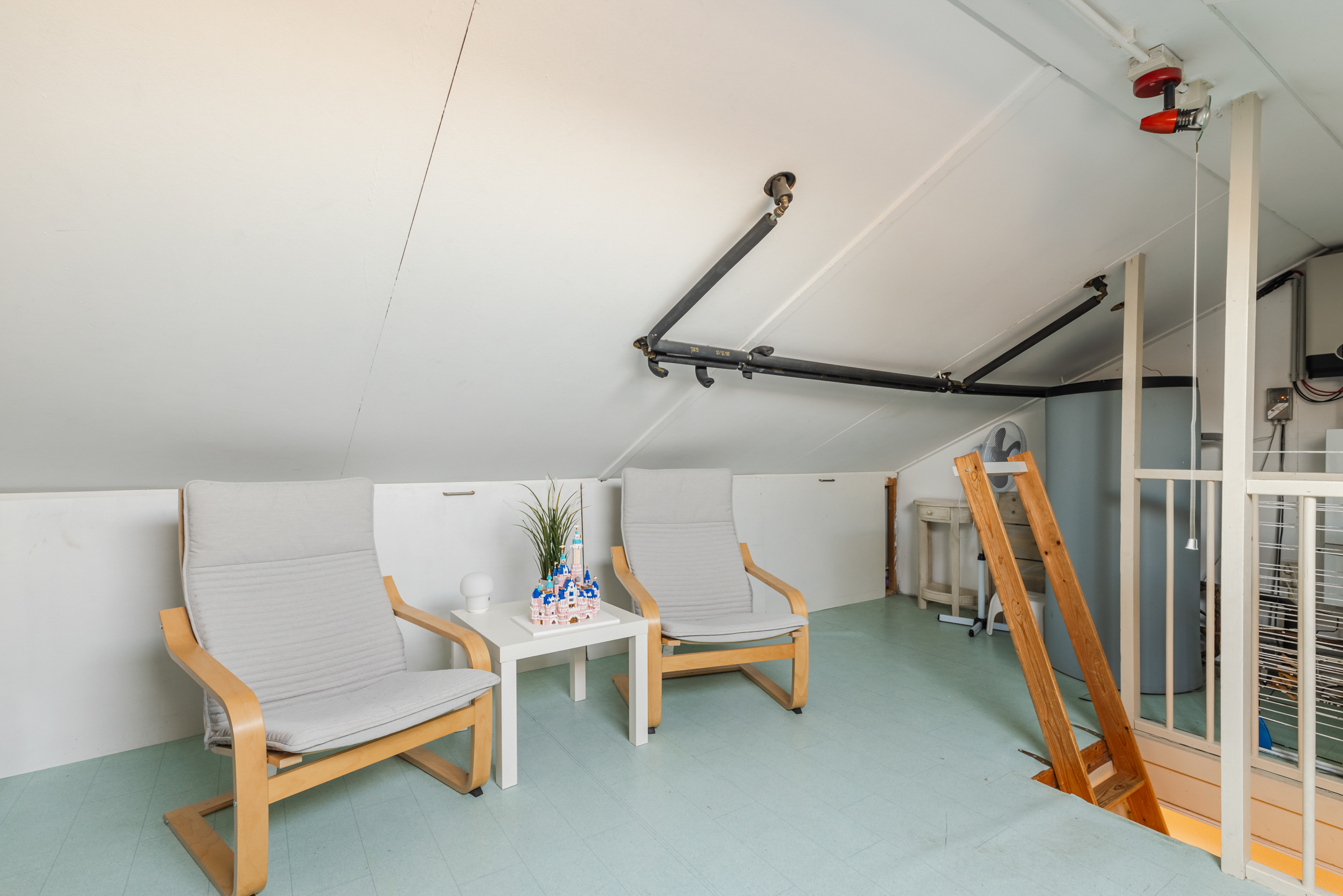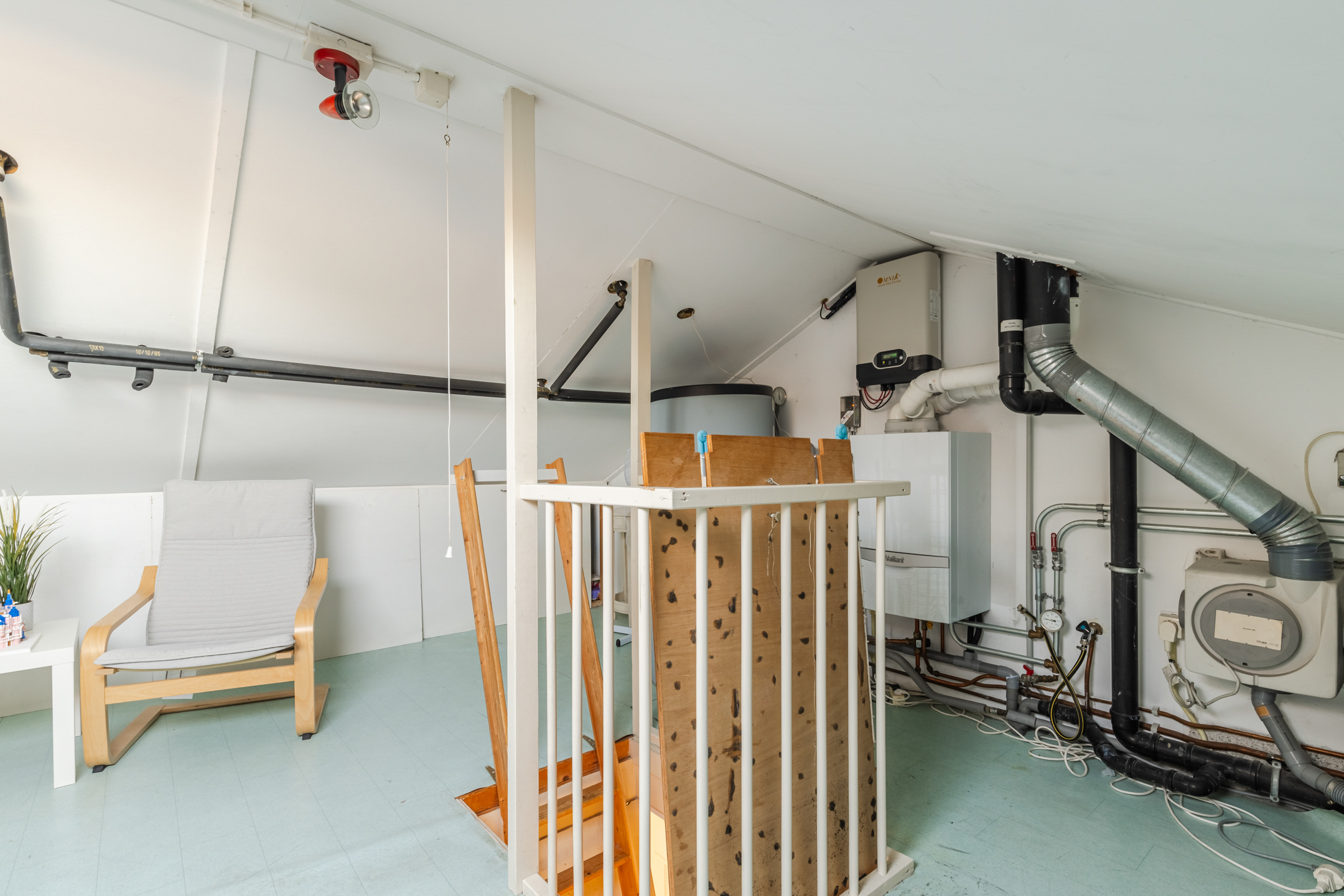 Indien gewenst zou je kunnen overwegen om een vaste trap te plaatsen alsmede een dakkapel (net zoals bij enkele huizen verderop in de straat). Zo verbeter je de toegankelijkheid van deze woonlaag en voeg je ook nog eens een substantieel aantal m2 toe aan de totale woonoppervlakte.
