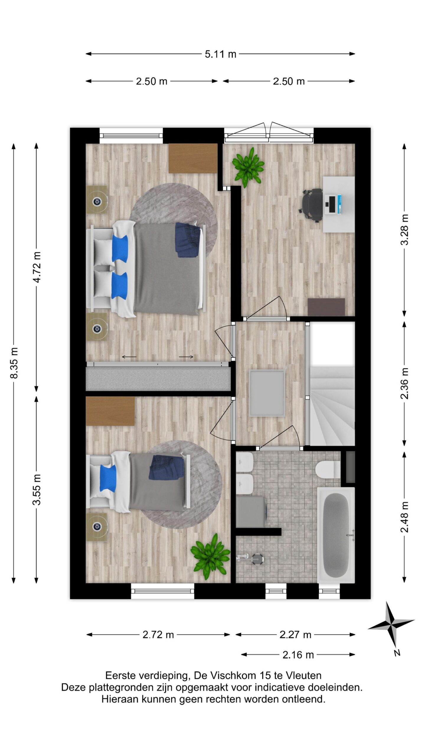 De masterbedroom (ca. 2.72×3.55m) is ruim en beschikt over een ingebouwde, muur vullende garderobekast.