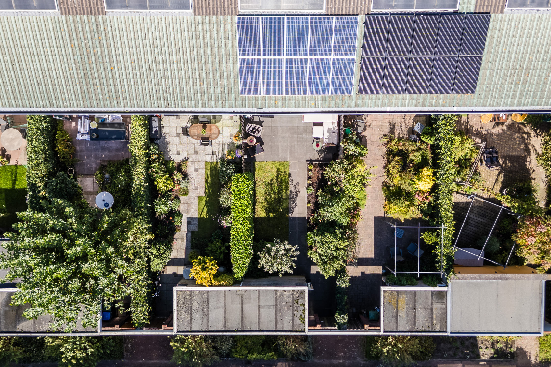 De fijne, groene tuin met achterom op het zuiden is heerlijk groot (ca. 11.98×5.30m). Vanaf de ochtend tot aan de avond is het hier genieten van de zon. Wat een heerlijke plek voor een borrel op de loungeset of een lekkere BBQ met vrienden tijdens de lange zomeravonden. Achterin de tuin staat een houten berging voor het stallen van fietsen en ander spullen.