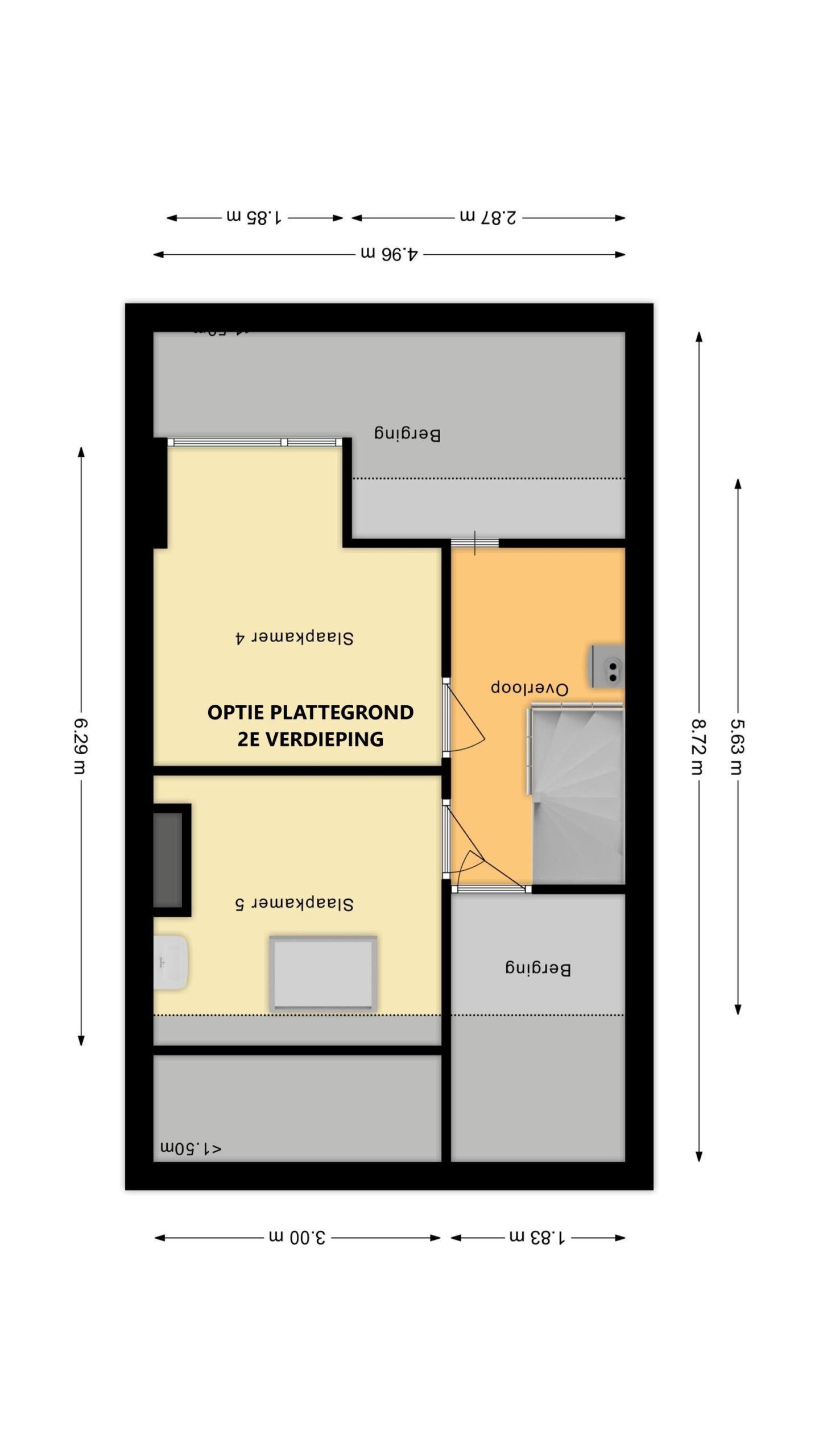 De tweede verdieping biedt volop mogelijkheden om geheel naar eigen wens in te richten. Hier bevind zich de vierde slaapkamer, die met een royale oppervlakte ruimte biedt voor een comfortabele slaapkamer. Het is ook mogelijk om de slaapkamer te splitsen tot twee slaapkamers waardoor deze fijne gezinswoning voorzien kan worden van maar liefst 5 slaapkamers.