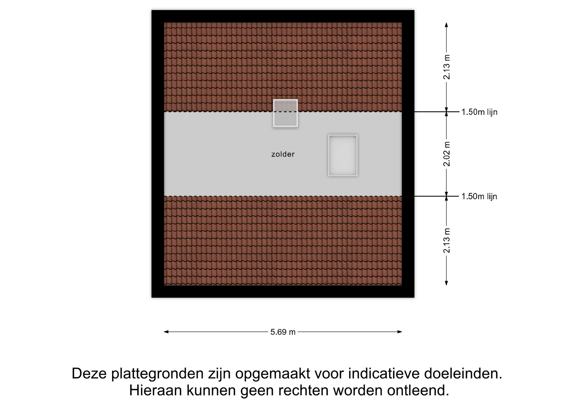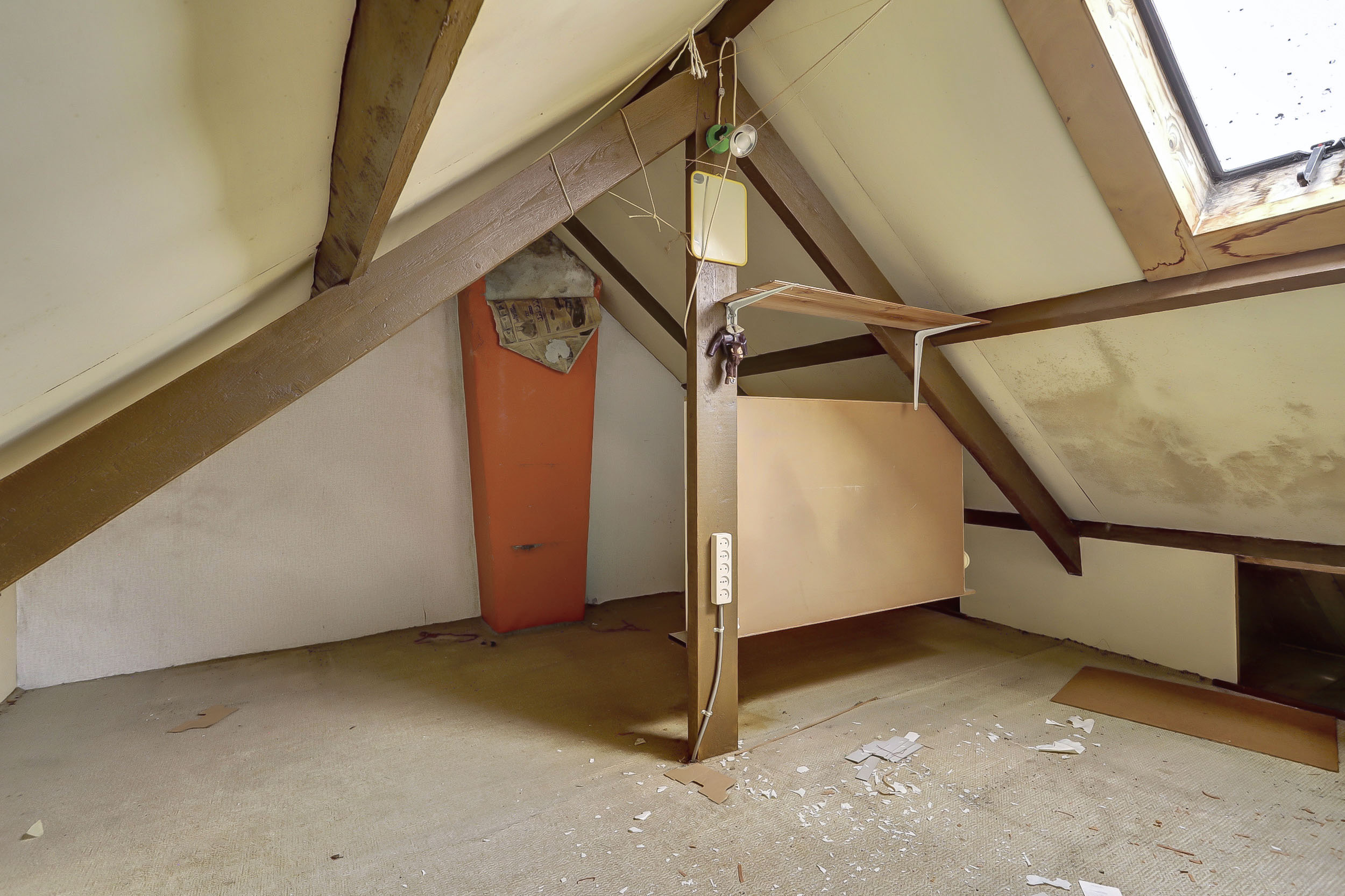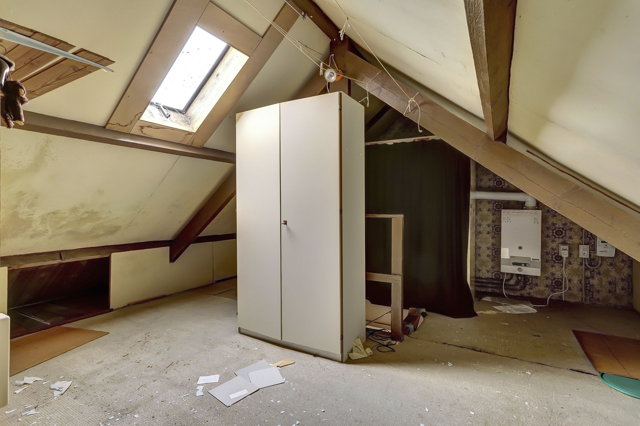 De zolder is bereikbaar via een vlizo trap. Ondanks dat deze ruimte niet is meegenomen in het totale woonoppervlak vanwege het ontbreken van een vaste trap en een groter dakraam (volgens de NEN2580 norm moet dit aanwezig zijn om meegerekend te kunnen worden als officiële woonoppervlakte), biedt de zolder met een oppervlakte van ca. 12 m² veel mogelijkheden om woonoppervlakte toe te voegen.