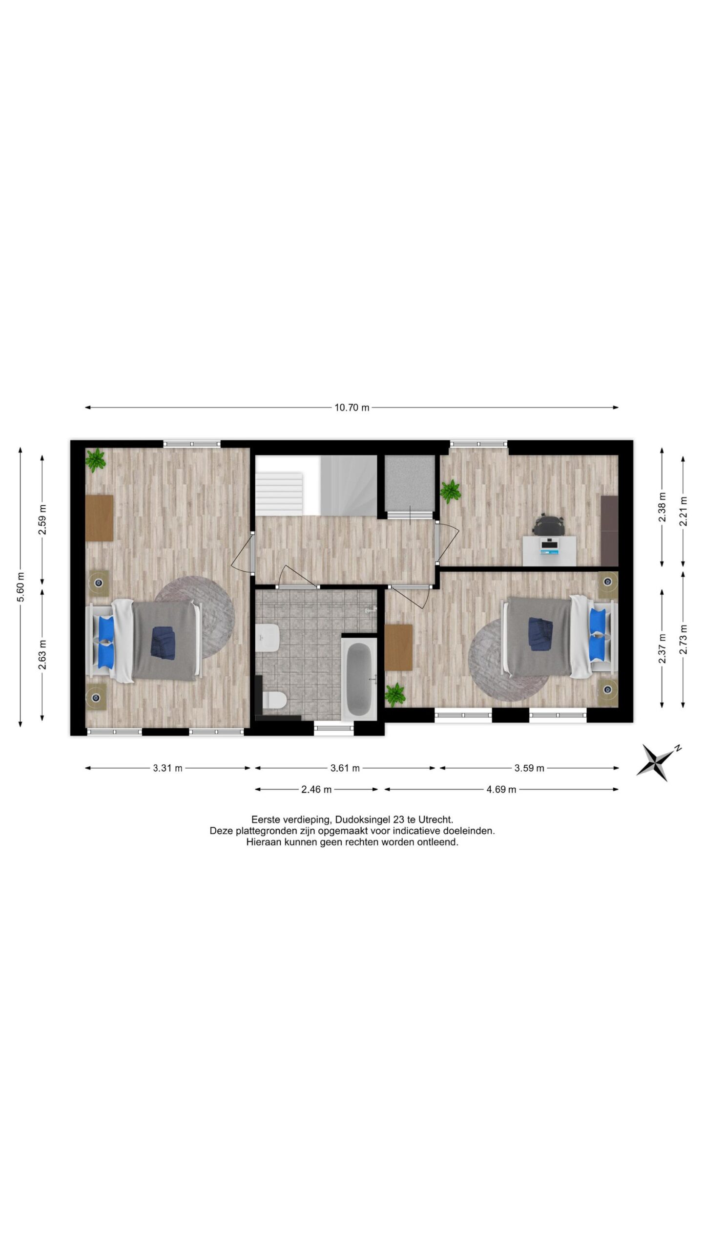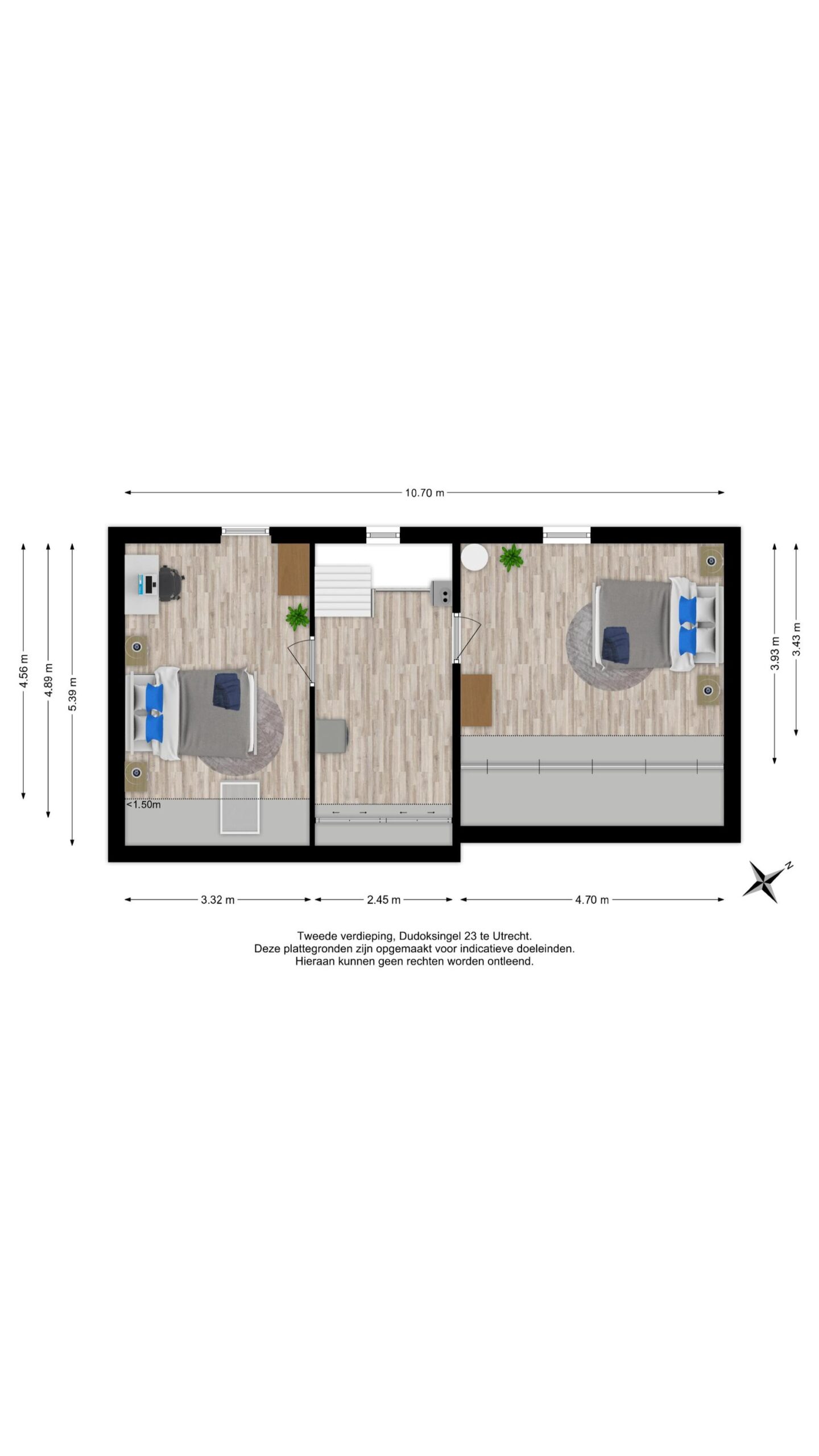 De slaapkamer aan de linkerkant (ca. 3.93 x 4.70 m) beschikt over openslaand raam en uitzicht op de achtertuin. De laatste slaapkamer (ca. 4.89 x 3.32 m) is voorzien van een Velux-dakraam aan de voorzijde en openslaand raam aan de achterzijde! In deze slaapkamer zit een handige aansluiting voor een wastafel met koudwaterkraan. De kamers zijn perfect in te richten als slaap-, werk-, of sportkamer!