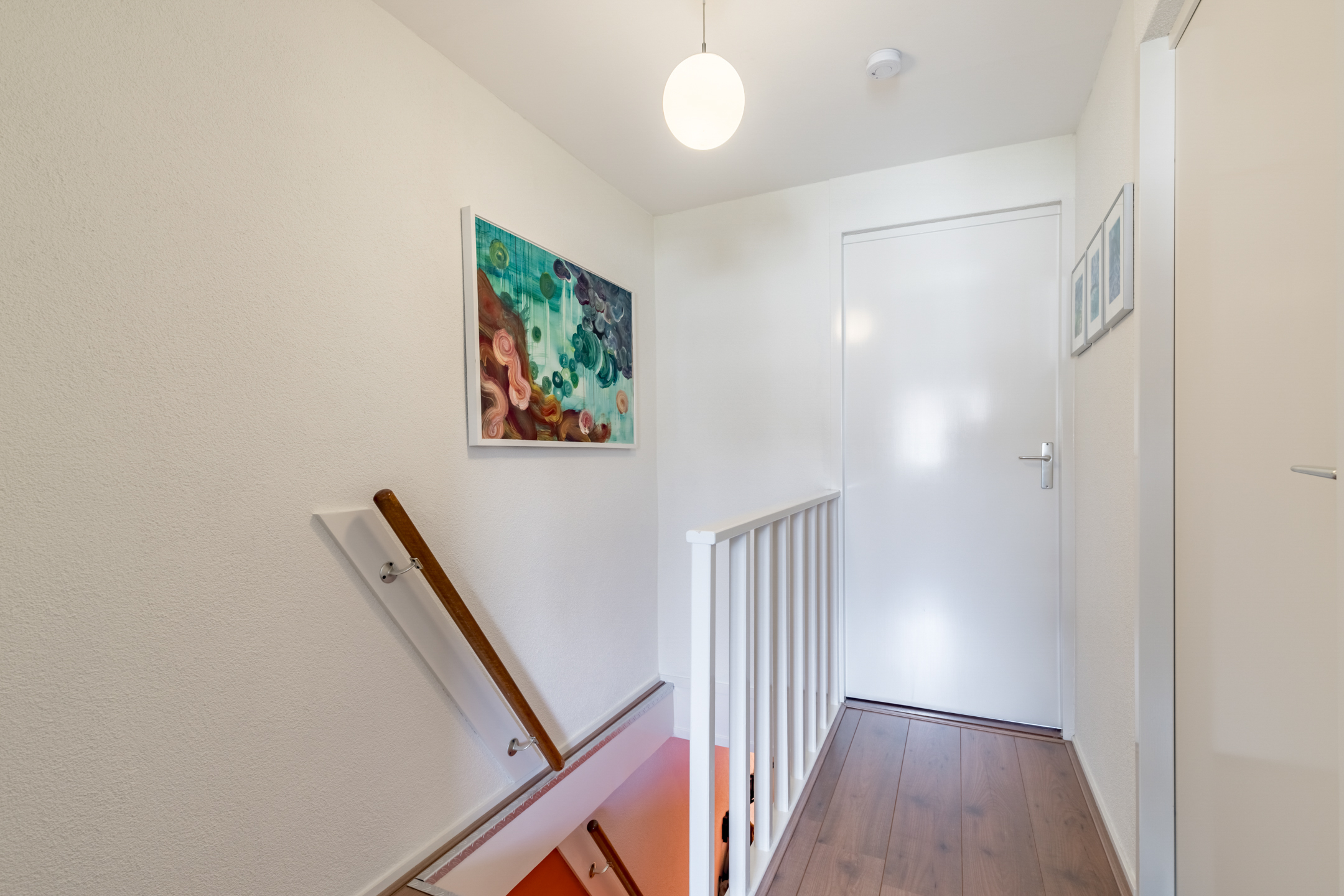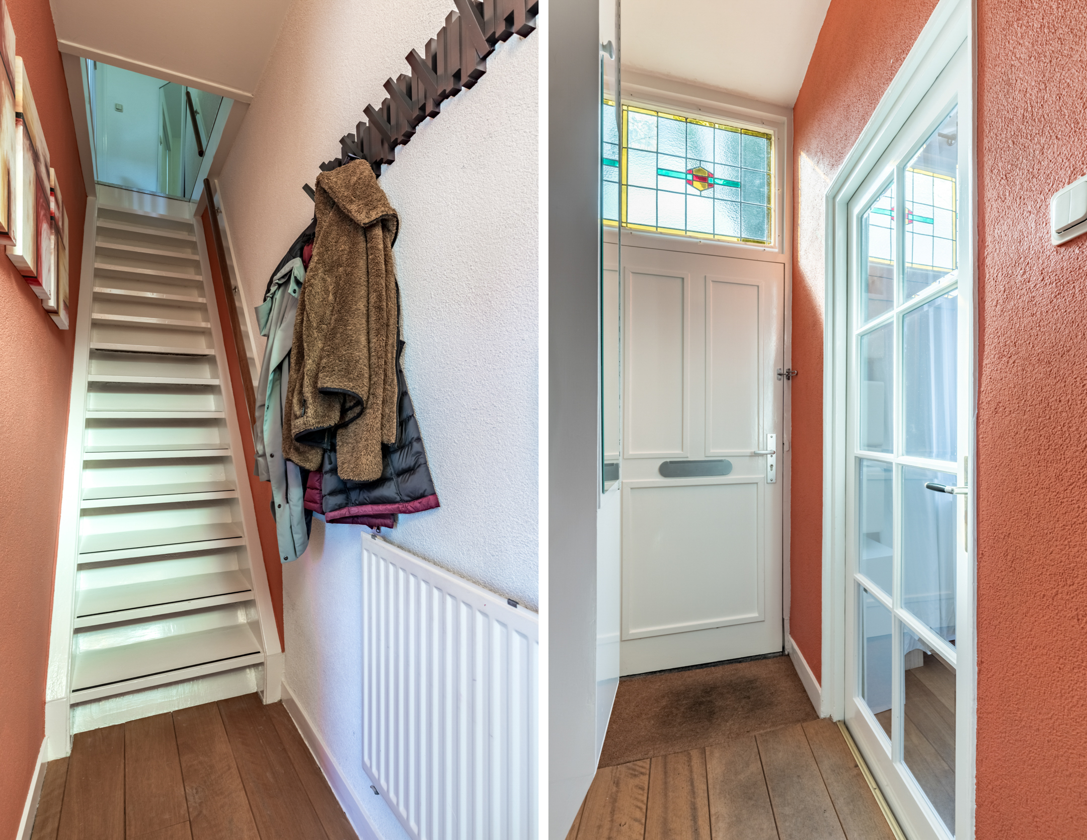 Entree, met trap naar de eerste verdieping en deur naar de woonkamer.