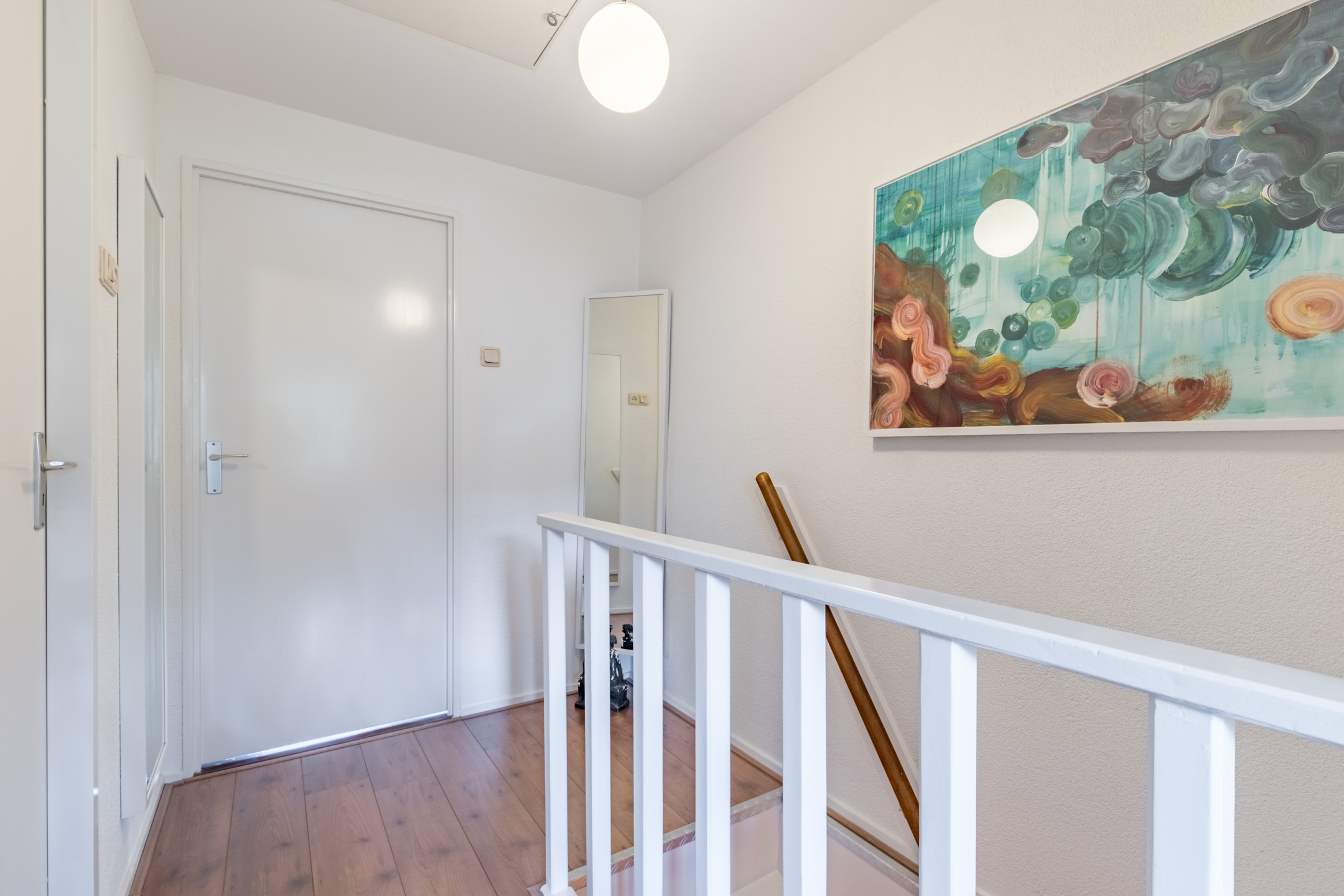 Middels de vaste trap bereik je de eerste verdieping en kom je uit op de overloop. Vanuit hier heb je toegang tot de twee (slaap)kamers en de badkamer. Tevens bevindt zich hier de vlizotrap naar de bergvliering.