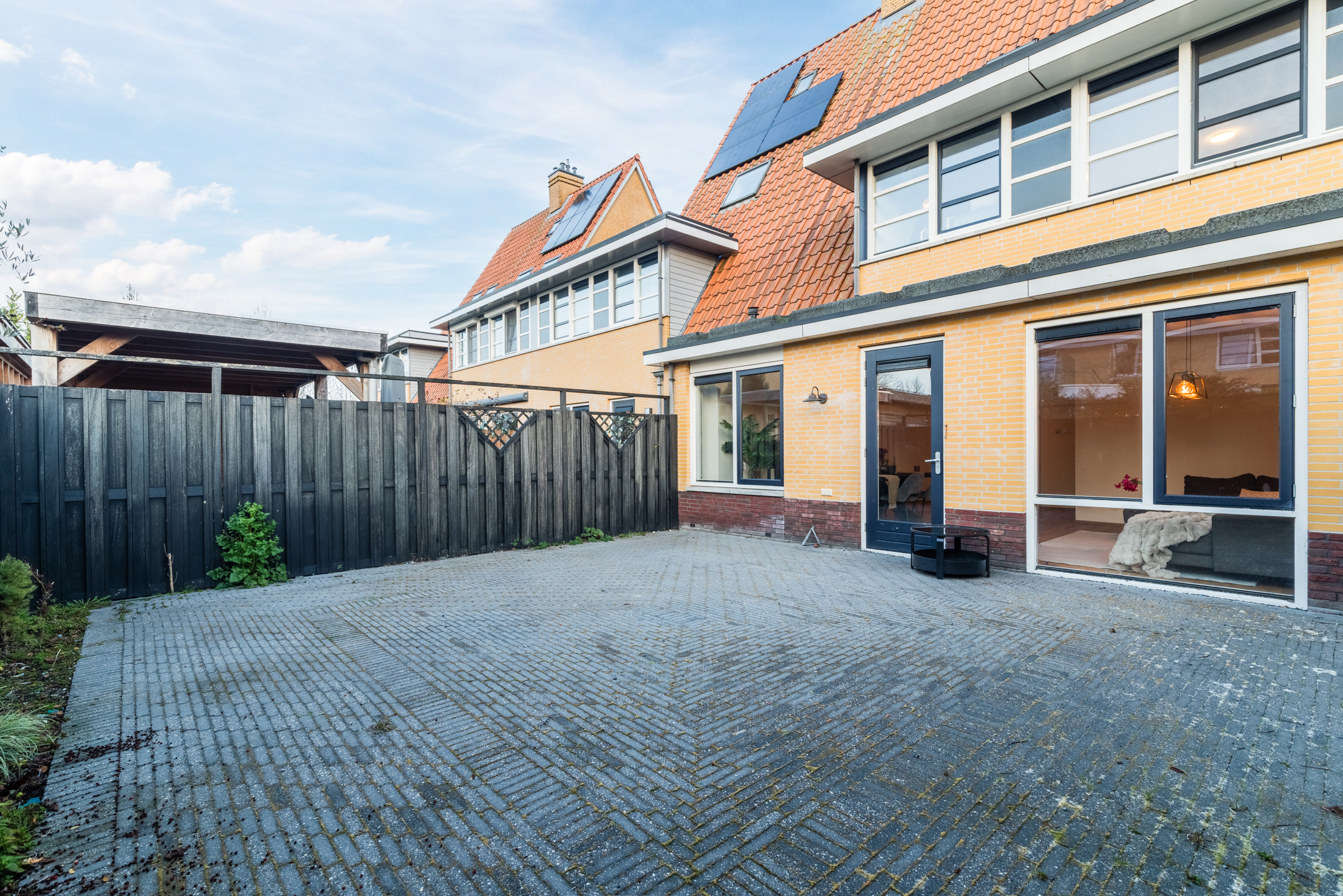 De tuin is onderhoudsvriendelijk aangelegd, volledig betegeld en voorzien van een houten erfafscheiding. Een ontzettend fijne plek om in alle rust buiten te zitten en te genieten van de zon.