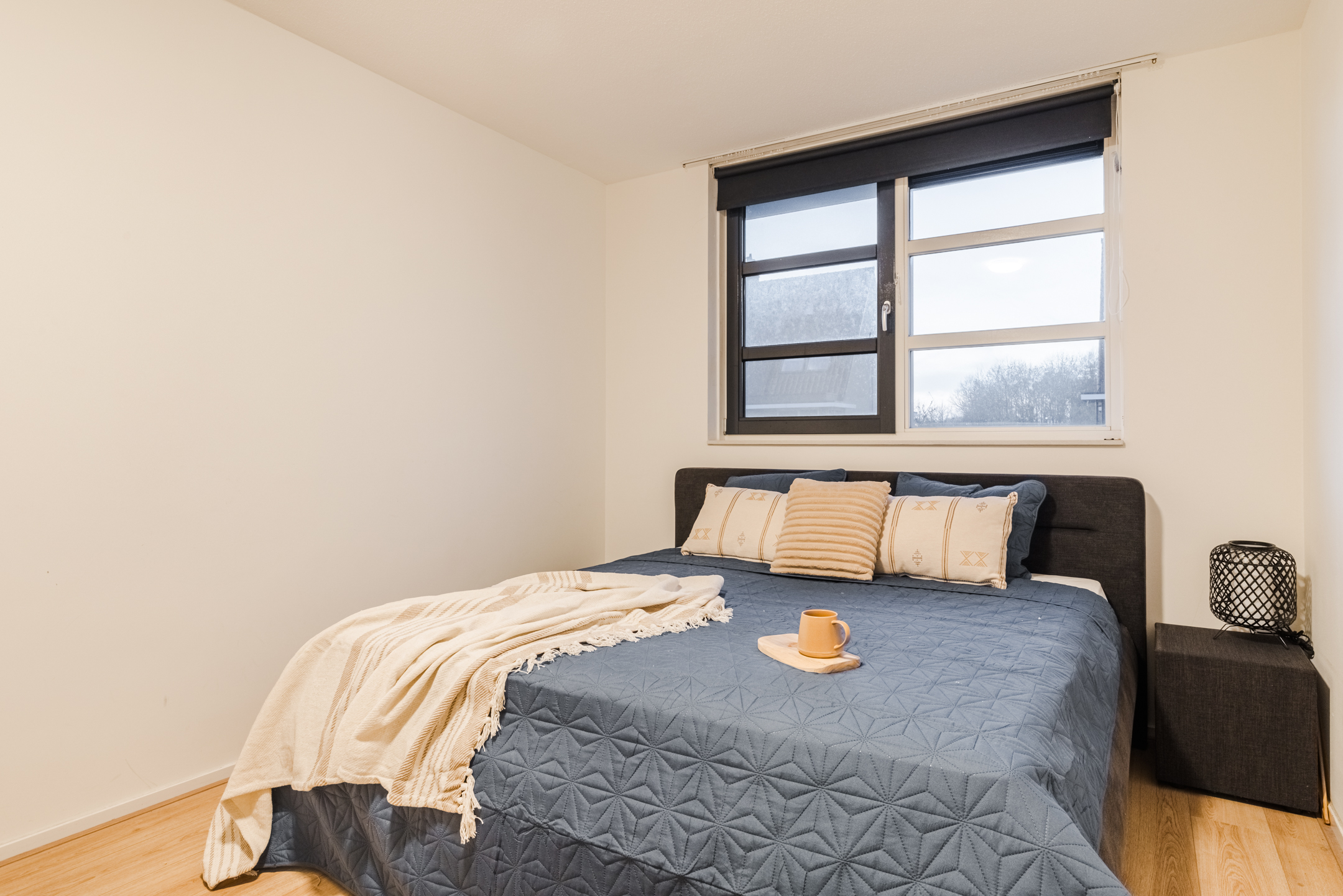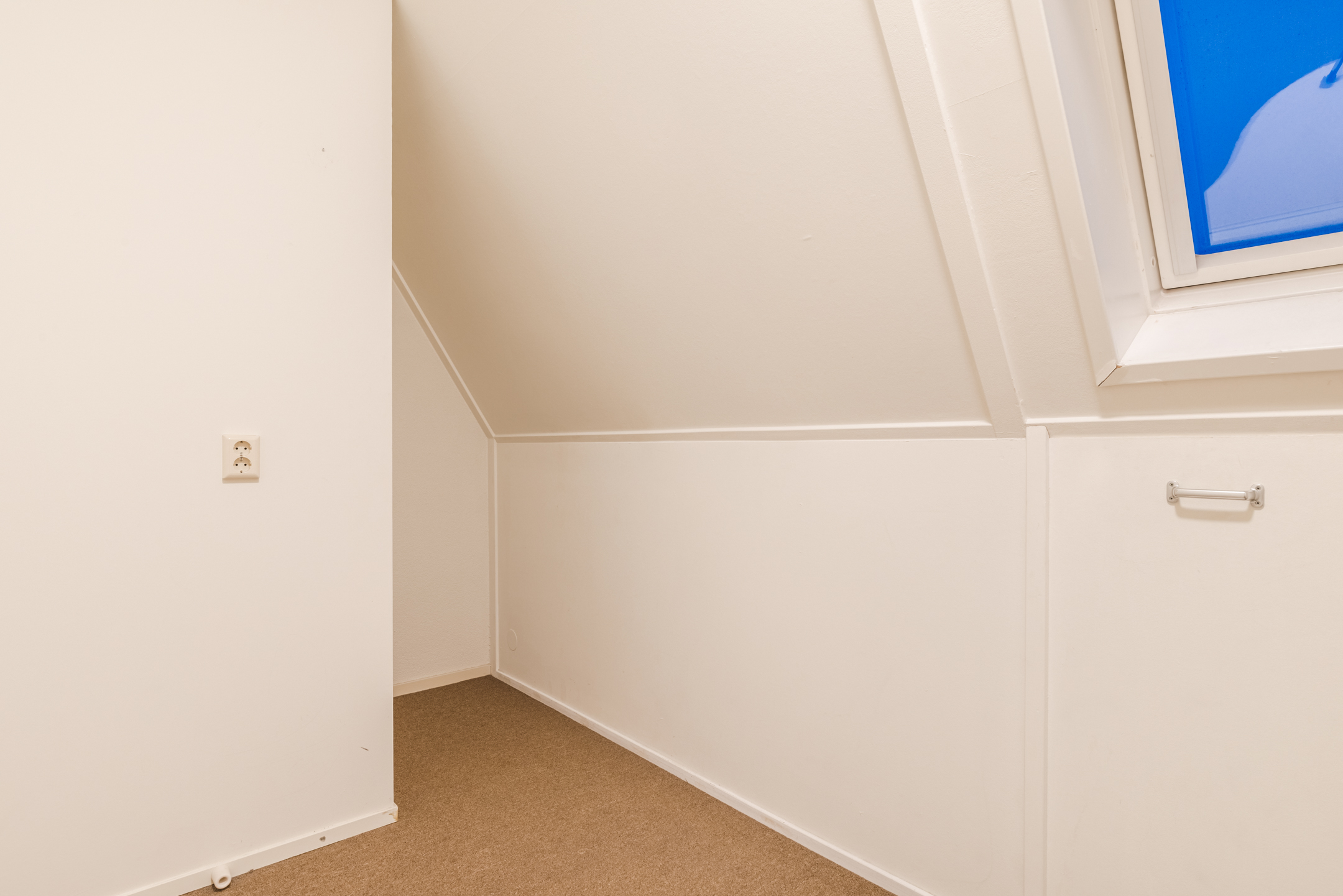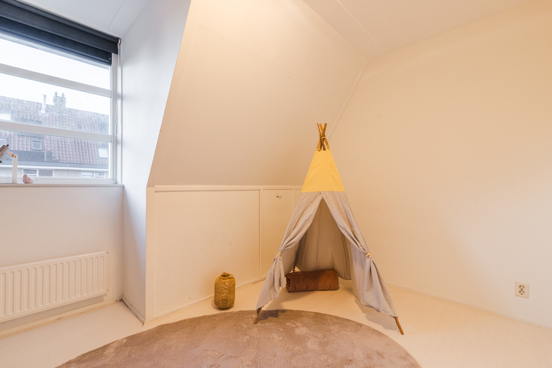Beide slaapkamers zijn voorzien van een groot dakraam en praktische knieschotten, ideaal voor het opbergen van spullen die je niet dagelijks nodig hebt.