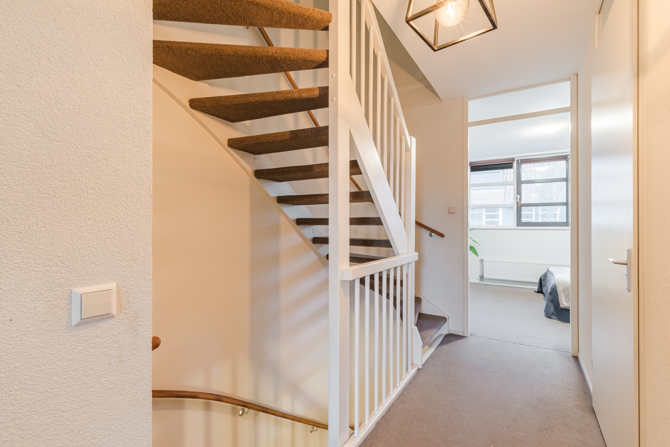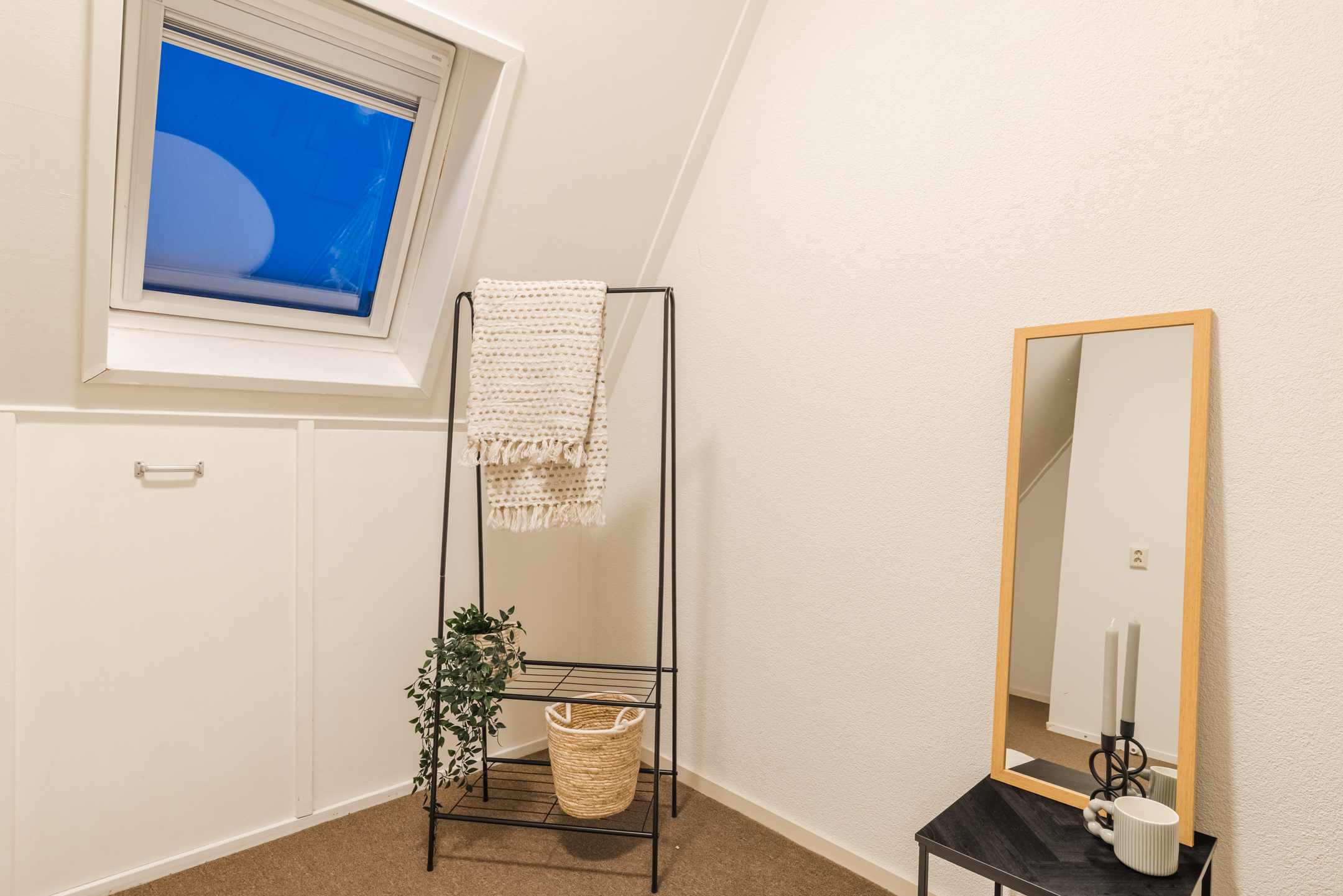 Ook deze verdieping is afgewerkt met een laminaatvloer, tapijtvloer en een nette wand- en plafondafwerking.