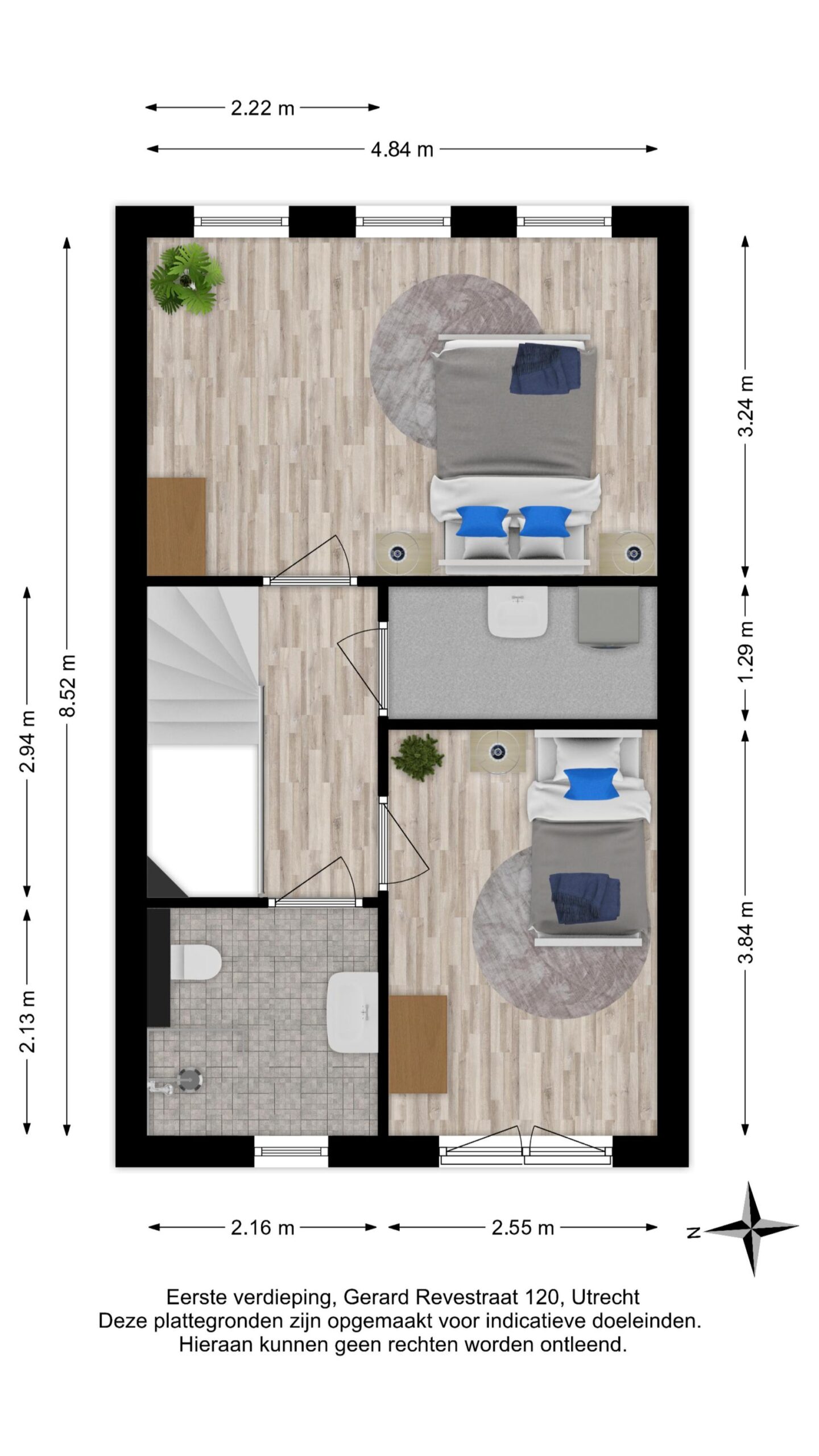 Op deze ruime en lichte verdieping zijn twee volwaardige en multifunctionele (slaap)kamers, een aparte wasruimte en de badkamer gesitueerd.