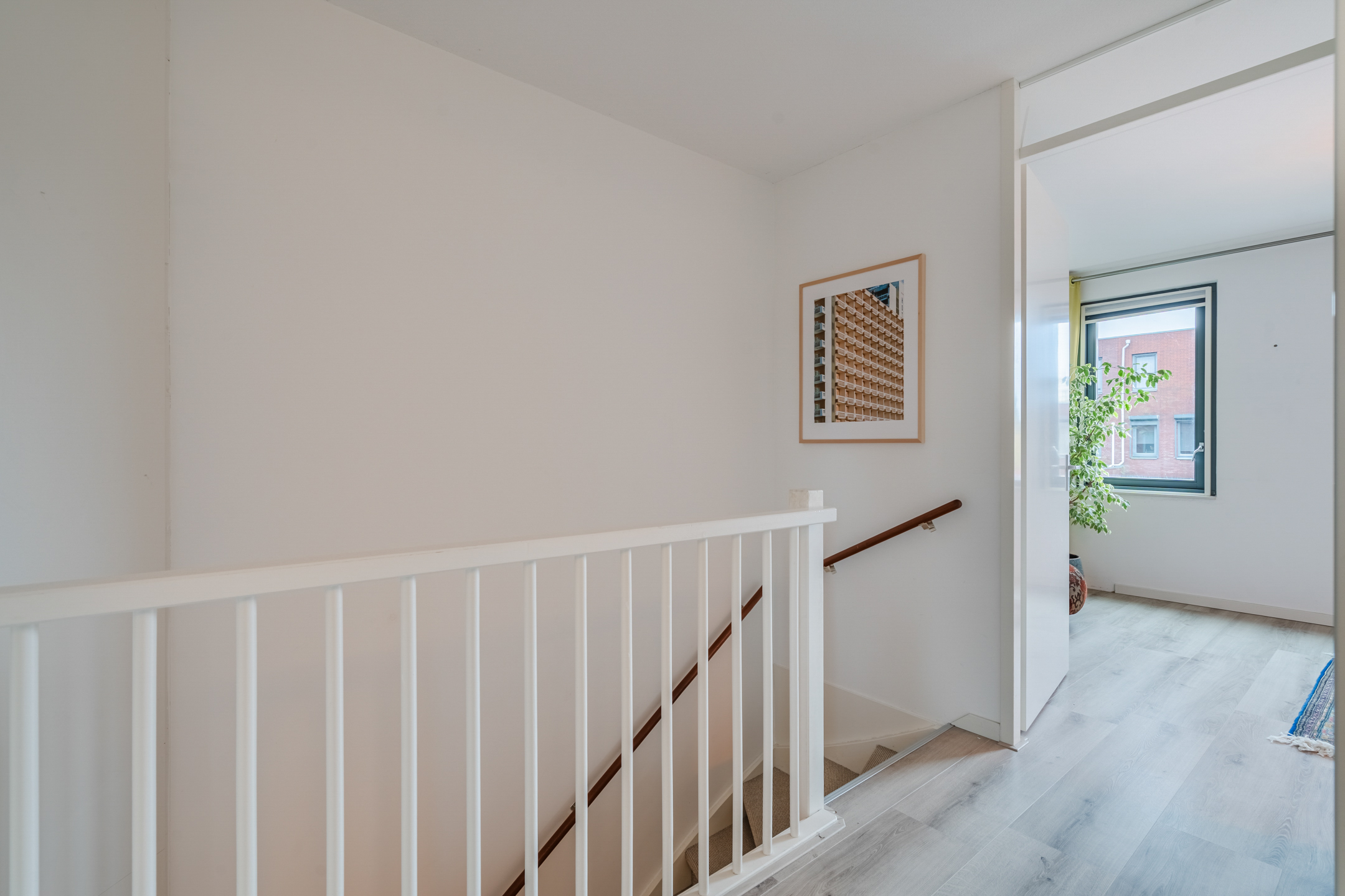 De eerste verdieping is voorzien van een lichte laminaatvloer en strakke wand-/ en plafondafwerking.