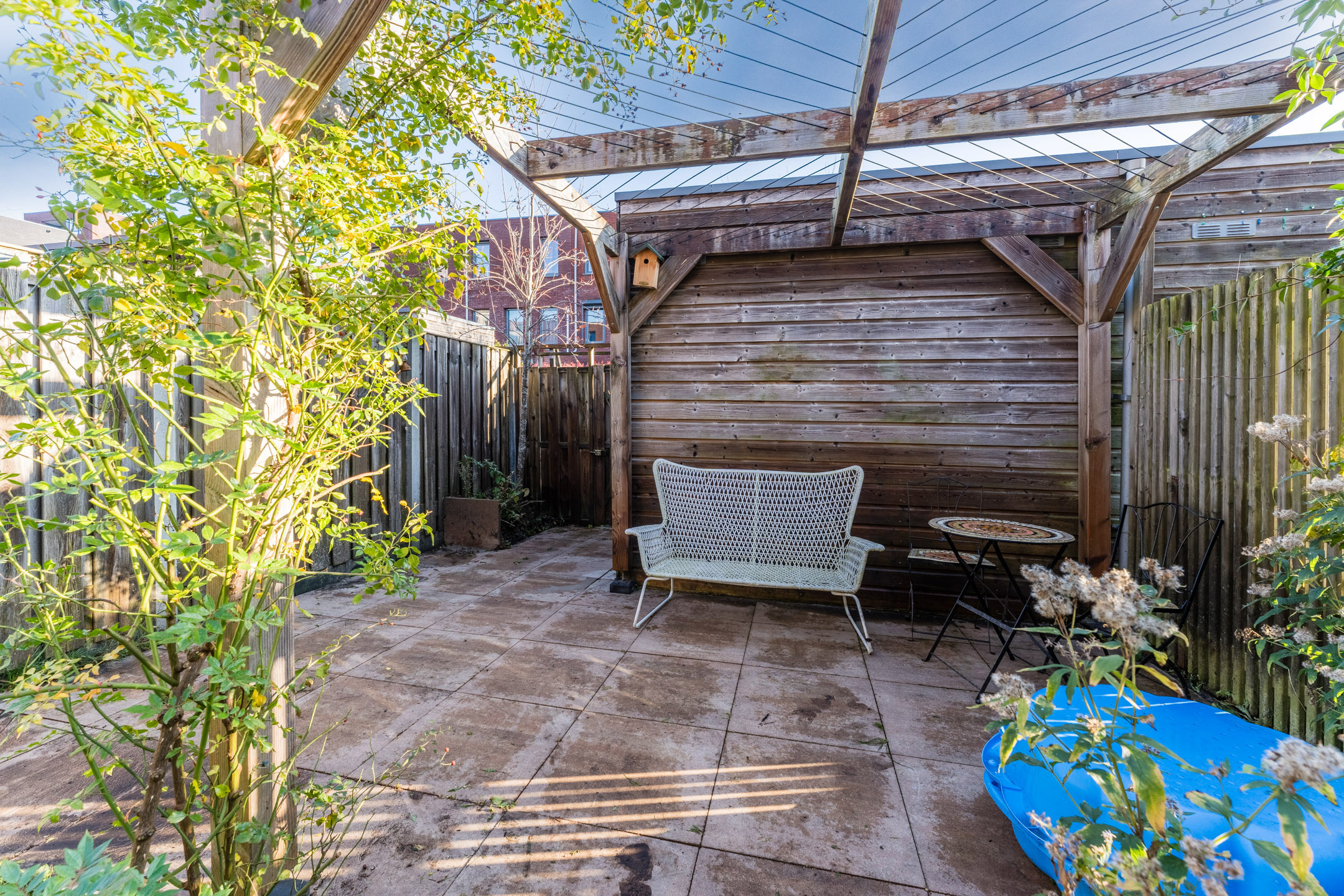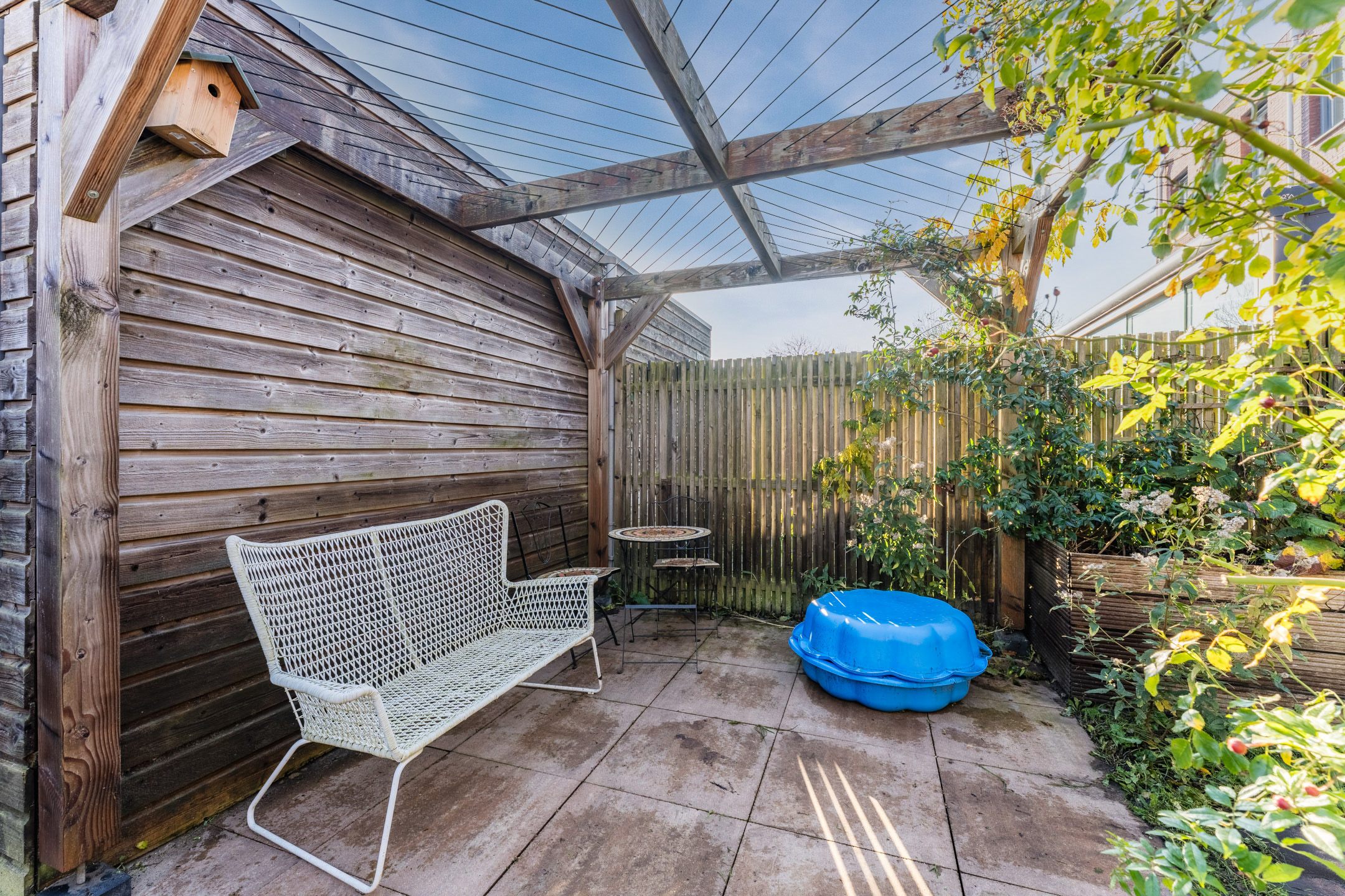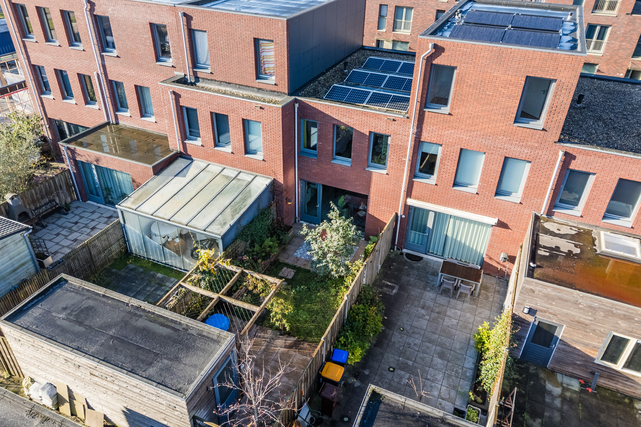 Middels de tuindeur bereik je de gezellig, professioneel, aangelegde en groene achtertuin. Deze heerlijke buitenruimte is gelegen op het oosten, maar dankzij de lengte van ruim 11 (!) meter is er altijd wel een plekje in de zon te vinden! Zelfs met een eventuele uitbouw aan de achterzijde houd je voor ‘Leidsche Rijnse begrippen’ een ruime tuin over.