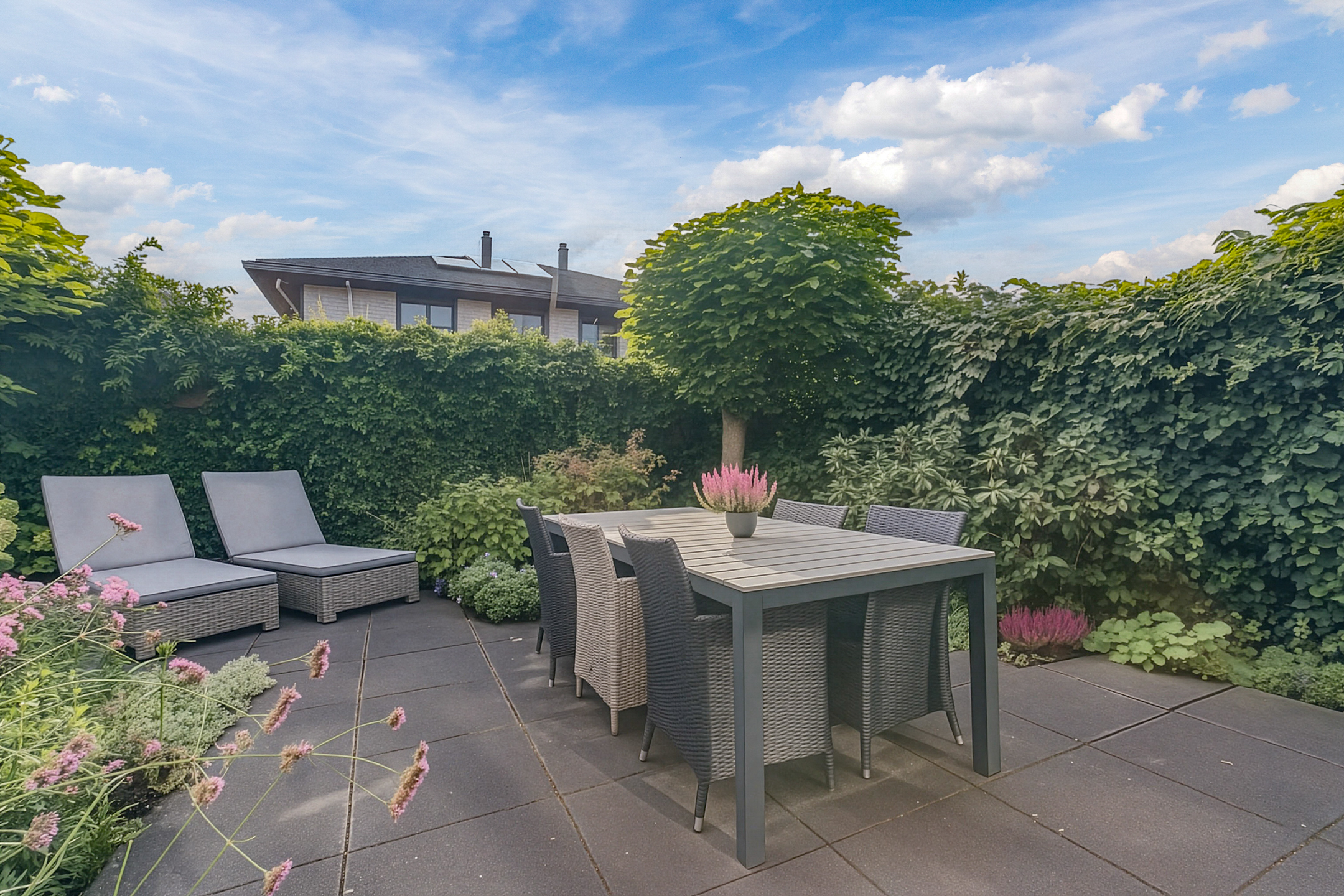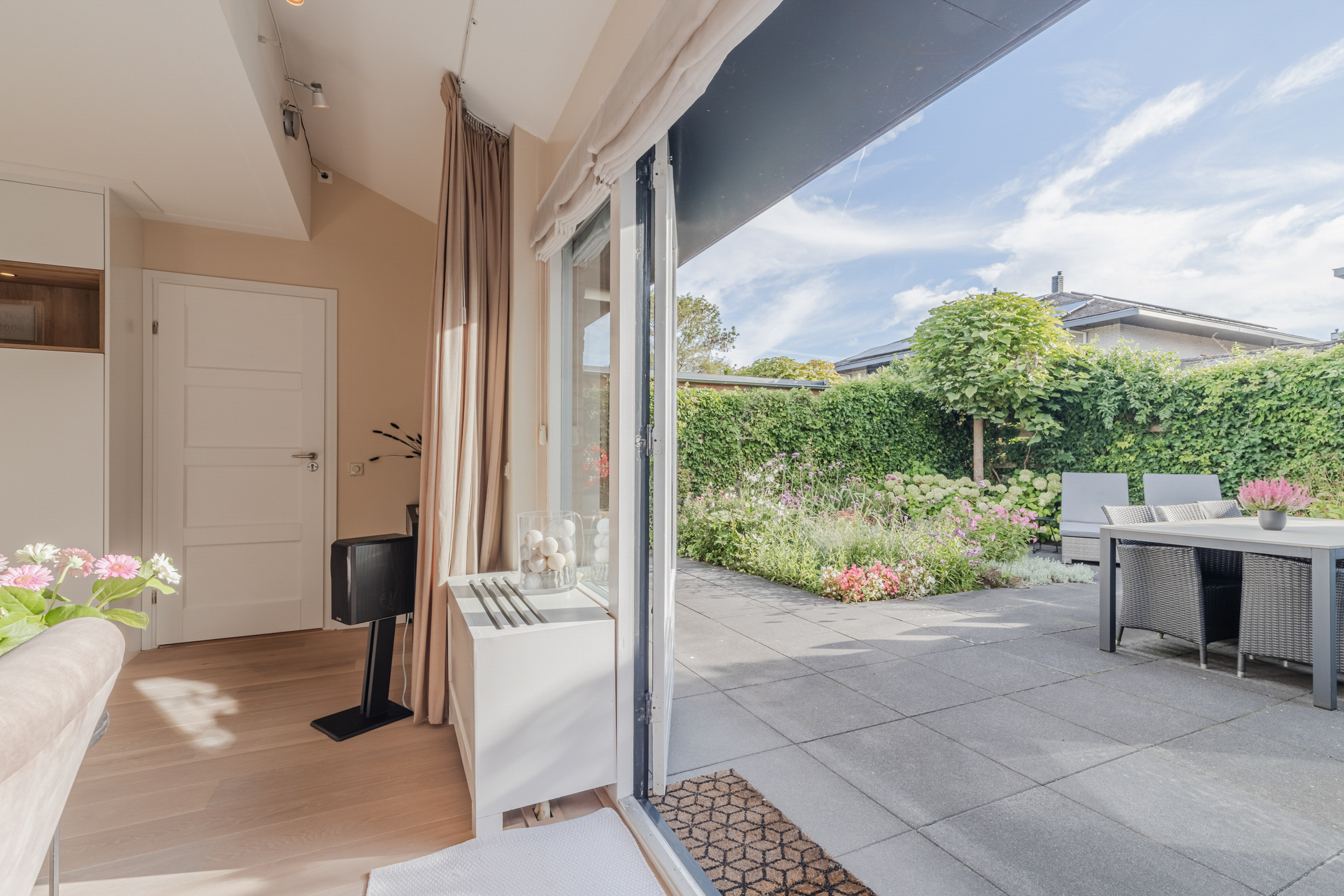 Other key features include the bright garden-facing living room (35.5 m²) with a spacious and highly practical layout featuring a stylish built-in cabinet (installed in 2024), the large and fully equipped kitchen (approx. 17 m², renovated in 2012; Siemens oven, microwave, and Itho extractor hood replaced in 2019) with all desired built-in appliances, the lush and flower-rich southeast-facing back garden (approx. 79 m²) with several lovely terraces, the three multifunctional (bed)rooms on the first floor (approx. 5, 9 & 21 m² / previously 4 bedrooms), a sleek bathroom with heated design mirror, a spacious walk-in shower with a delightful Sunshower and bench, and plenty of storage space in the generous and practical attic.
