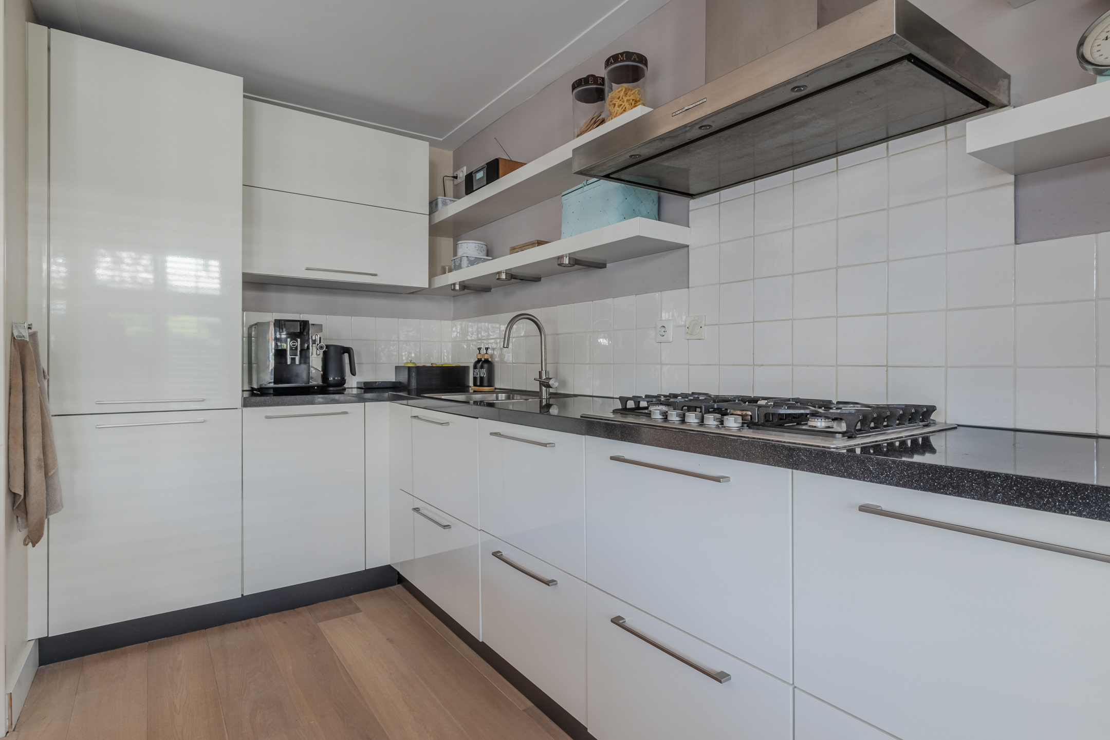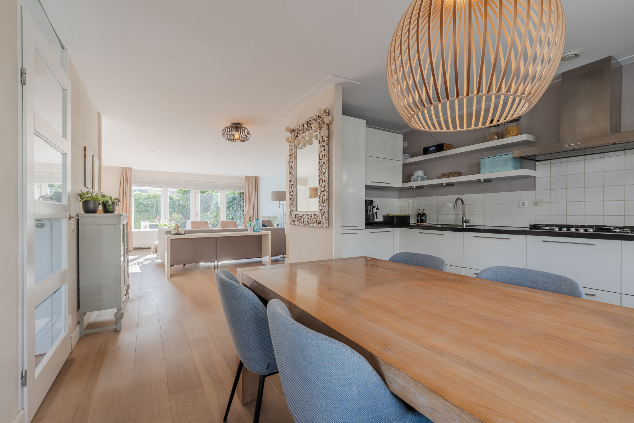 Verder is kenmerkend voor deze woning de lichte tuingerichte woonkamer (35,5 m2) met een ruime en uiterst praktische indeling v.v. stijlvolle inbouwkast (geplaatst in 2024), de grote en complete woonkeuken (ca. 17 m2, vernieuwd in 2012 Siemens oven, magnetron en afzuigkap vervangen in 2019) met alle wenselijke inbouwapparatuur, de groene en bloemrijke achtertuin op het zuidoosten (ca. 79 m2) voorzien van meerdere fijne terrassen, de drie multifunctionele (slaap)kamers op de eerste verdieping (ca. 5, 9 & 21 m2 / voorheen 4 slaapkamers), een strakke badkamer met verwarmde designspiegel met ruime inloopdouche v.v. heerlijke “Sunshower” met bankje en veel bergruimte op de ruime en praktische vliering.