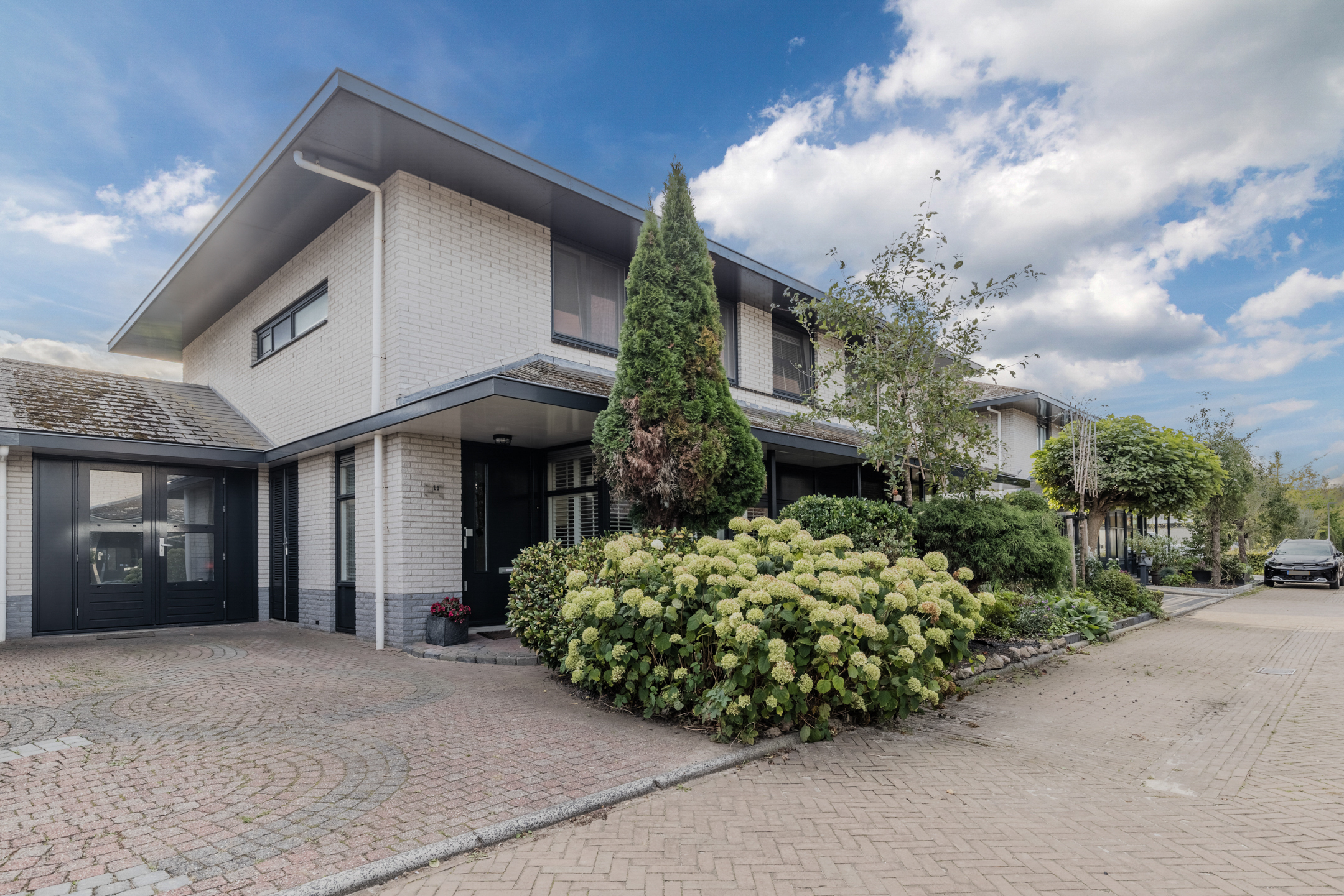 Aan de voorzijde kunnen één a twee auto’s worden geparkeerd op de oprit. De voortuin is eveneens smaakvol aangelegd met ruimte voor groen en kleur. De hogere beplanting en de hortensia’s zorgen voor een fraai beeld én wat extra privacy.