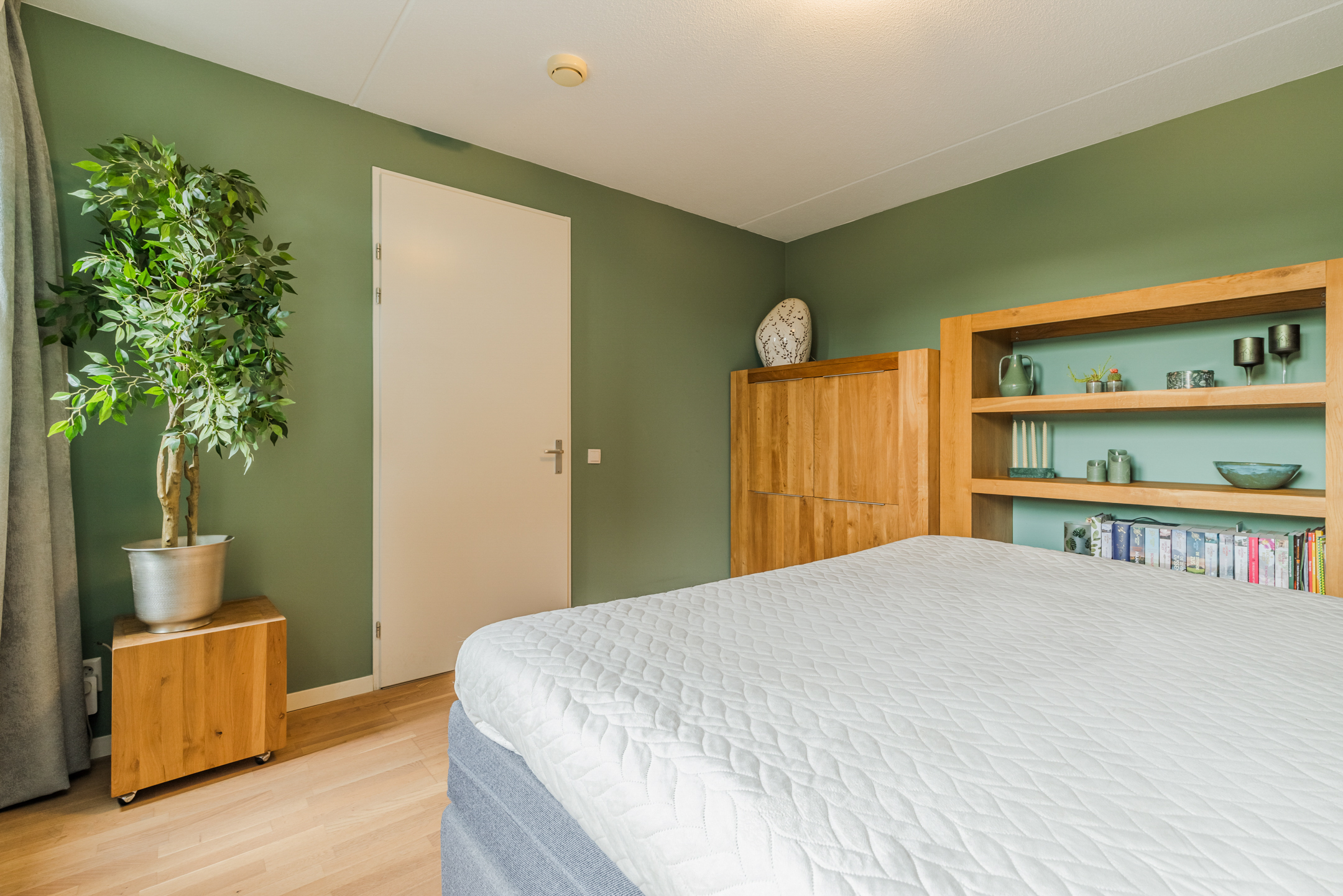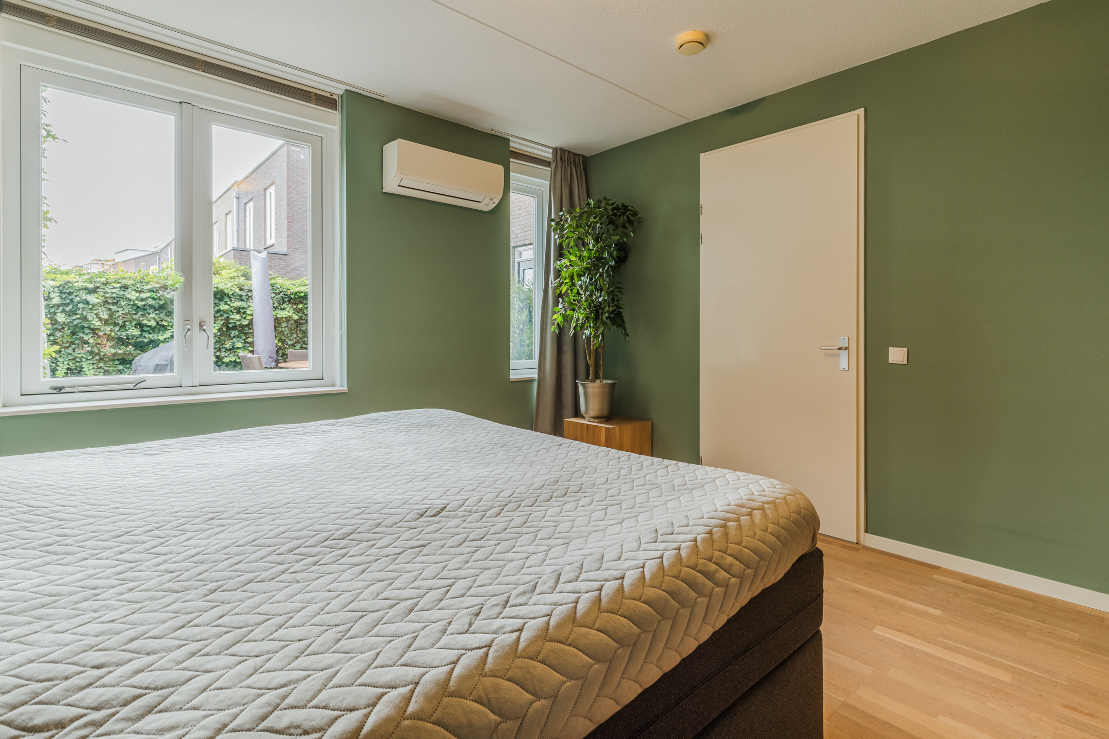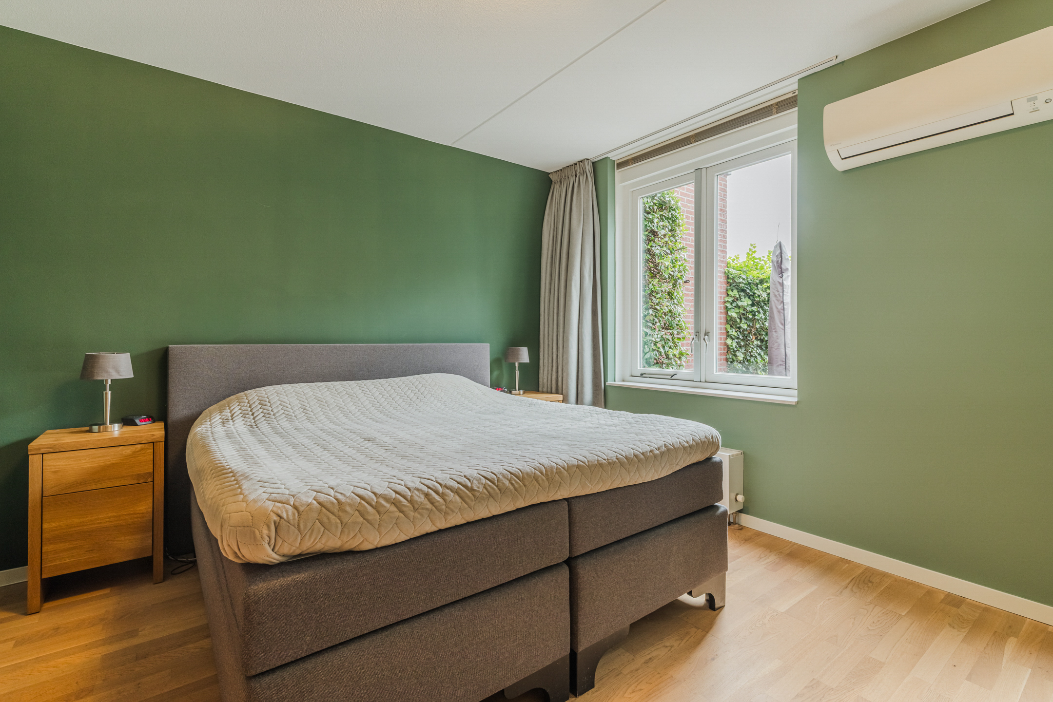 De ruime en sfeervolle “masterbedroom” (ca. 16 m2) biedt meer dan genoeg ruimte voor een tweepersoonsbed en een grote kledingkast. Vanuit de slaapkamer heb je een gezellig zicht op de zonnige achtertuin. Tevens is deze slaapkamer voorzien van een airco-unit, waardoor het in de warme zomermaanden heerlijk vertoeven is.