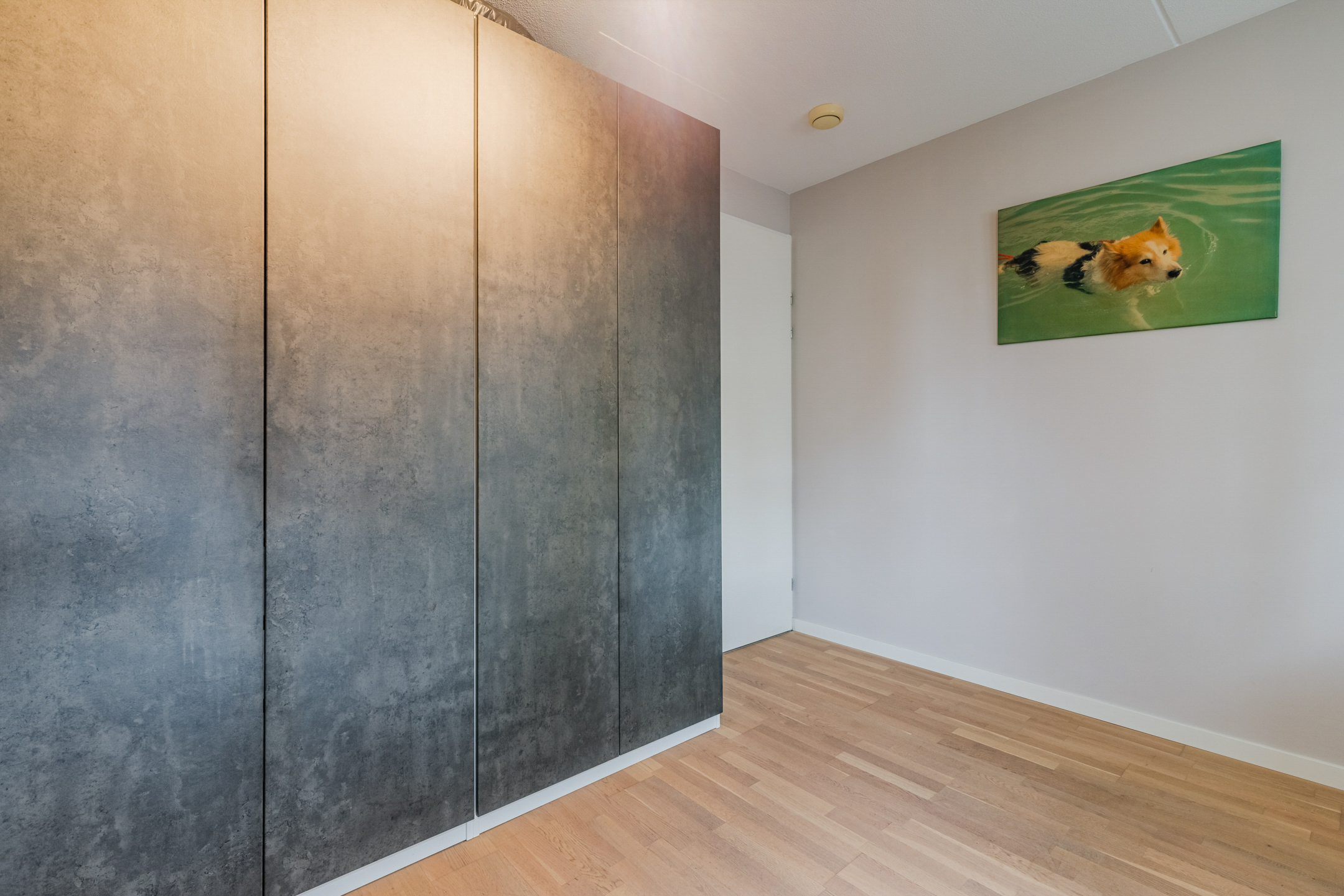 Aan de voorzijde van het appartement bevindt zich de tweede multifunctionele (slaap)kamer. Deze slaapkamer is van een prima formaat (ca. 12 m2) en biedt een gezellig uitzicht op de voortuin en straat. Deze slaapkamer is uitermate geschikt om te gebruiken als werk-/, studeer-/ of hobbykamer.