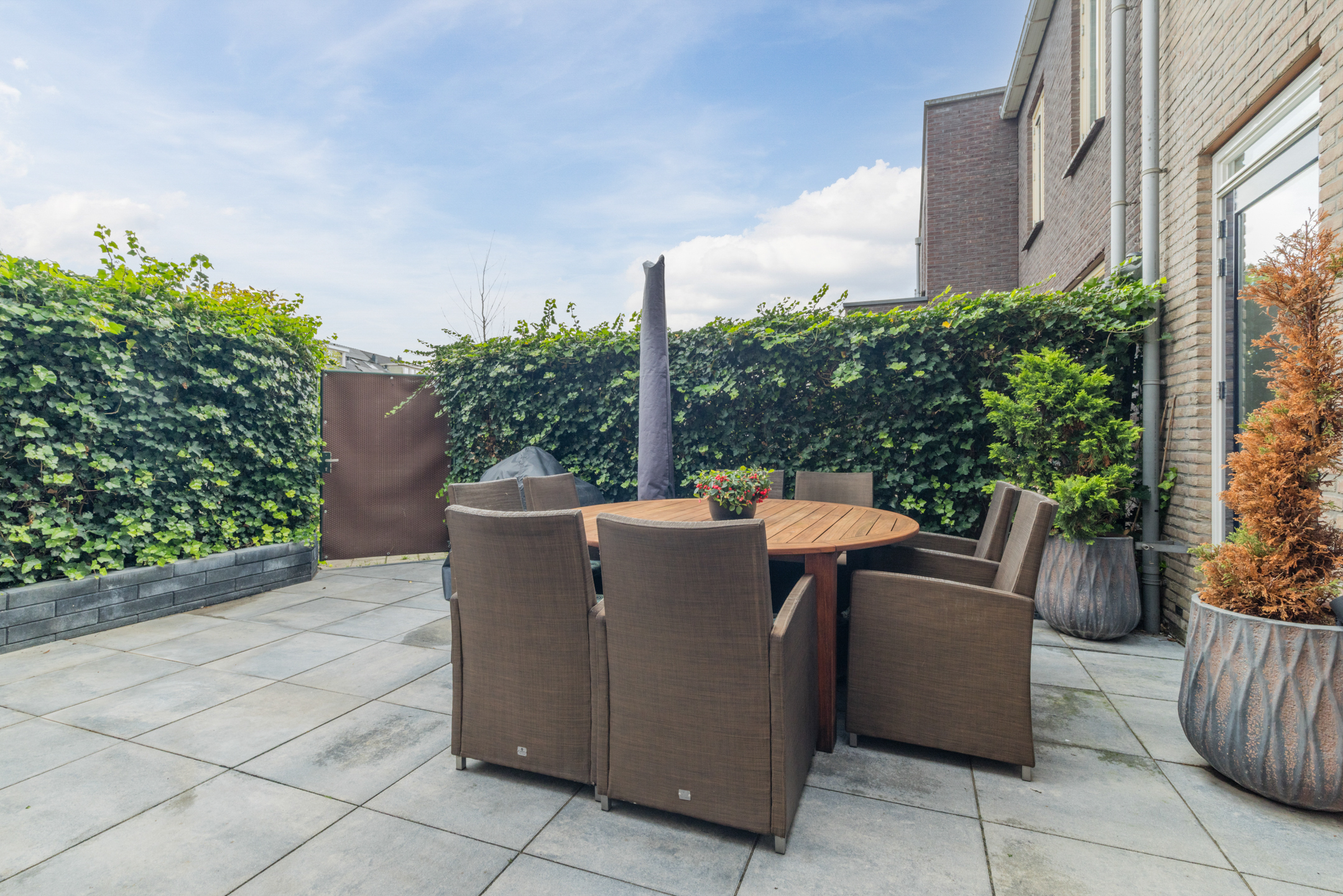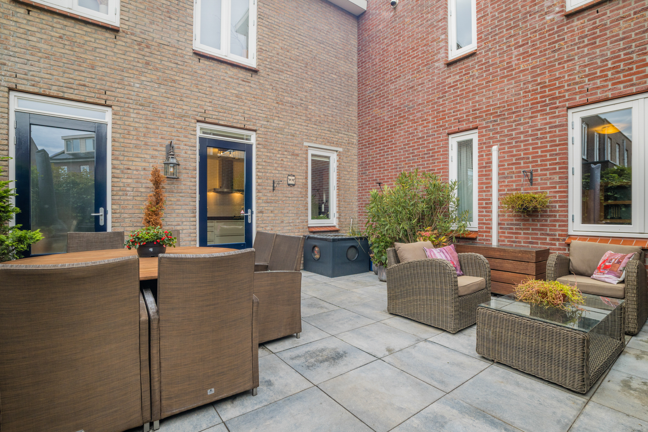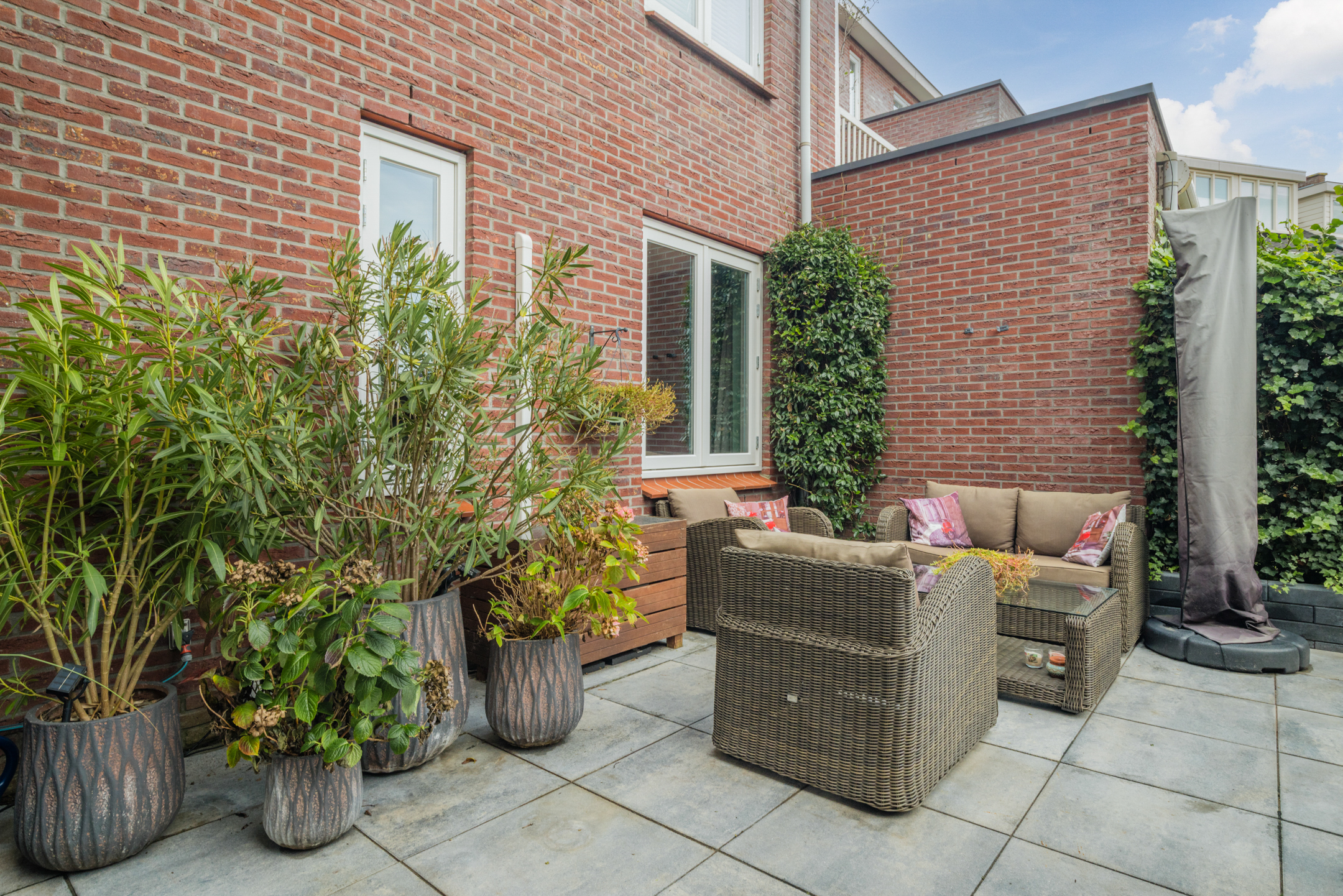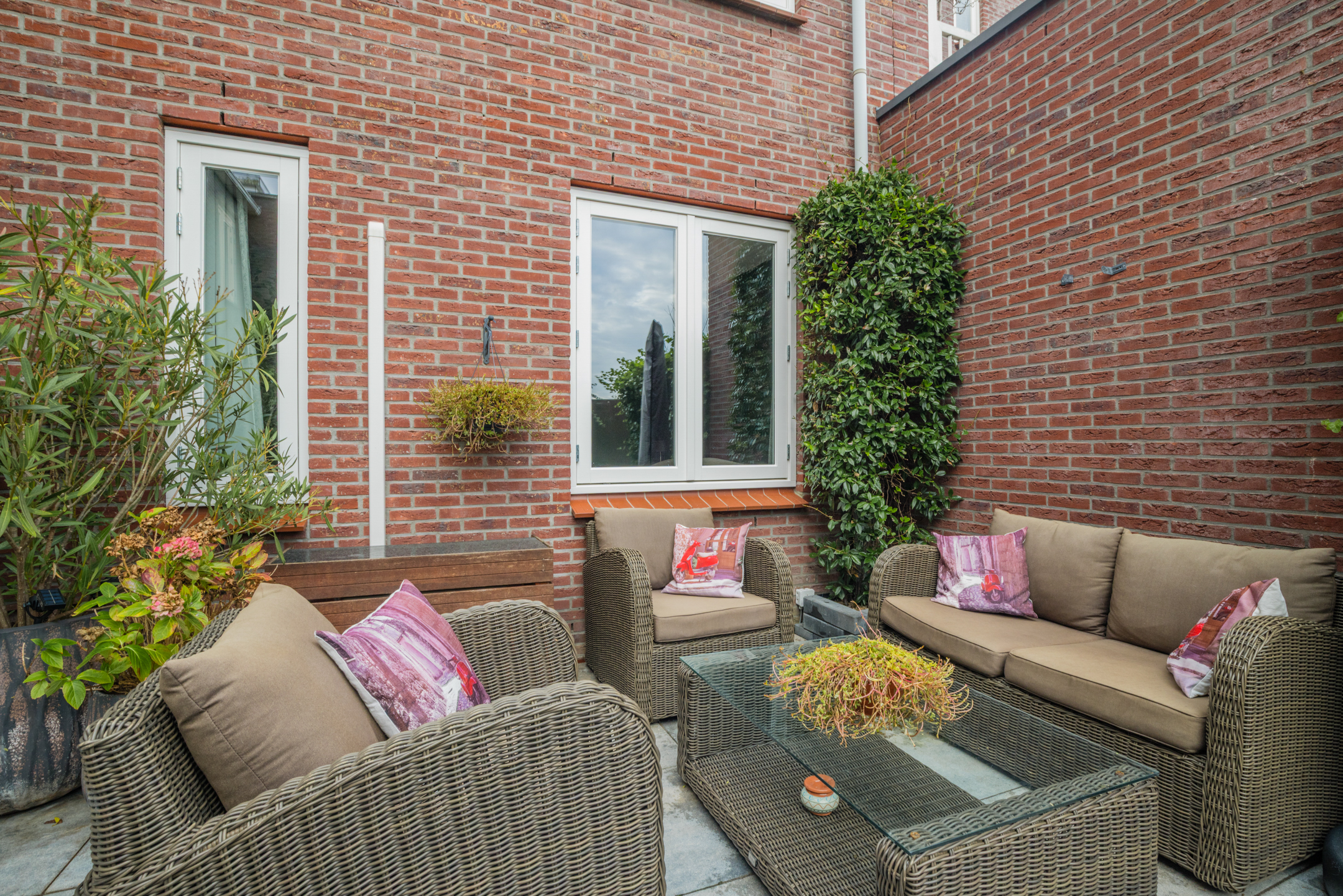 Middels de keukenruimte is de gezellige achtertuin bereikbaar. De tuin, gelegen op het zuidoosten, biedt plek aan een gezellige eettafelopstelling en een loungegedeelte. Hier kun je, gedurende de hele dag, heerlijk genieten van de zon. Tevens beschikt de woning over een voortuin over de gehele breedte van de woning welke voor veel privacy zorgt voor o.a. de woonkamer.